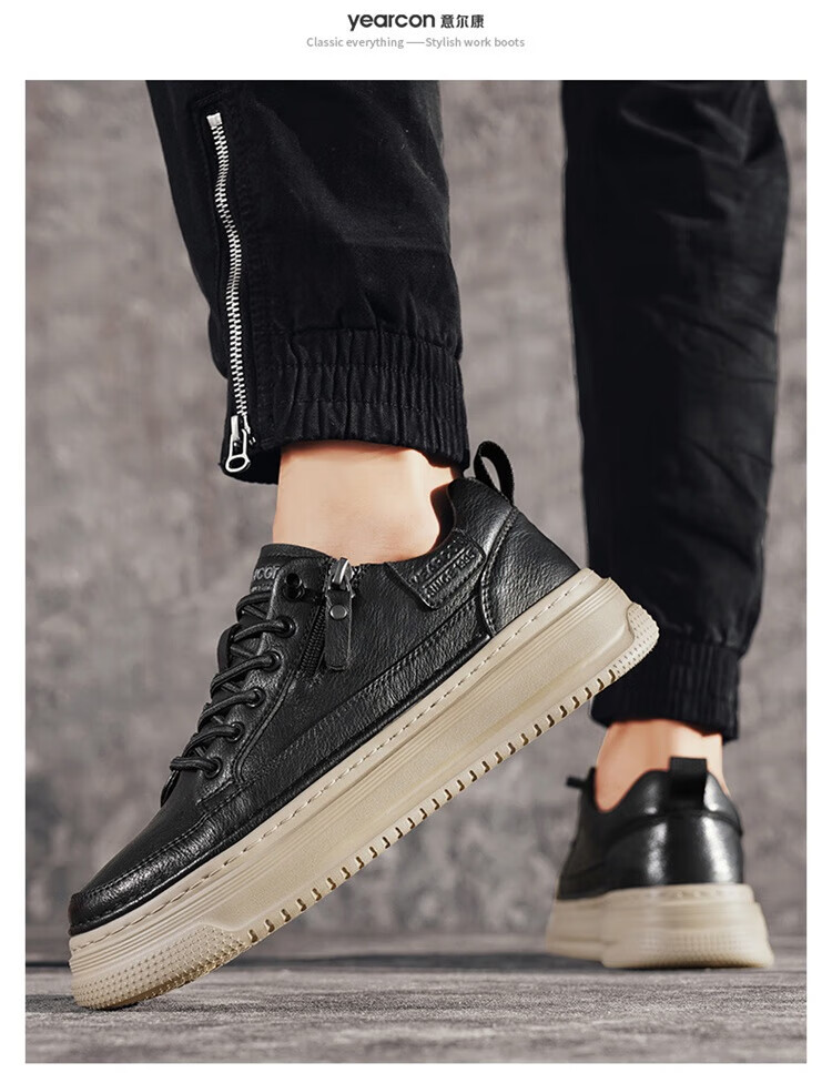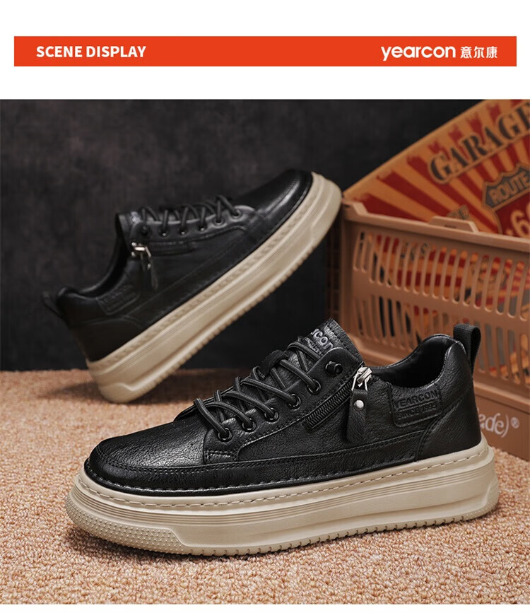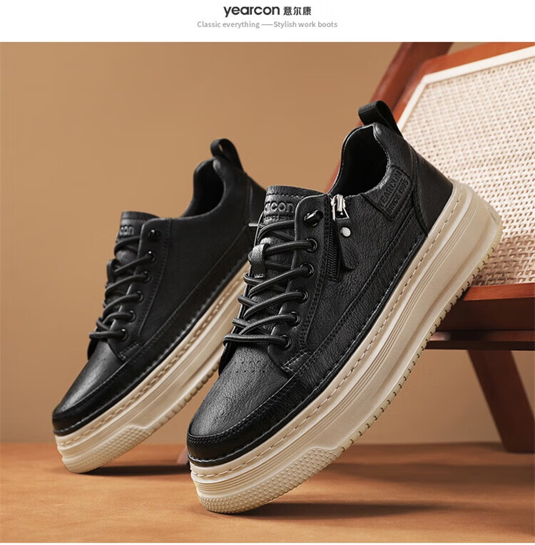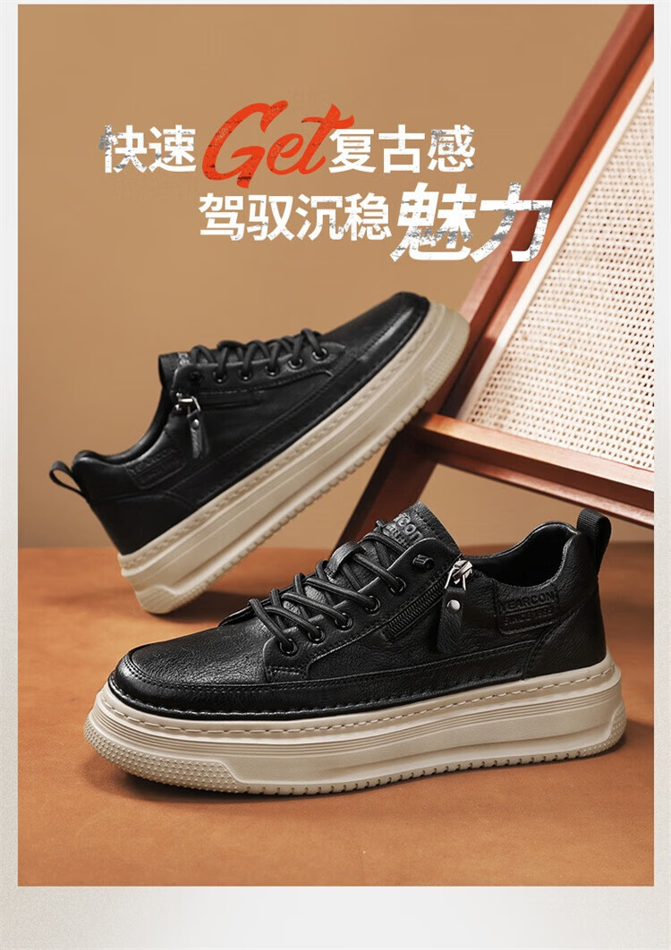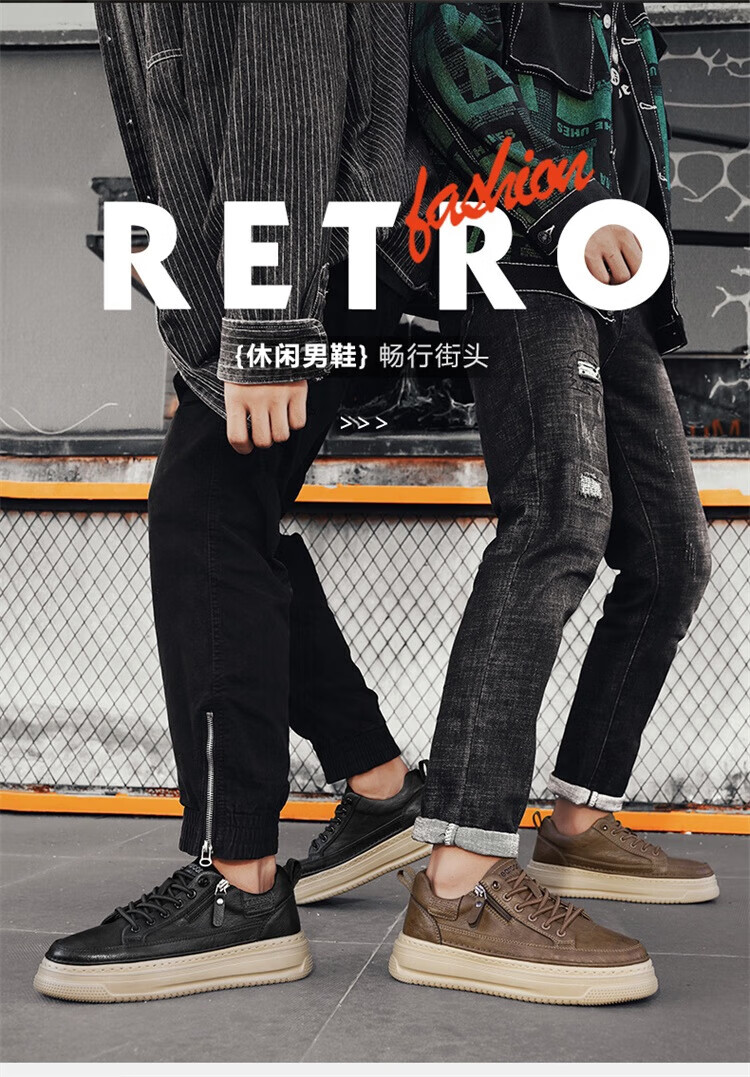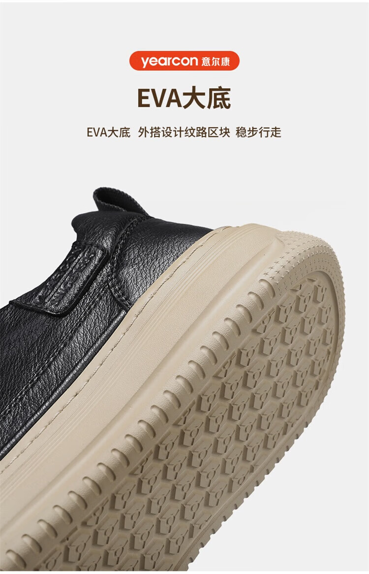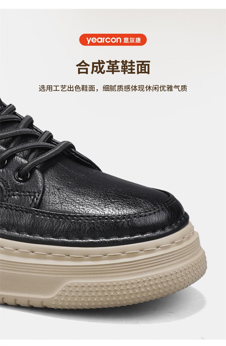 意尔康男休闲鞋秋复古一脚蹬板鞋男百搭工装商务皮鞋子男 黑色 42