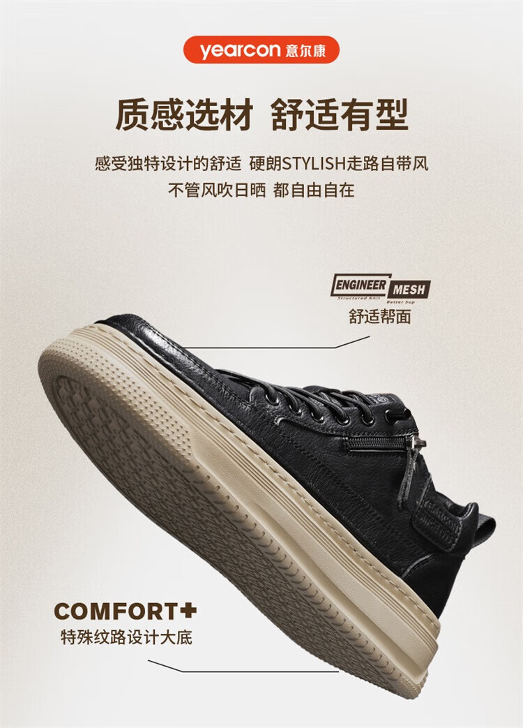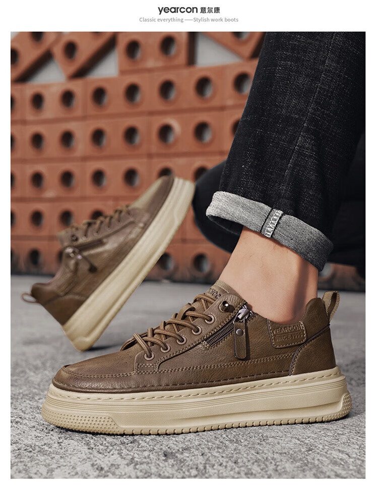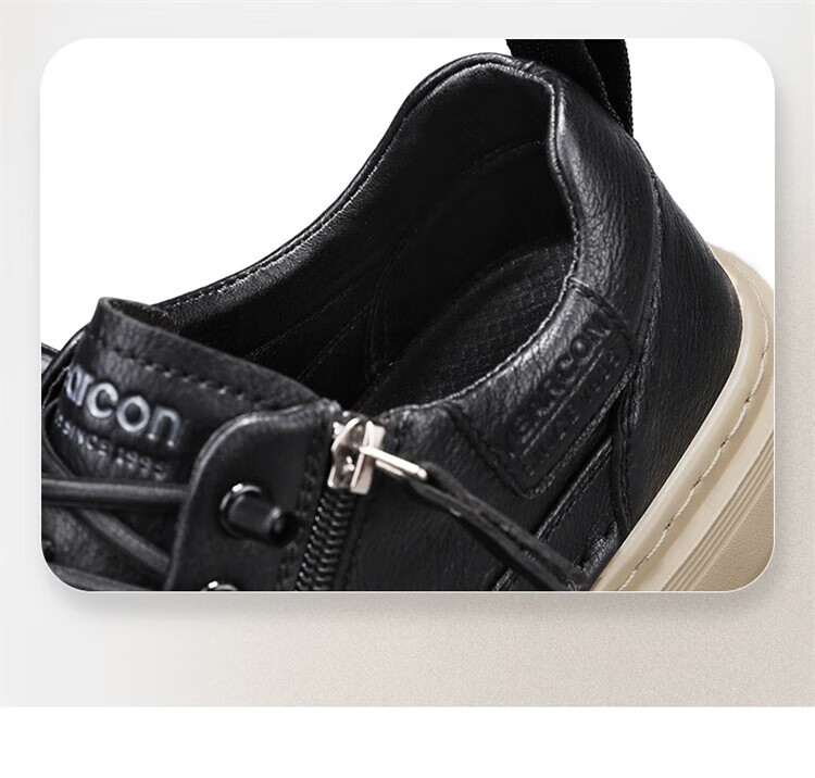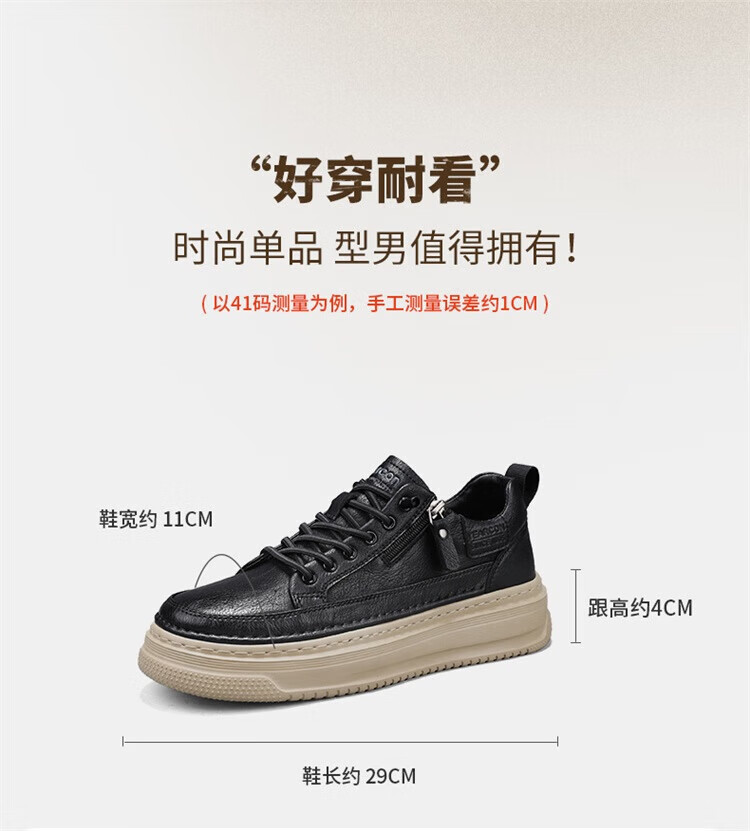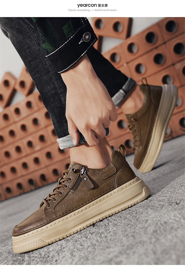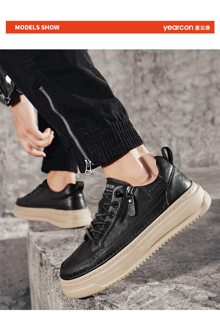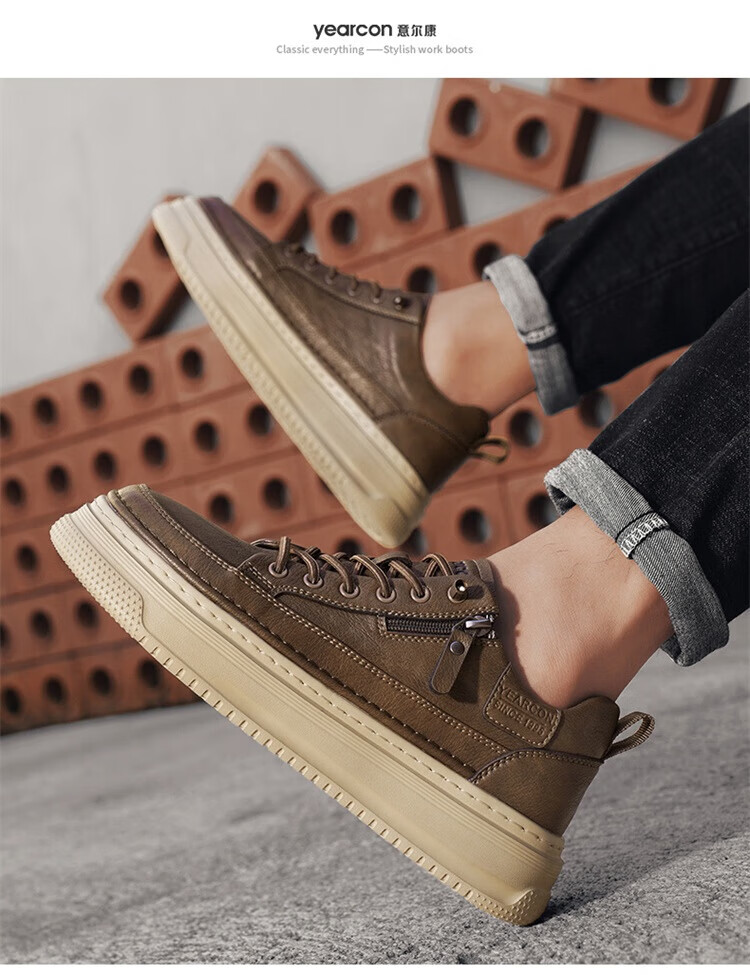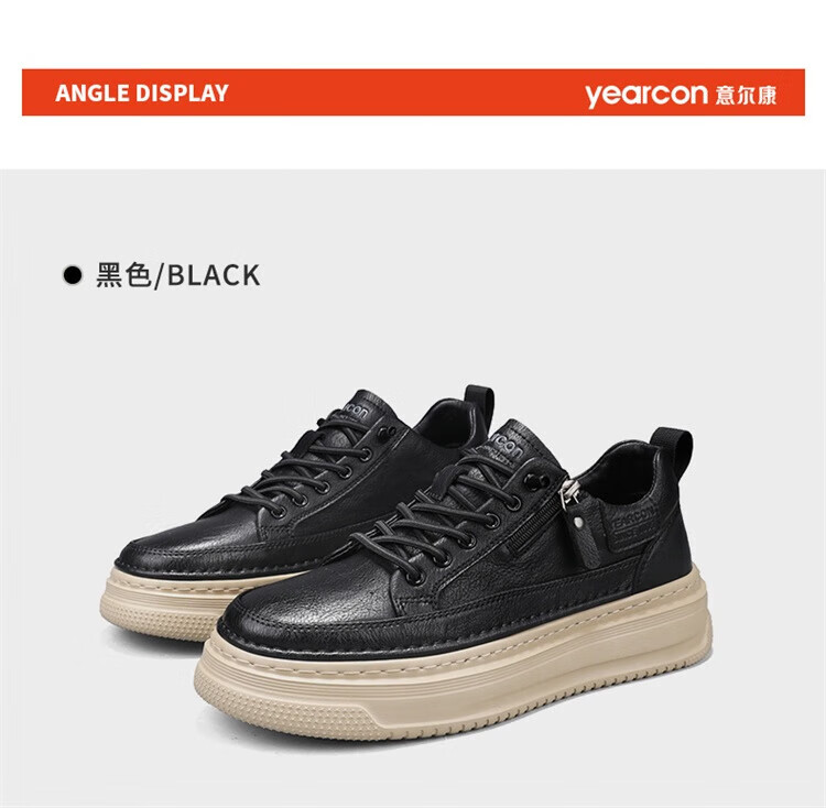 意尔康男休闲鞋秋复古一脚蹬板鞋男百搭工装商务皮鞋子男 黑色 42