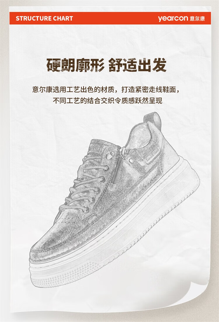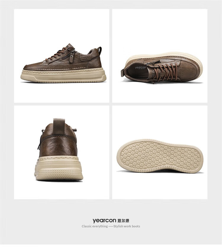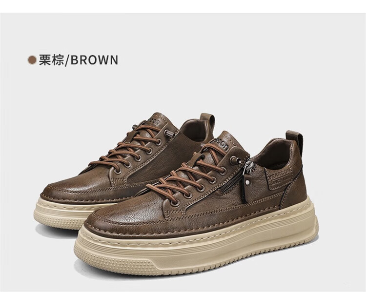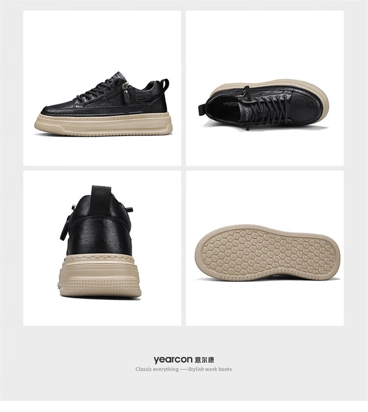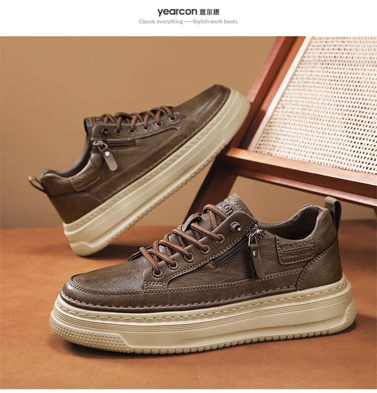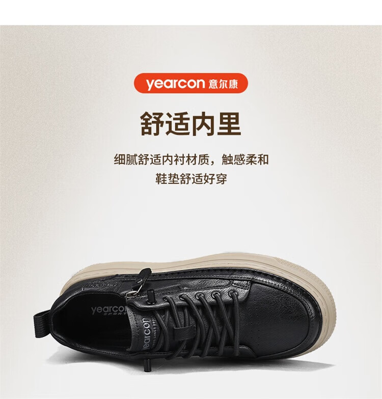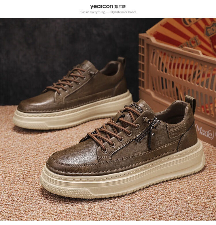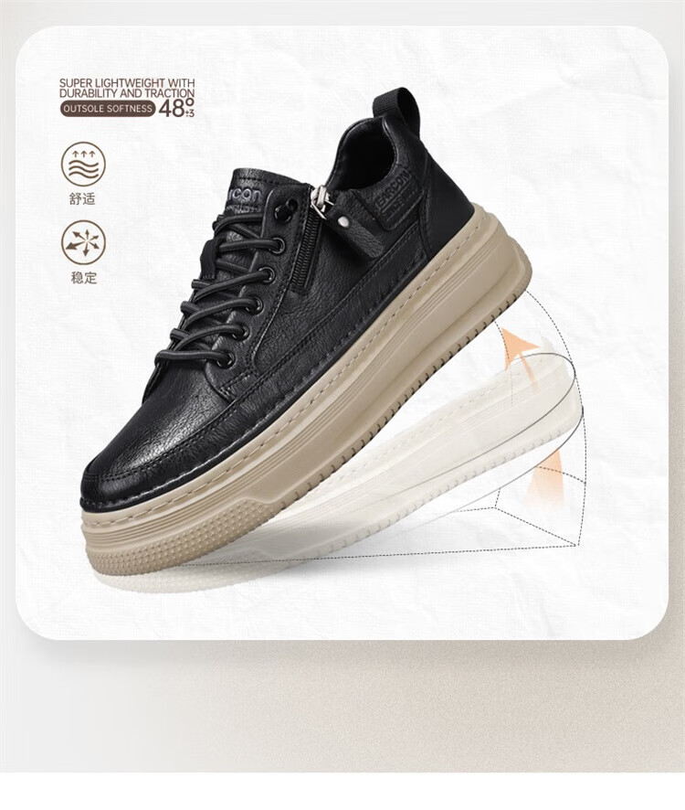 意尔康男休闲鞋秋复古一脚蹬板鞋男百搭工装商务皮鞋子男 黑色 42