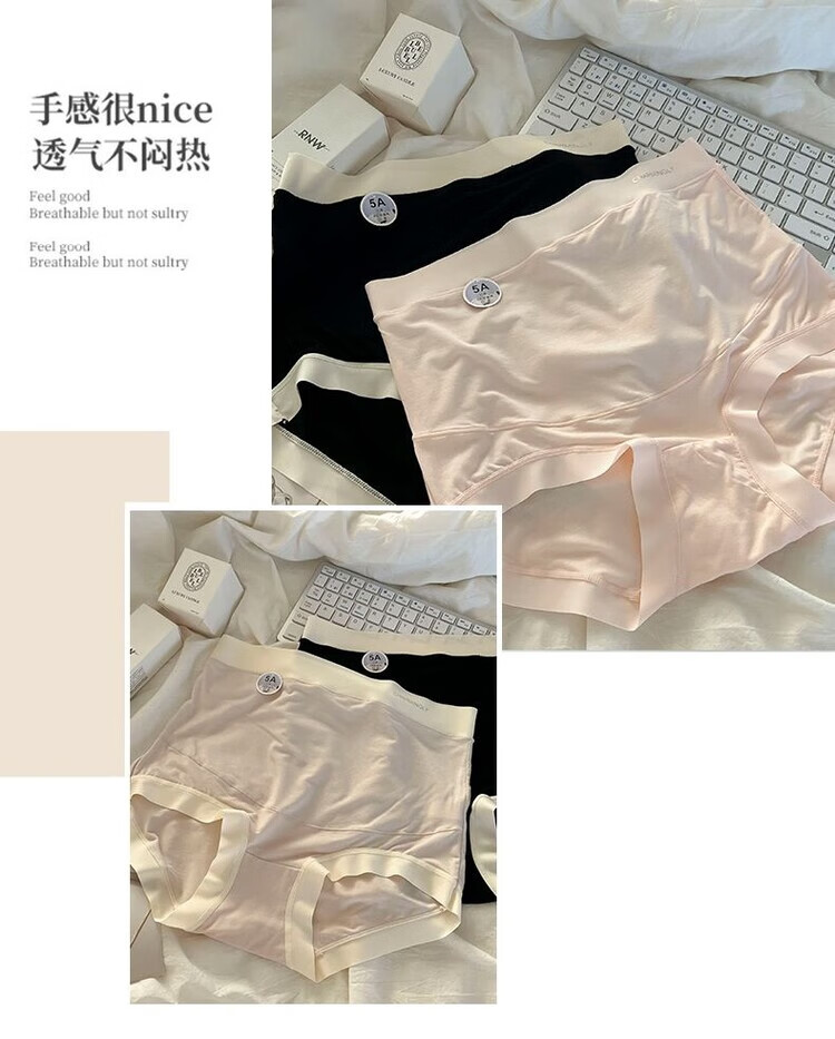 AILUKI夏季新款莫代尔面料孕妇内裤高腰托腹胖mm大码孕晚期无痕透气孕期 樱粉+奶咖+黑色 XL-建议【90-130斤】