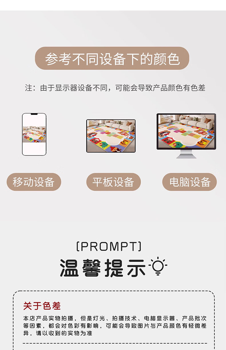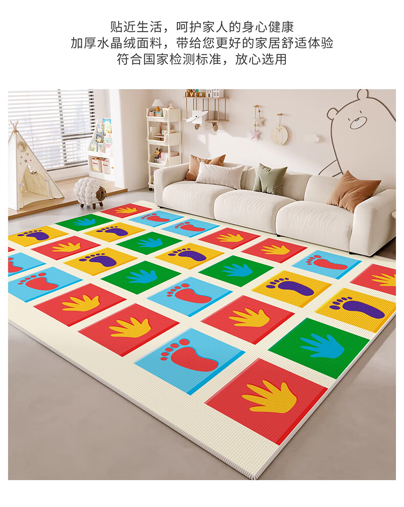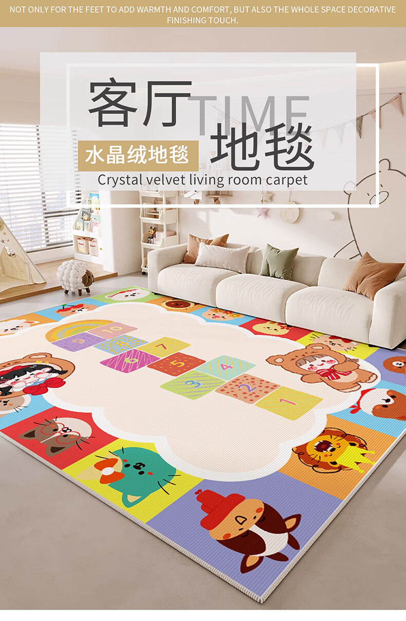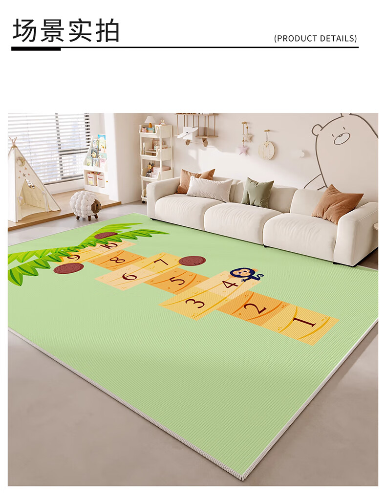 KAYE儿童房地毯卧室阅读区垫子免洗可擦客厅书房沙发茶几毯卡通床边毯 SJR-Y快乐跳跳1 60X160cm