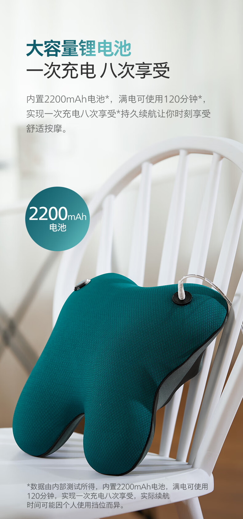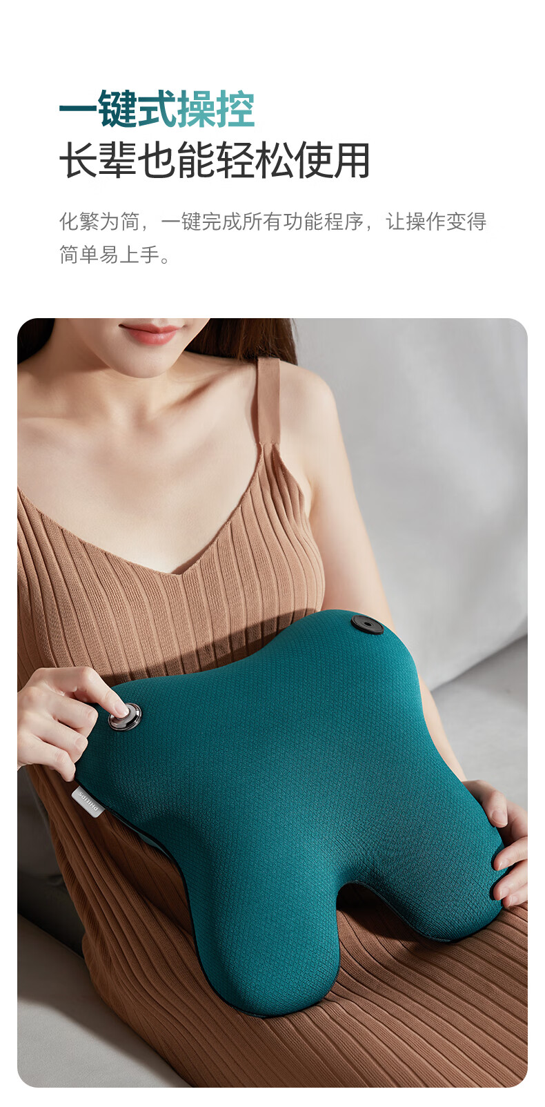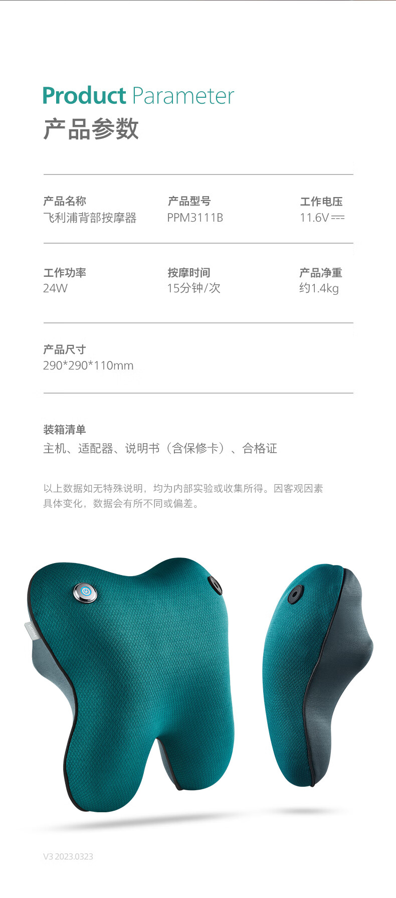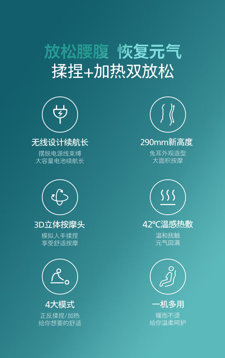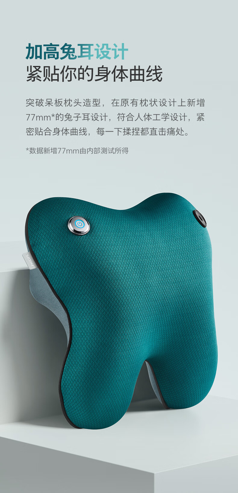 飞利浦(PHILIPS)腰部按摩器 腰背按摩靠垫枕头 多功能仿人手揉捏按摩器 热敷按摩抱枕 送朋友家人生日 伴手礼物 绿色(二代无线充电款)3111B