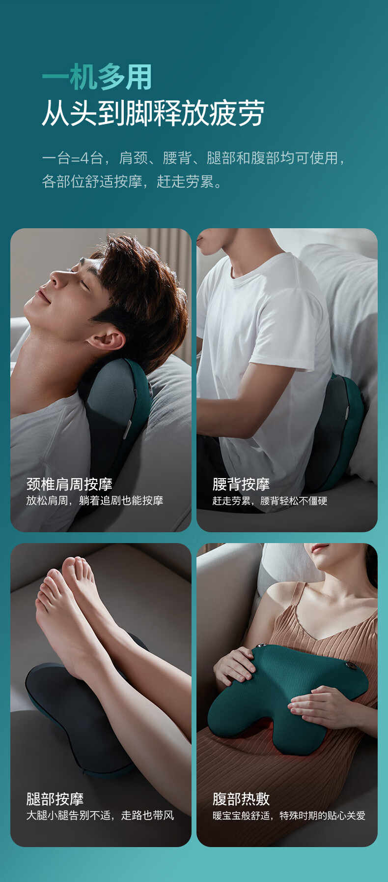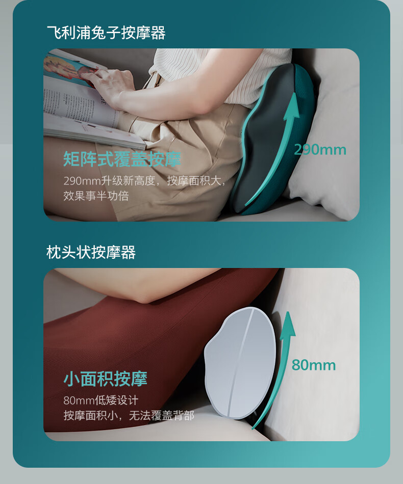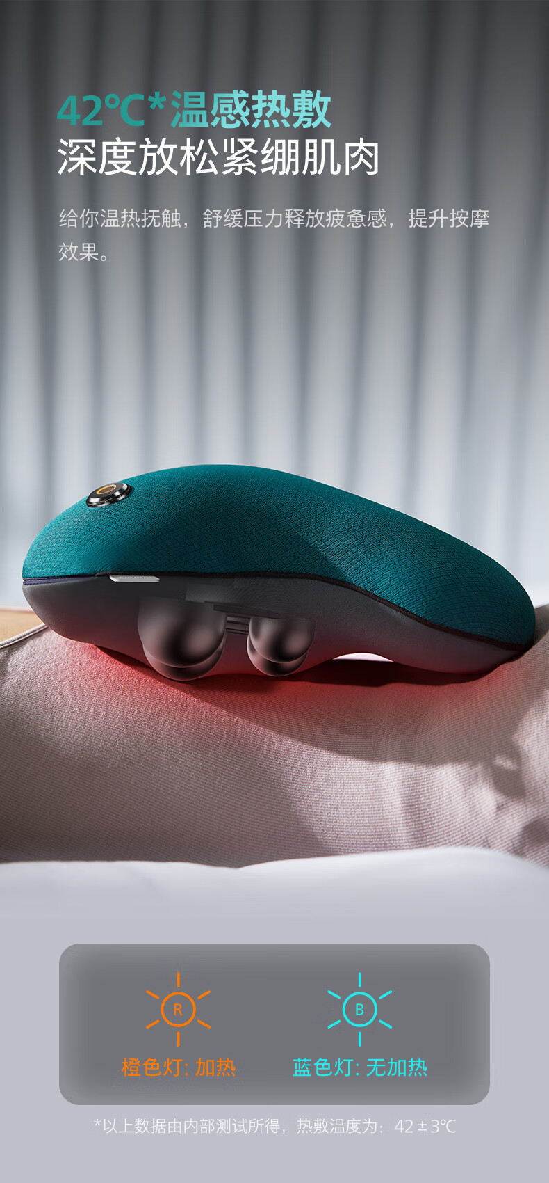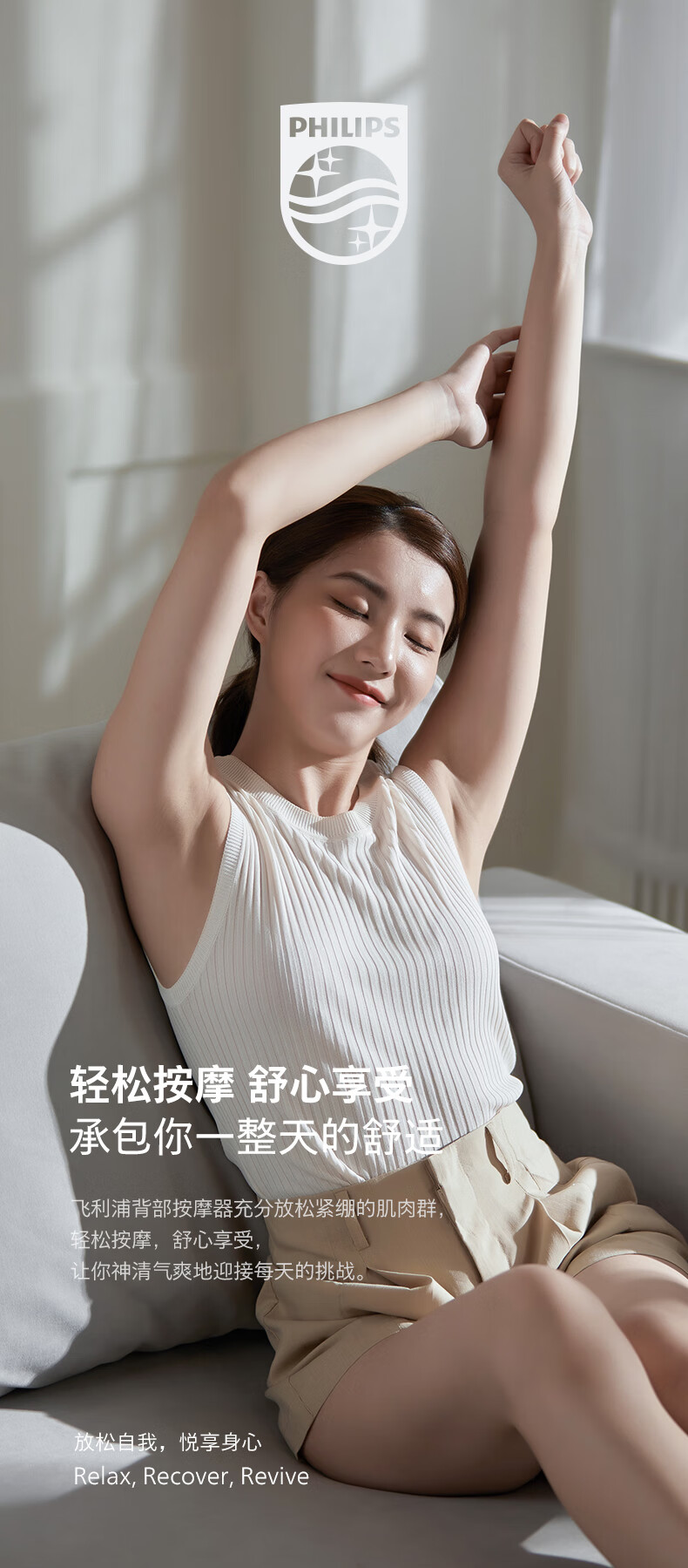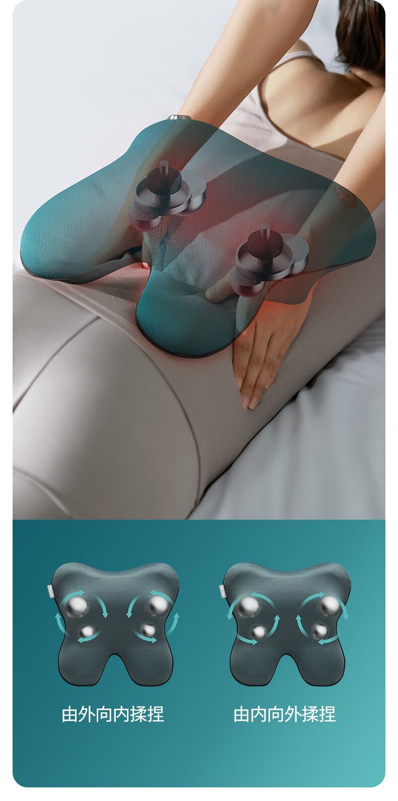 飞利浦(PHILIPS)腰部按摩器 腰背按摩靠垫枕头 多功能仿人手揉捏按摩器 热敷按摩抱枕 送朋友家人生日 伴手礼物 绿色(二代无线充电款)3111B