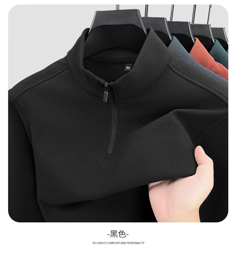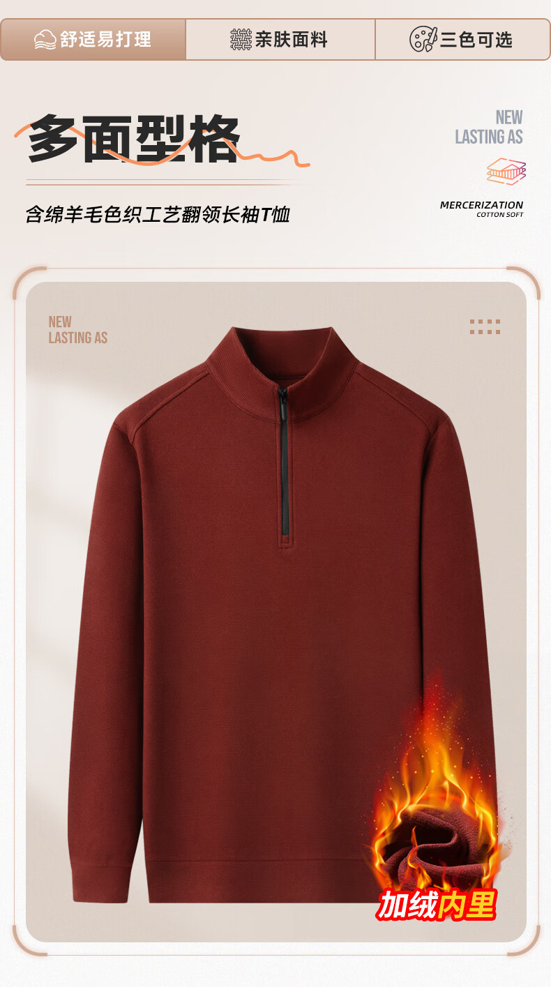 SHANSHAN杉杉长袖T恤2025冬新款半高领休闲百搭上衣商务亲肤保暖打底衫男 黑色 M /170