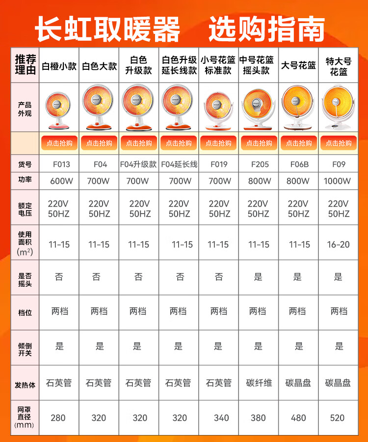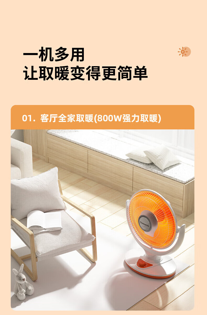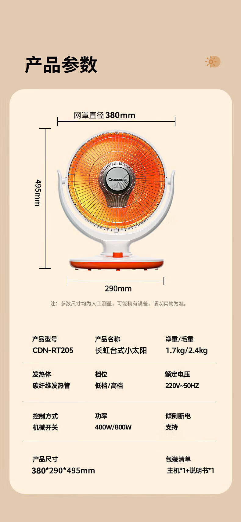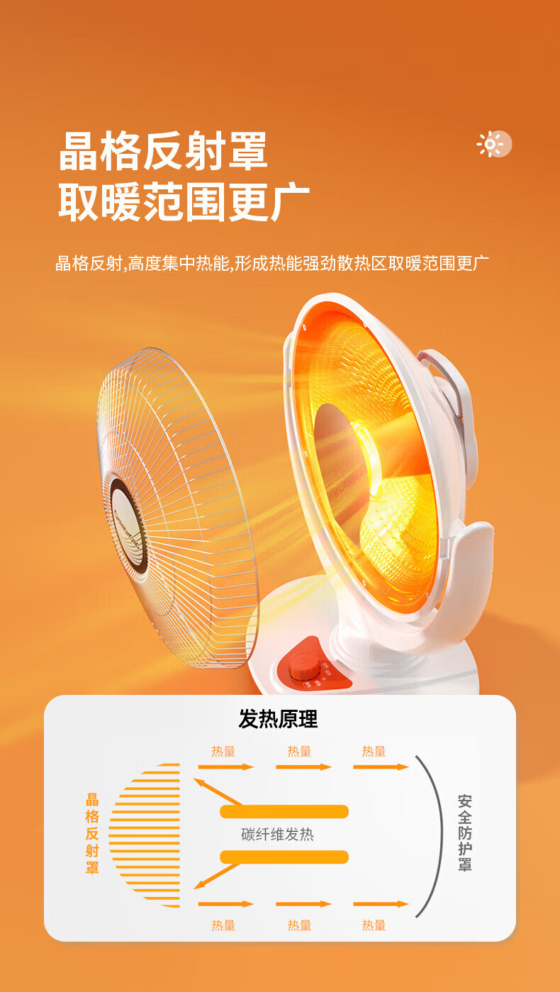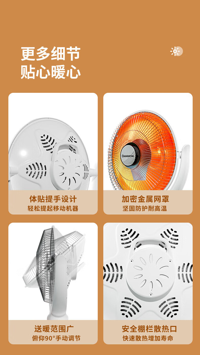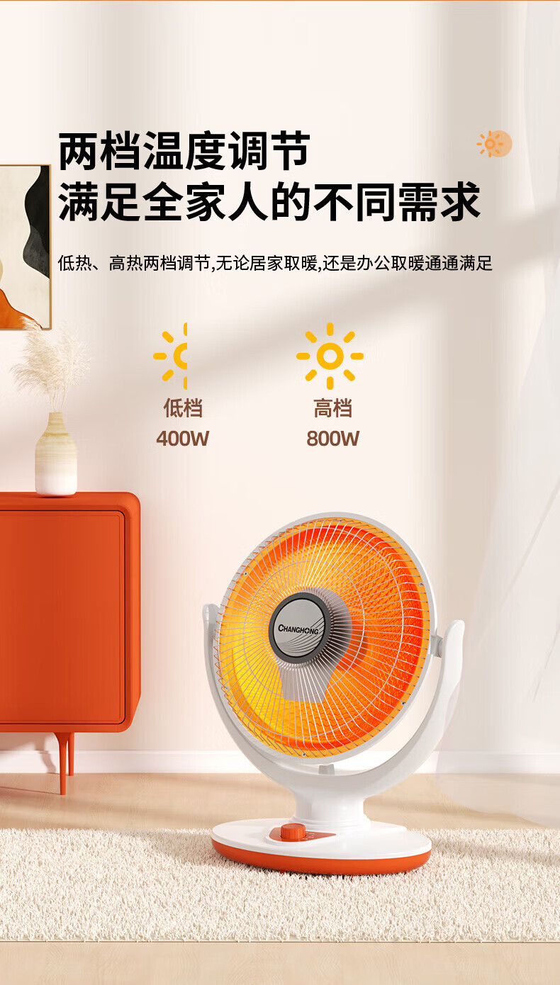 长虹(CHANGHONG)取暖器小太阳电暖器取暖电器电热扇电暖炉烤火炉快热炉取暖神器 白色大款【直径320mm】 1