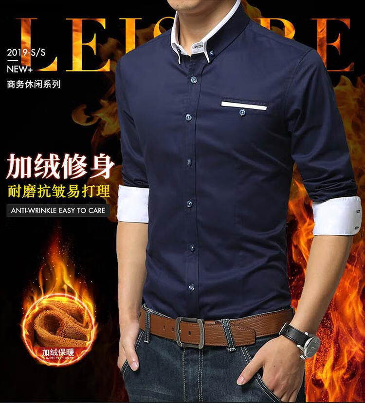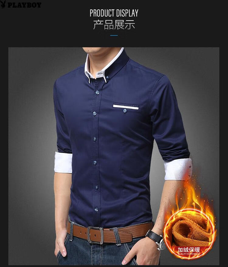 花花公子(PLAYBOY)衬衫男士长袖秋冬季保暖村子外穿大码拼色耐脏领加厚西装衬衣 白色 DCZ1306-239181 加绒 M =38码【建议100-112斤