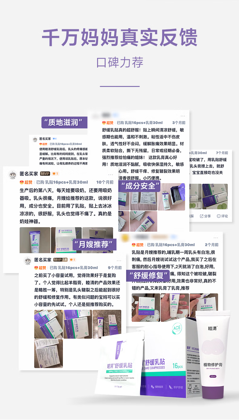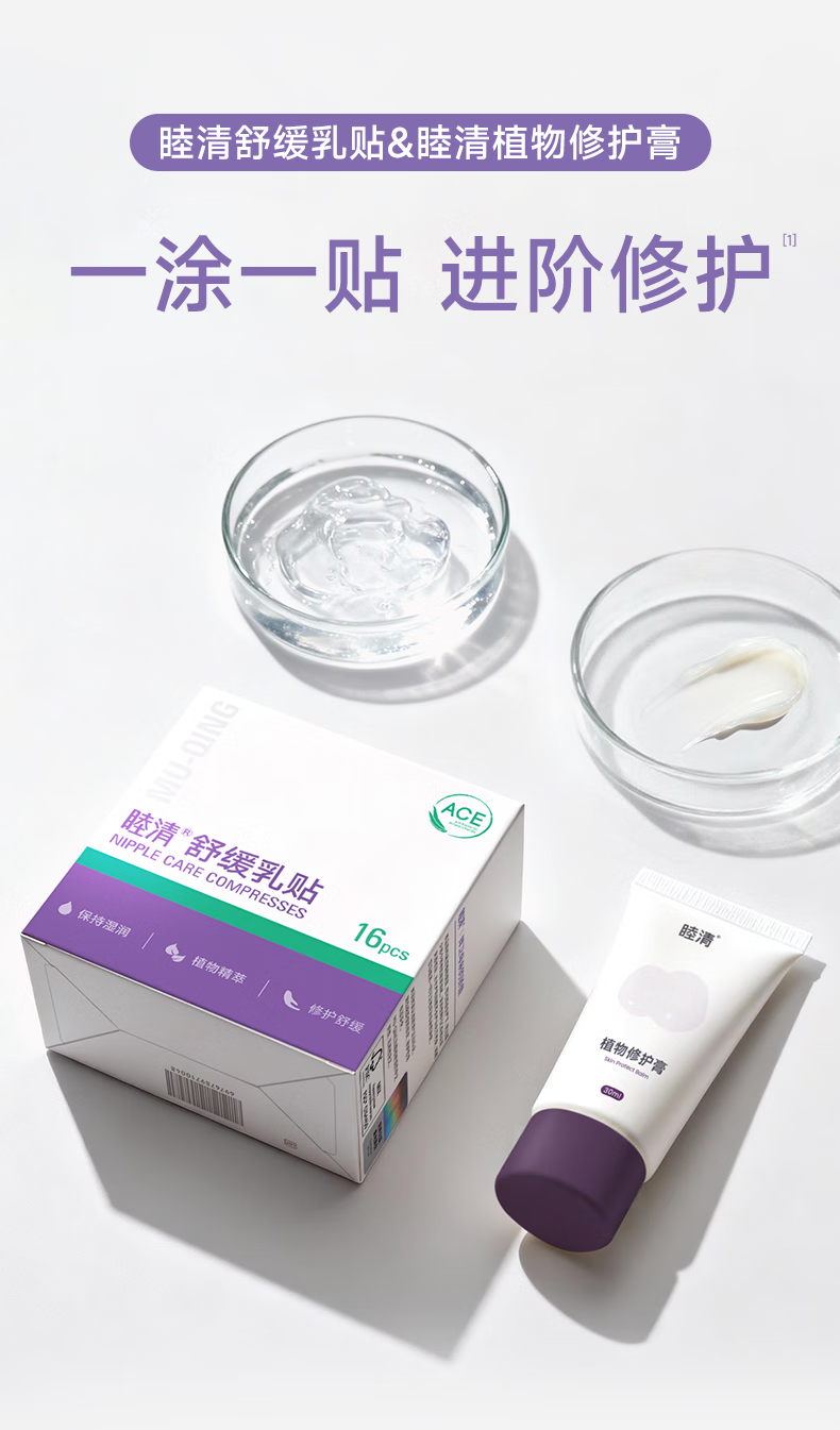 睦清舒缓乳贴乳头霜修护护理组合套装哺乳防皲裂乳头膏贴 16片+30ml 舒缓乳贴16片+乳头膏30ml