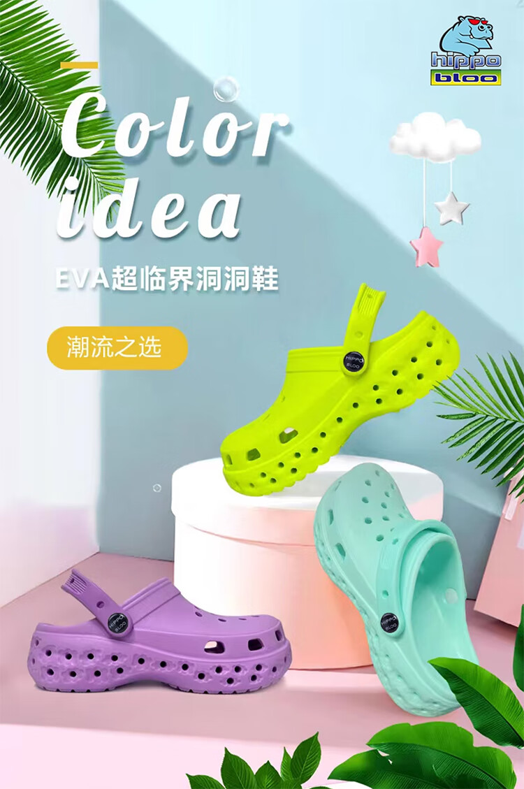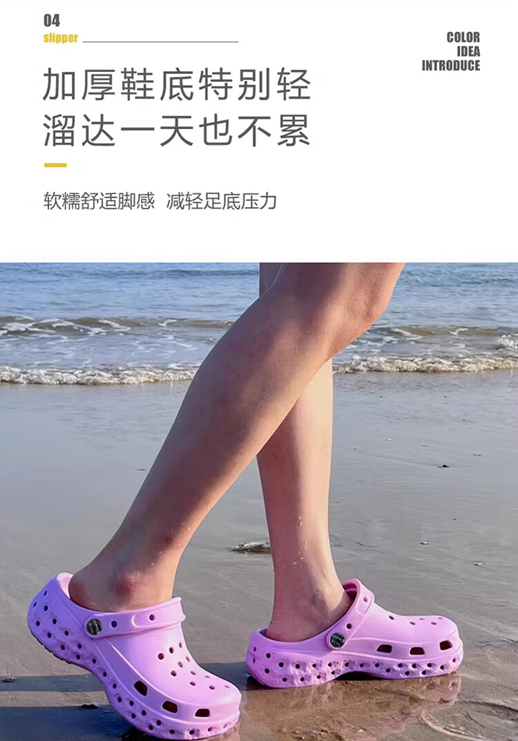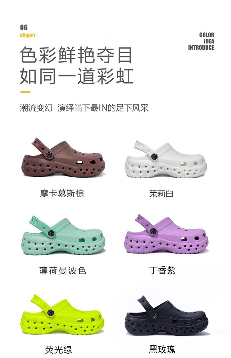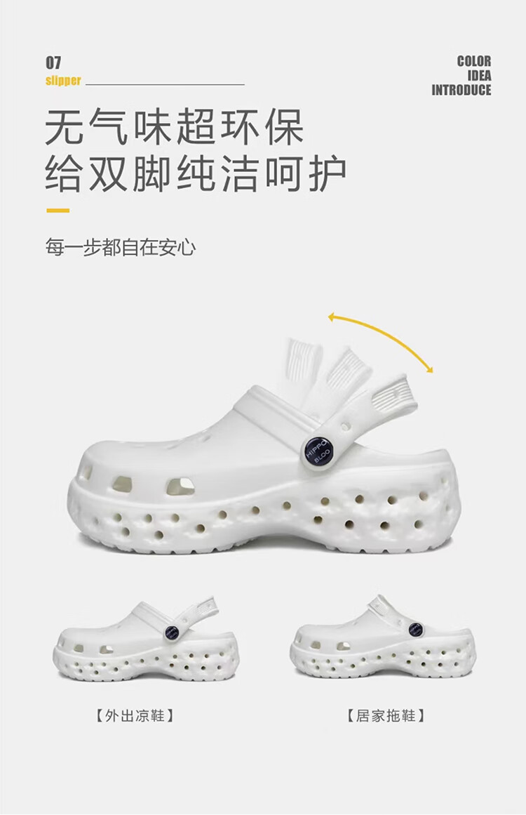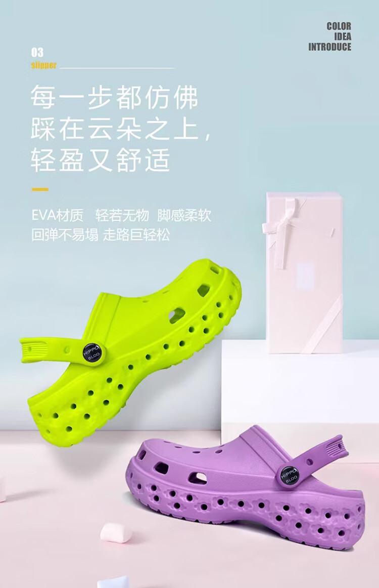 hippobloo女鞋多巴胺洞洞鞋夏厚底增高沙滩旅游凉鞋外穿拖鞋 深海绿 43-44