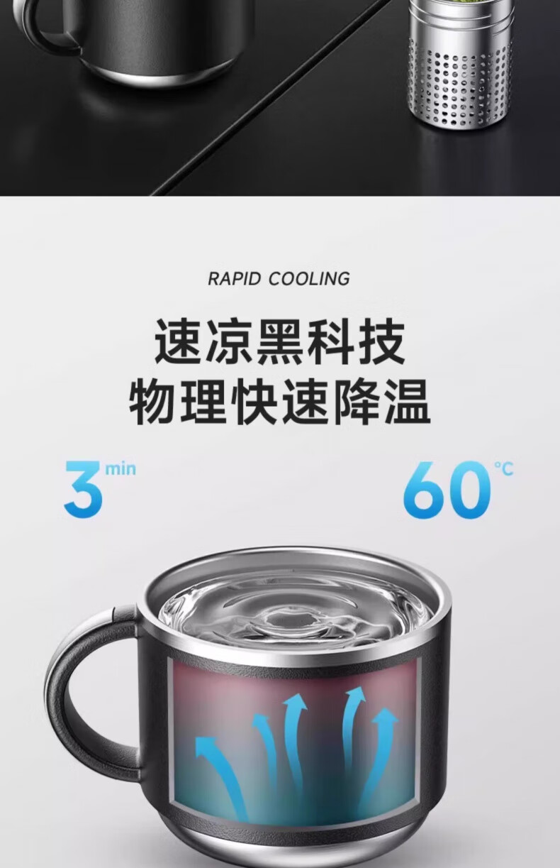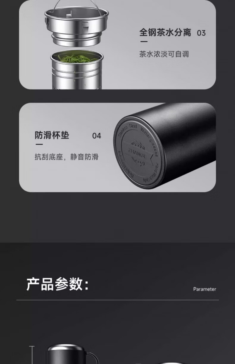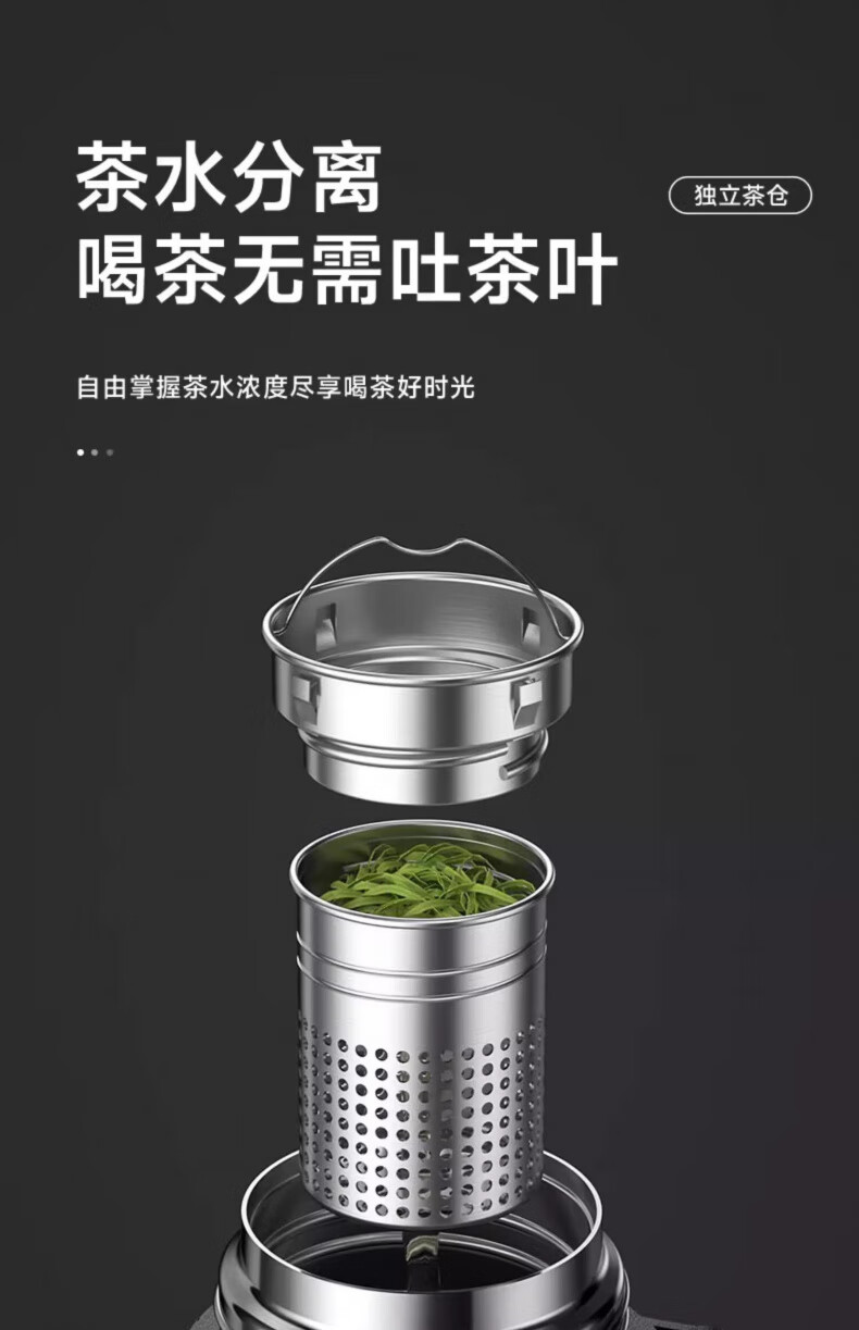 格亚(GEYA)茶水分离保温水杯泡茶杯316不锈钢保温杯便携水杯花茶杯定制刻字 黑色 520ml