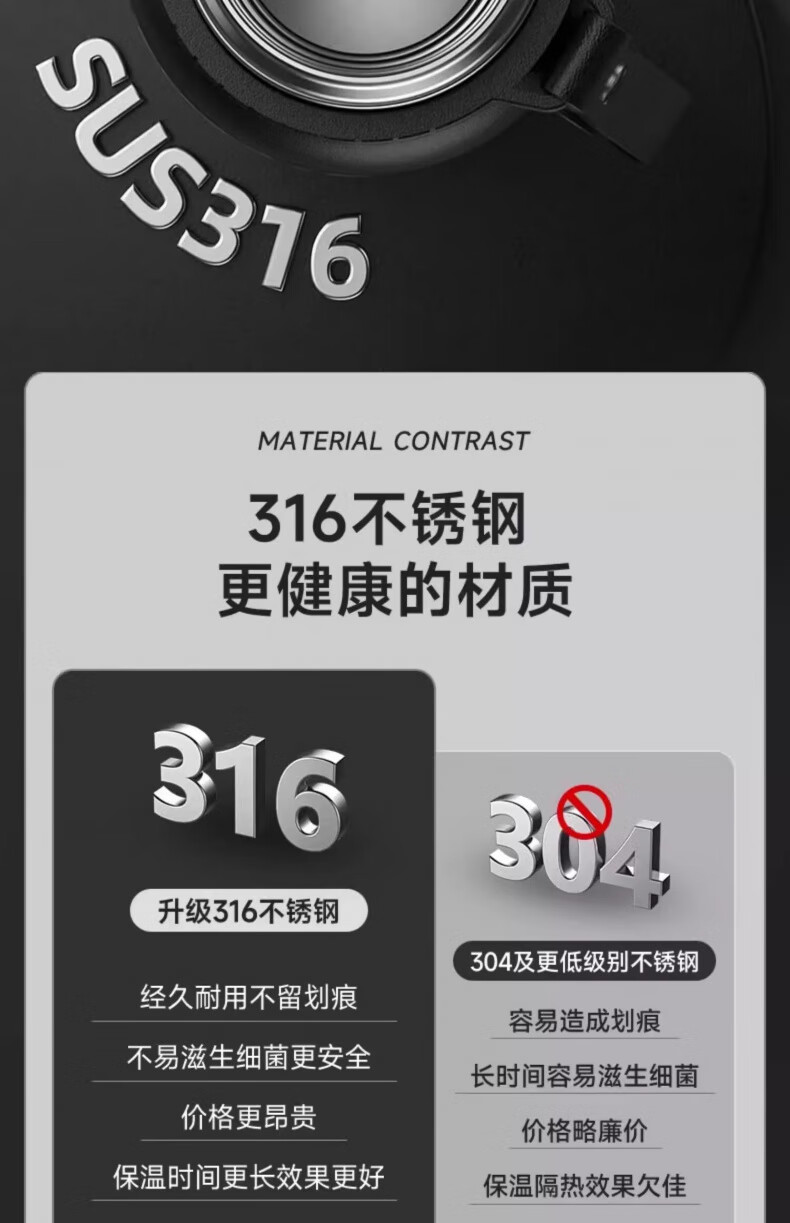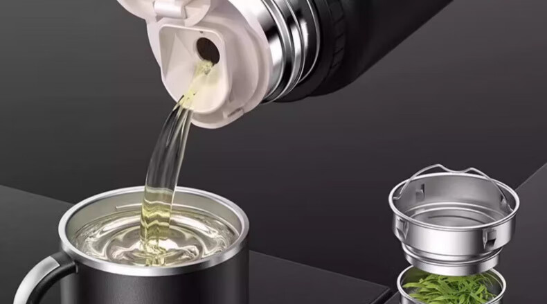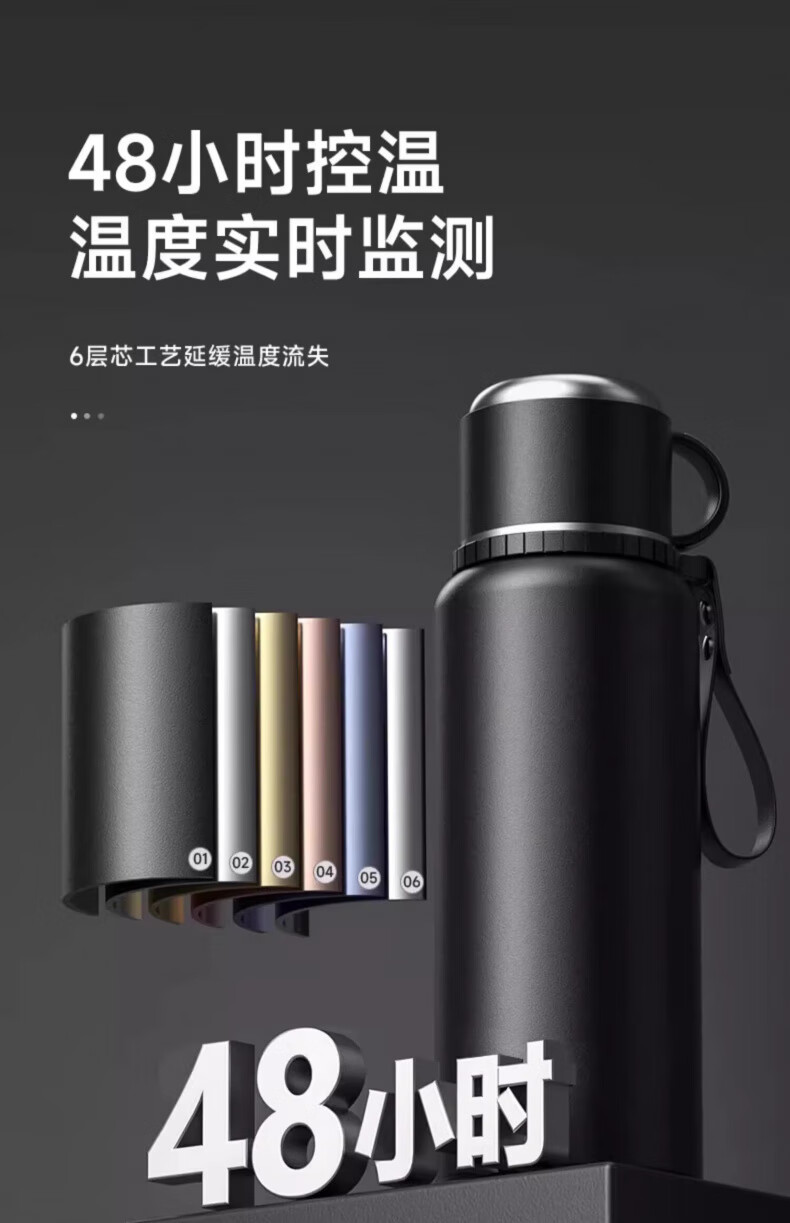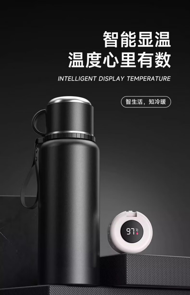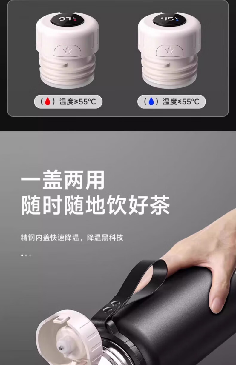 GERTHRON德国保温杯男款大容量316不锈钢2025新款便携焖泡茶杯茶水分离 钢本色1000ML【智能显温316抗菌款】 高颜值十大名牌保温杯