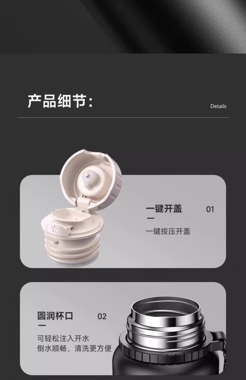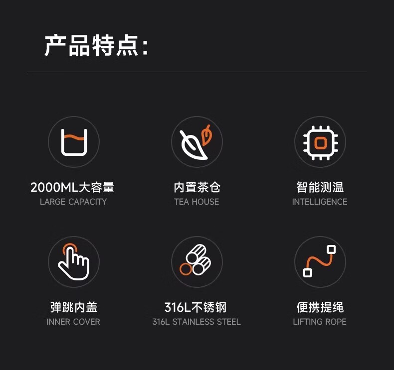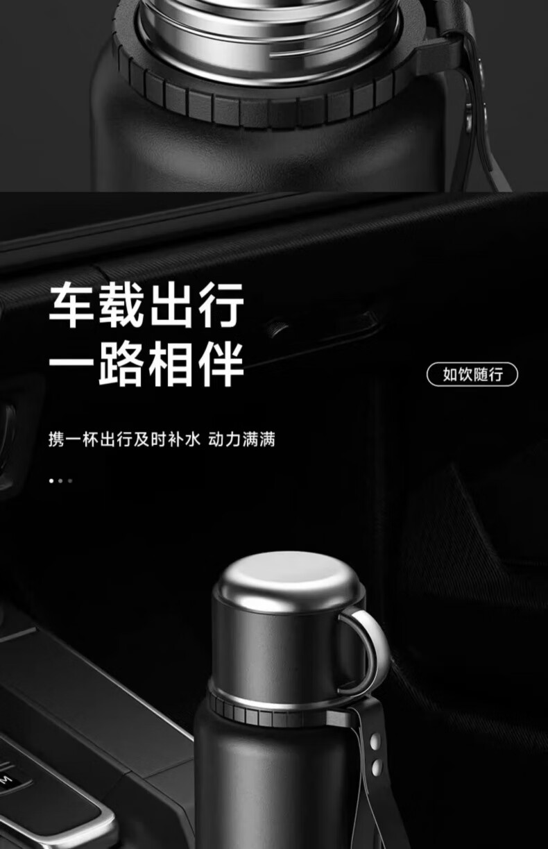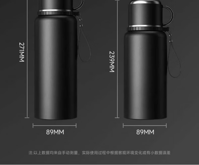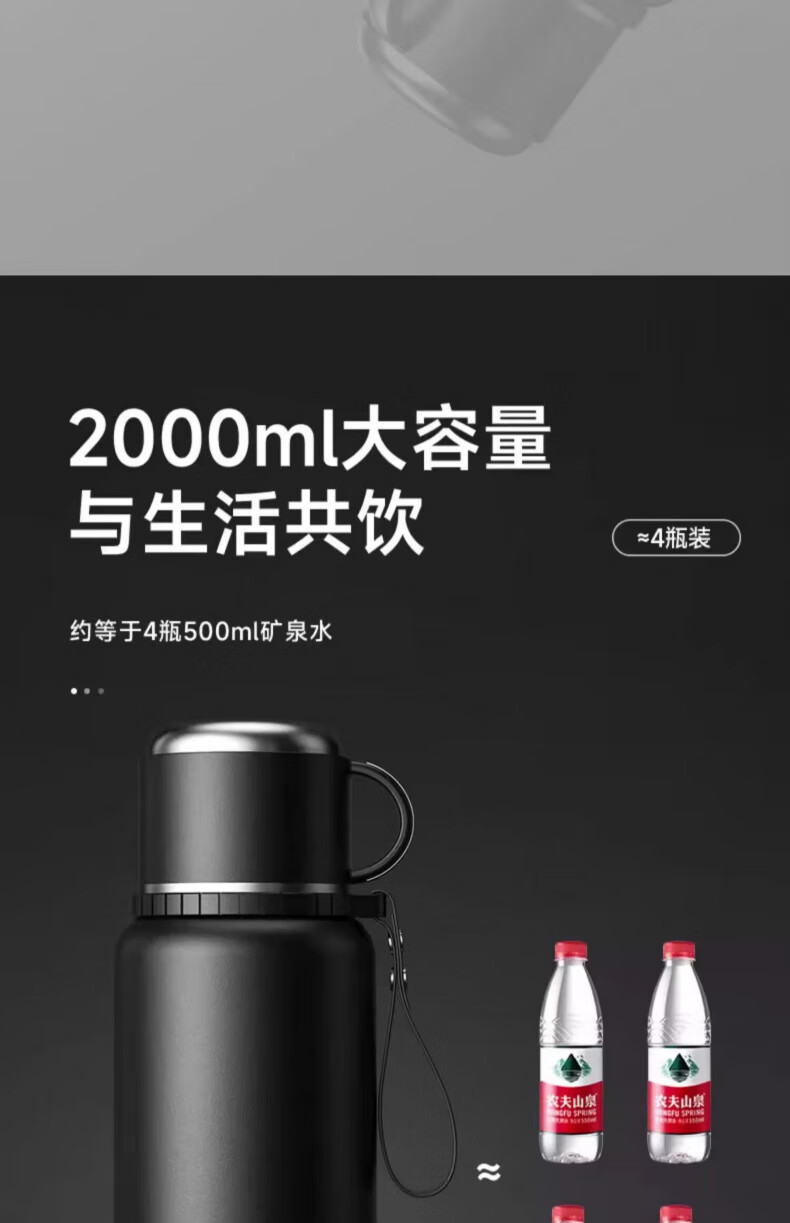 恩尔美(nRMEi)保温保冷杯大容量316L不锈钢男士吨桶吨大肚户外运动水壶冰霸杯子 黑色2000ml【冷热双保+316L】