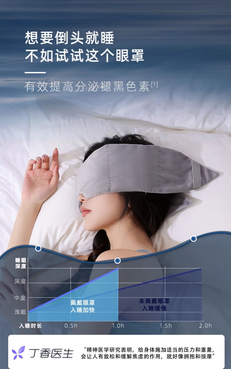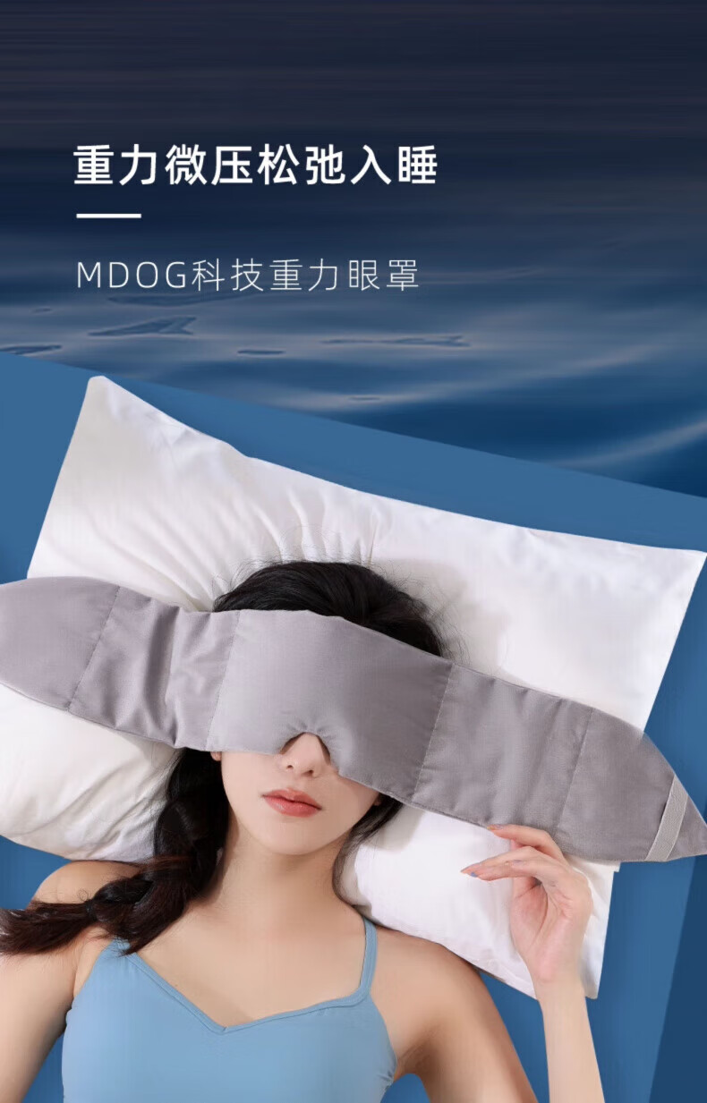 科技重力眼罩睡觉遮光专用午睡助睡眠神器女士男冰丝护 夏季单面冰丝款 | 凉面蓝/温面灰