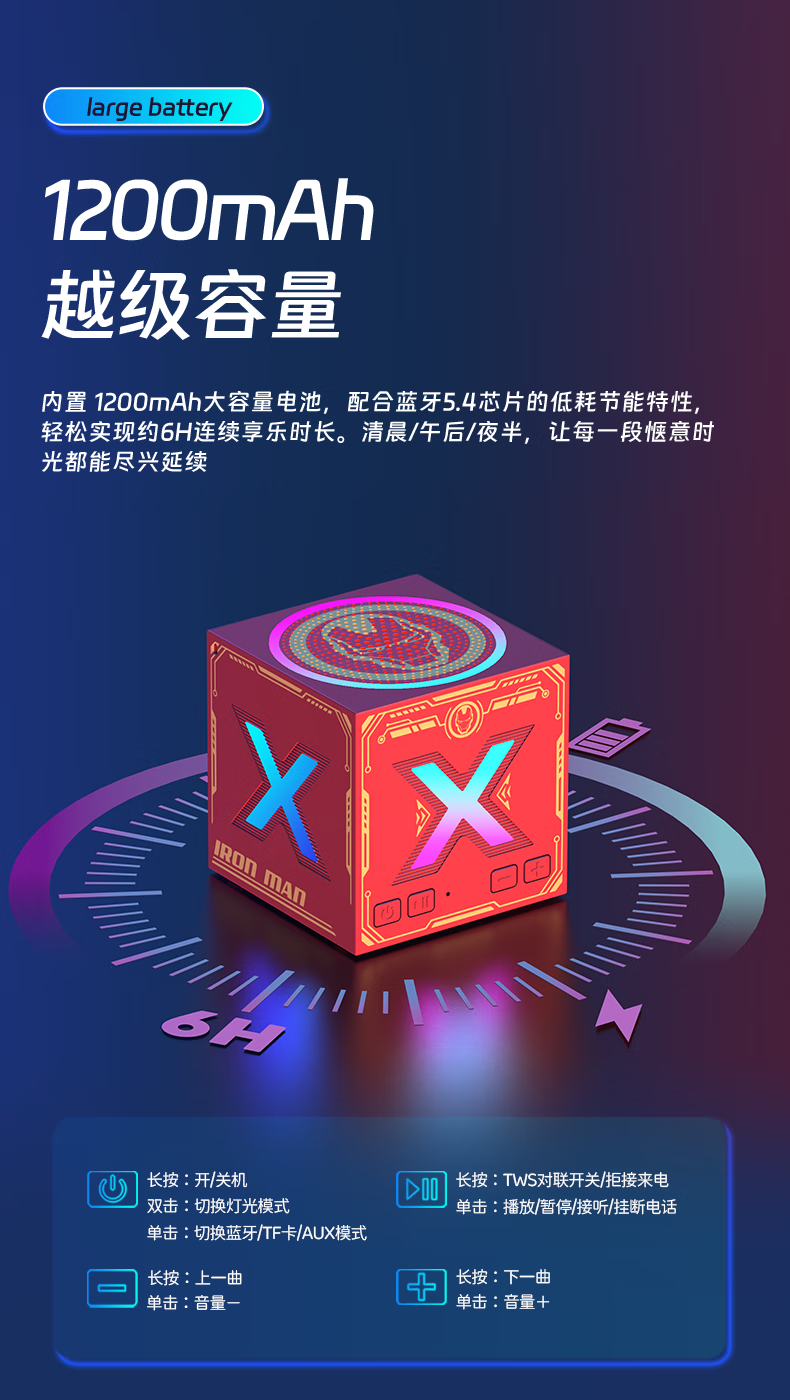 迪士尼(DISNEY)漫威钢铁侠电脑桌面蓝牙音箱高音质低音炮小型家用台式机便携小音响生日礼物男生实用 DW-S3钢铁侠