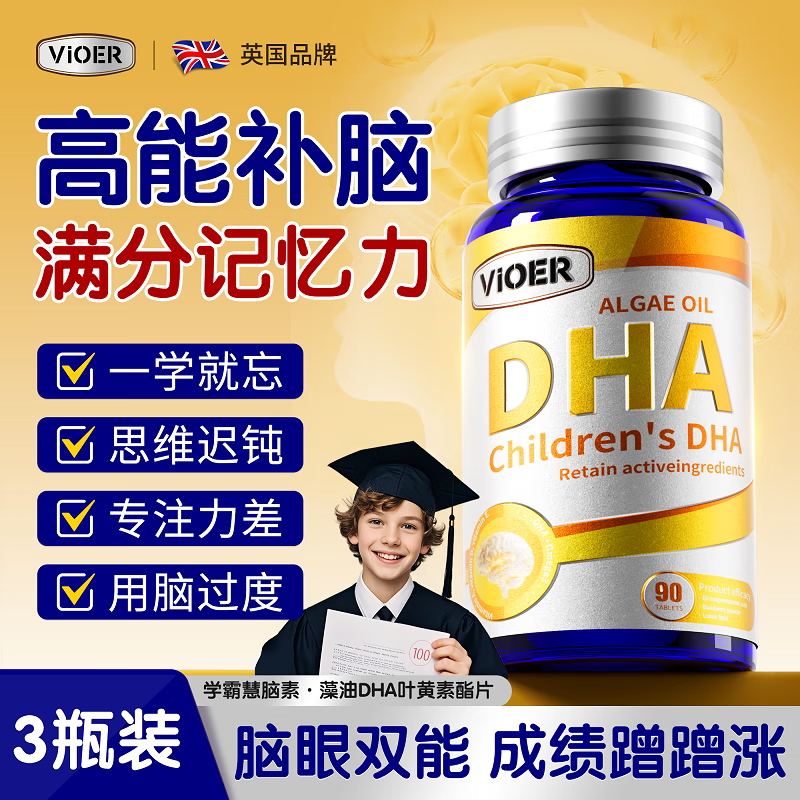VIOER英国DHA藻油补脑增青少年6-18岁强记忆力学生儿童3-12岁神经酸3瓶