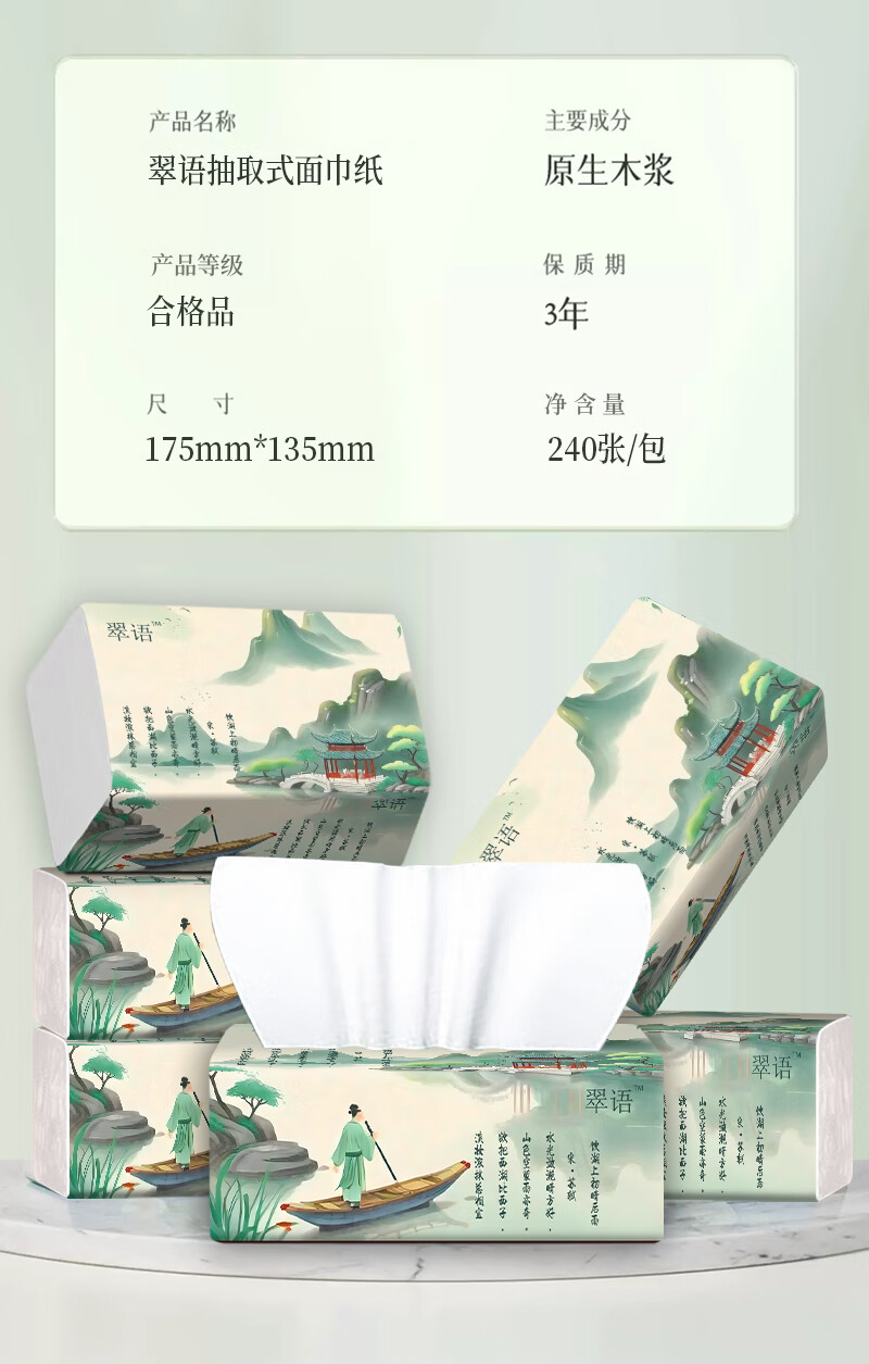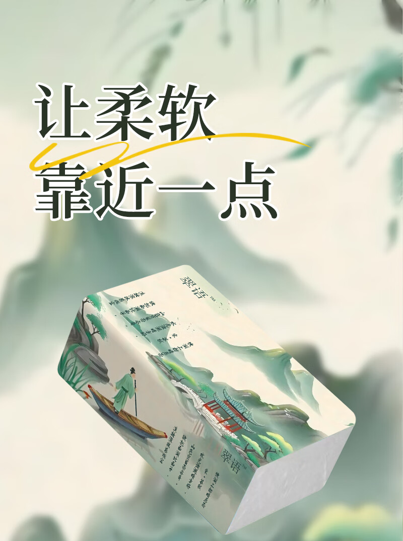 国风唐诗宋词压花纸巾 学生学习抽纸家用宿舍用卫生纸木浆亲肤可湿水餐巾纸面巾纸 5包装