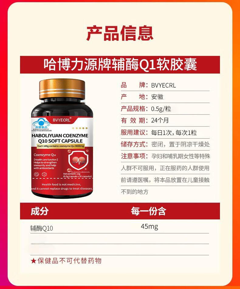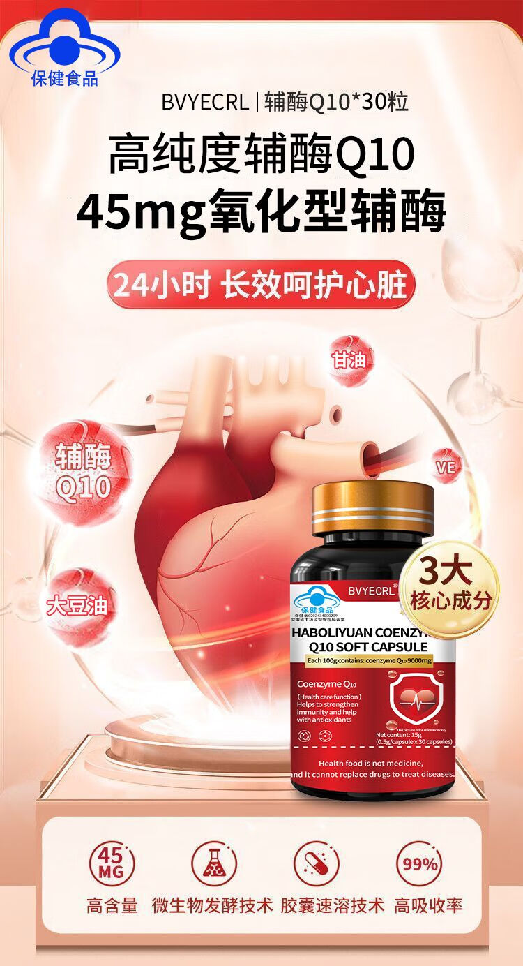 BVYECRL辅酶q10胶囊中老年保护心脏呵护心脑血管增强免疫力抗氧化送长辈 3瓶(周期装,呵护心脑血管)