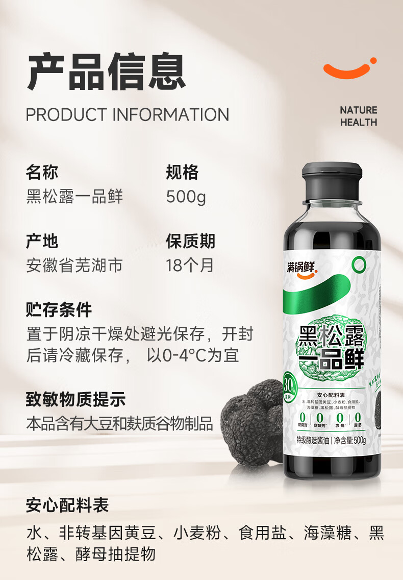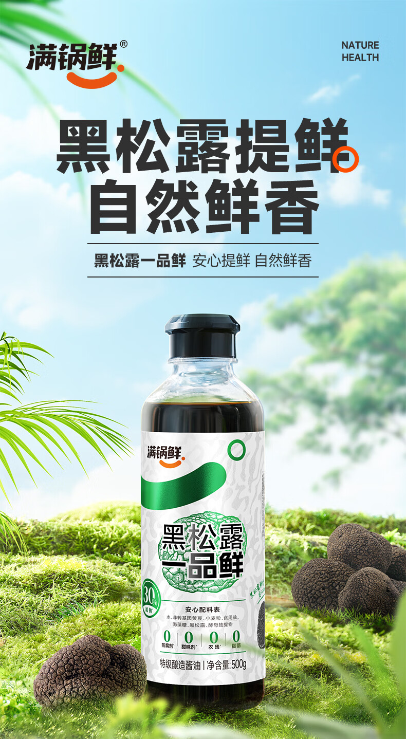 满锅鲜黑松露一品鲜特级酱油500g 0添加减钠30%生抽酿造酱油凉拌炒菜
