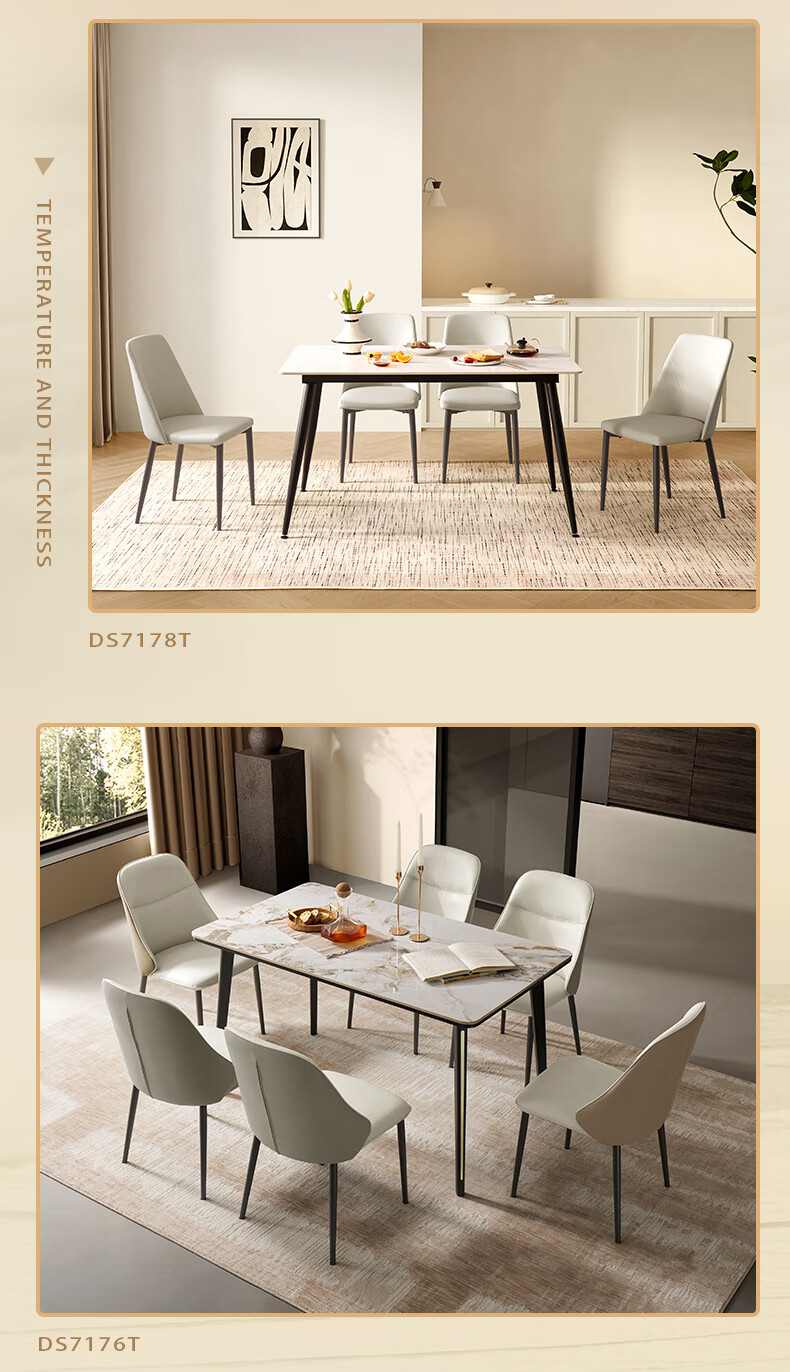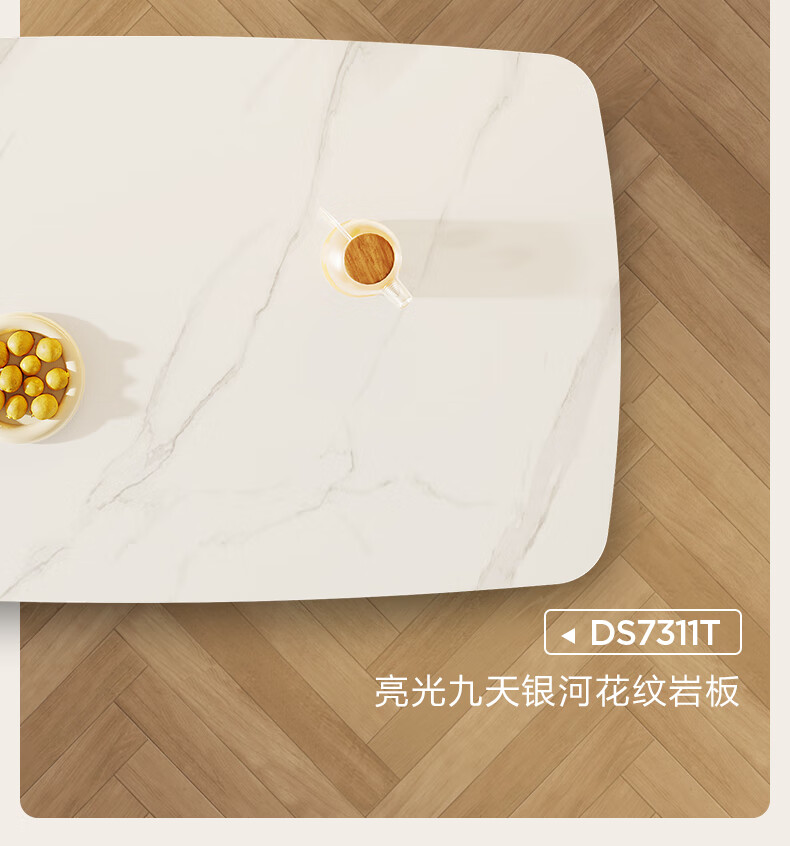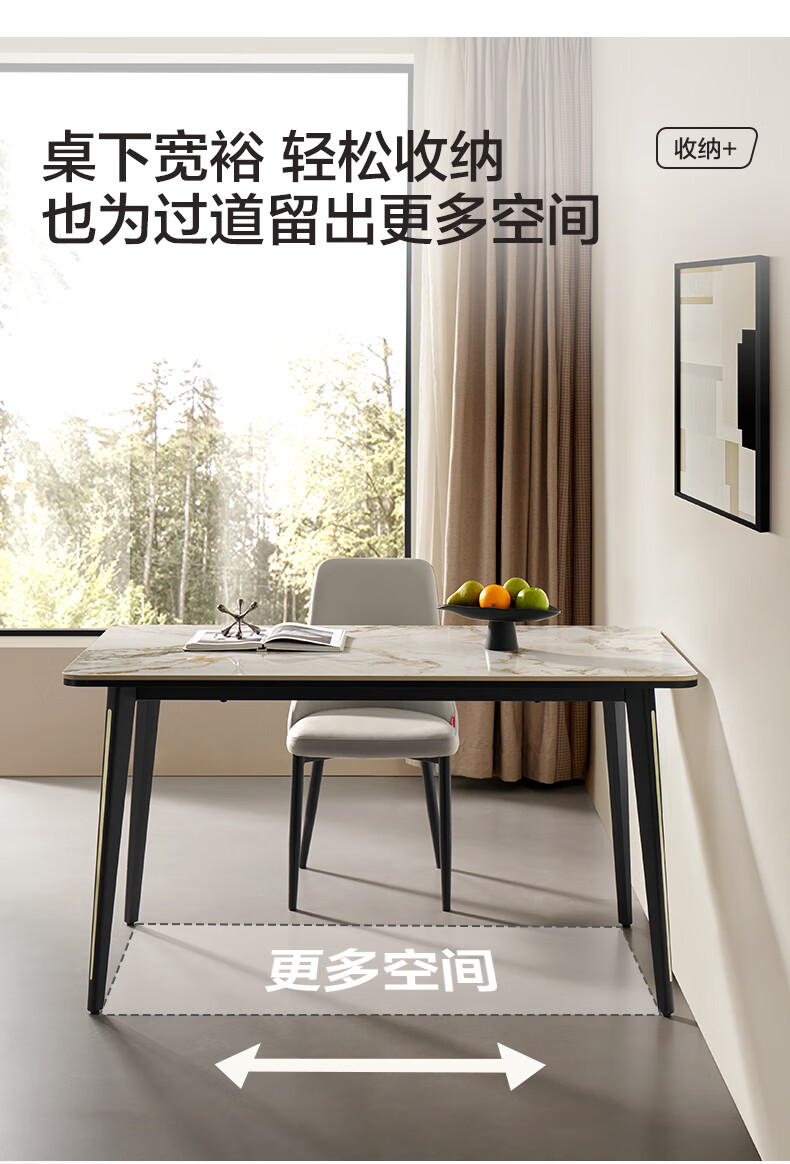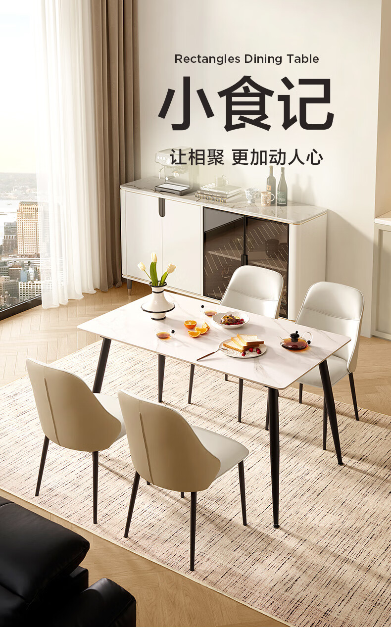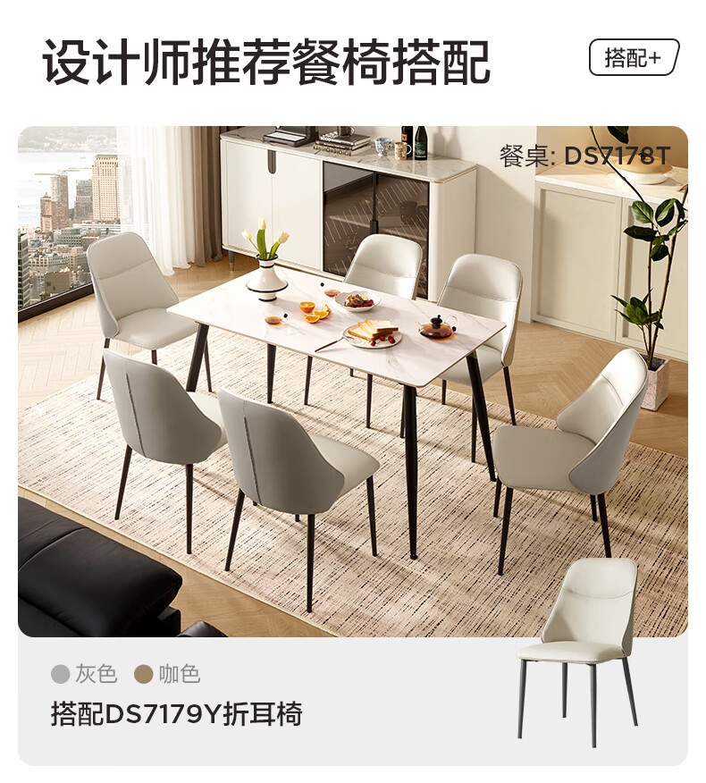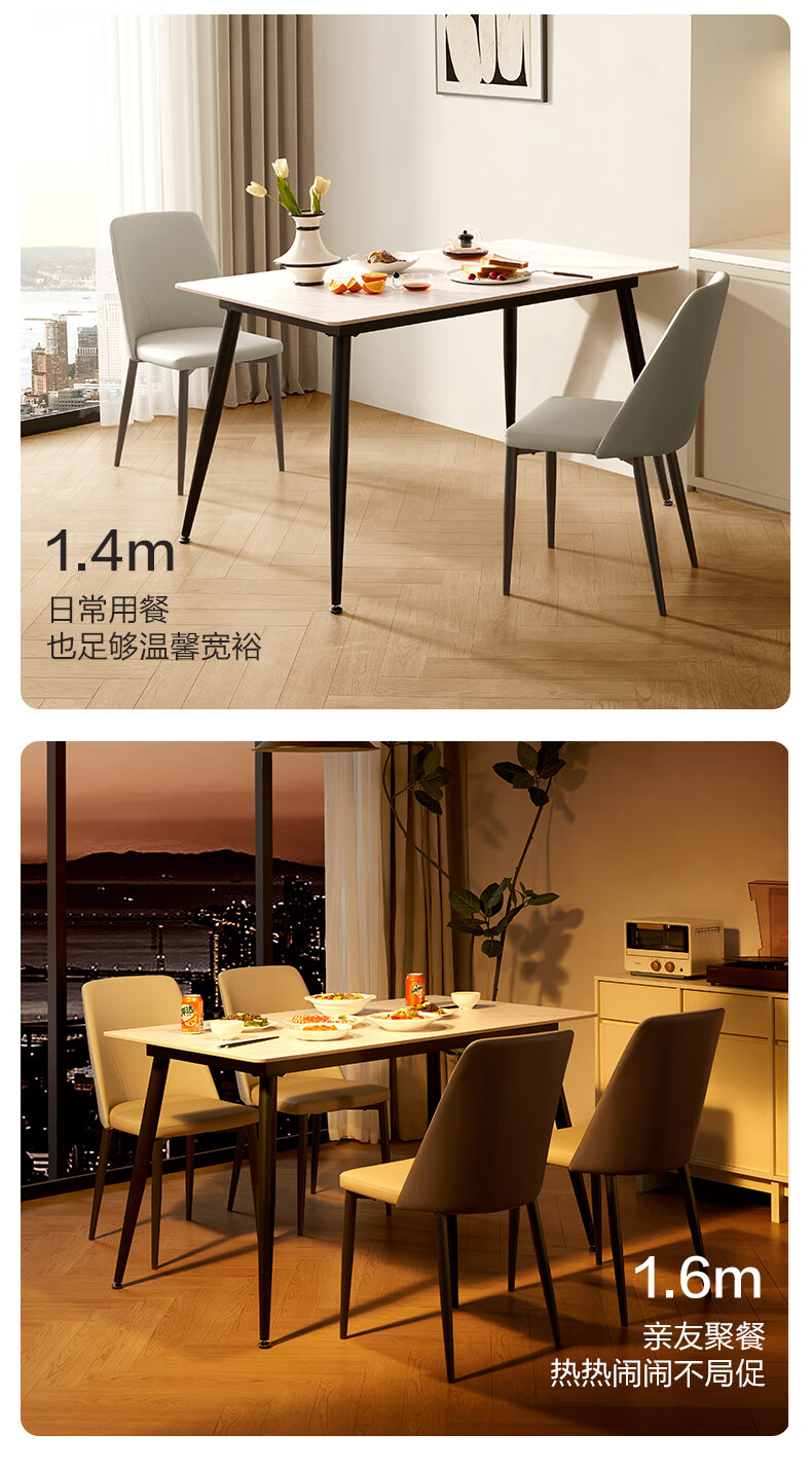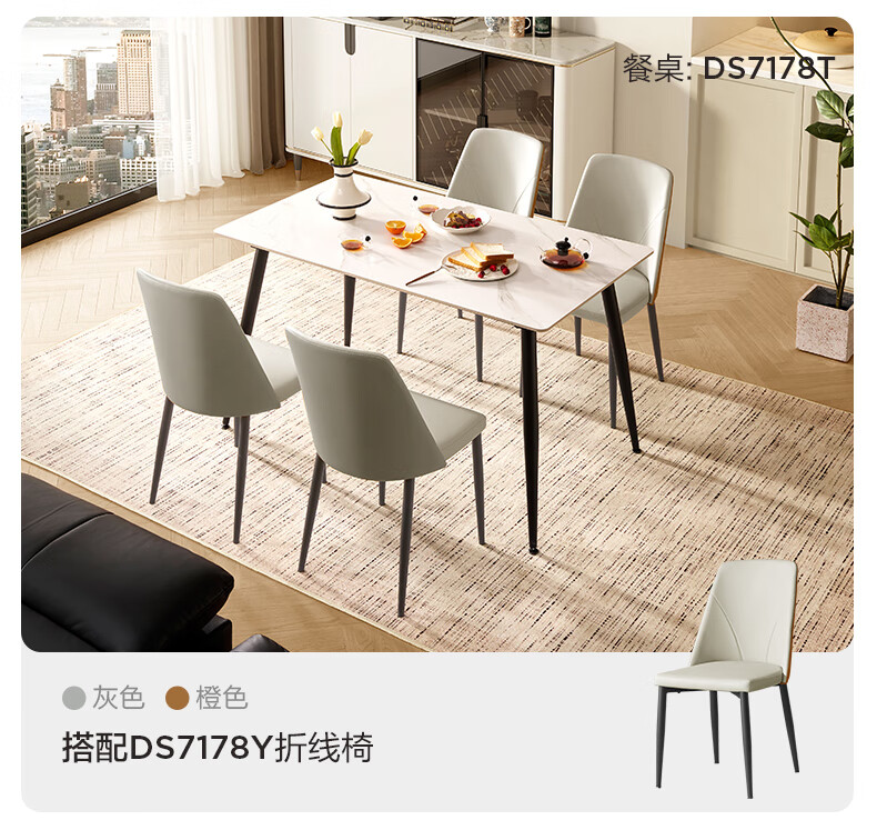 顾家家居(KUKA)现代简约岩板餐桌家用饭桌餐桌椅组合DS7178T 1.4M单桌+折耳灰椅4