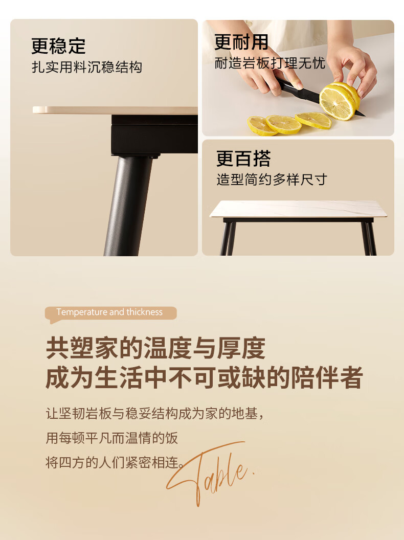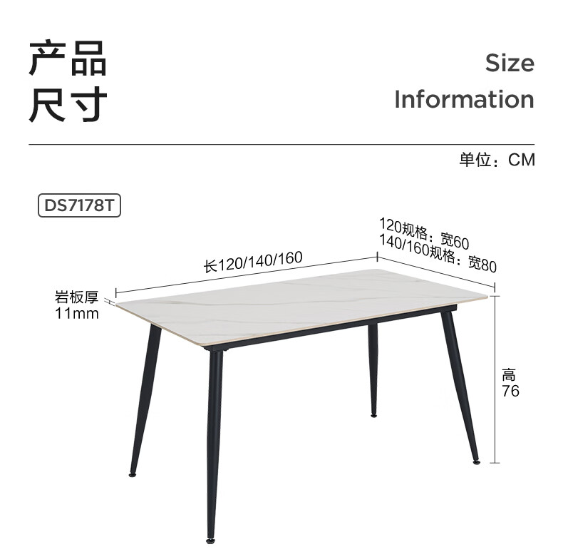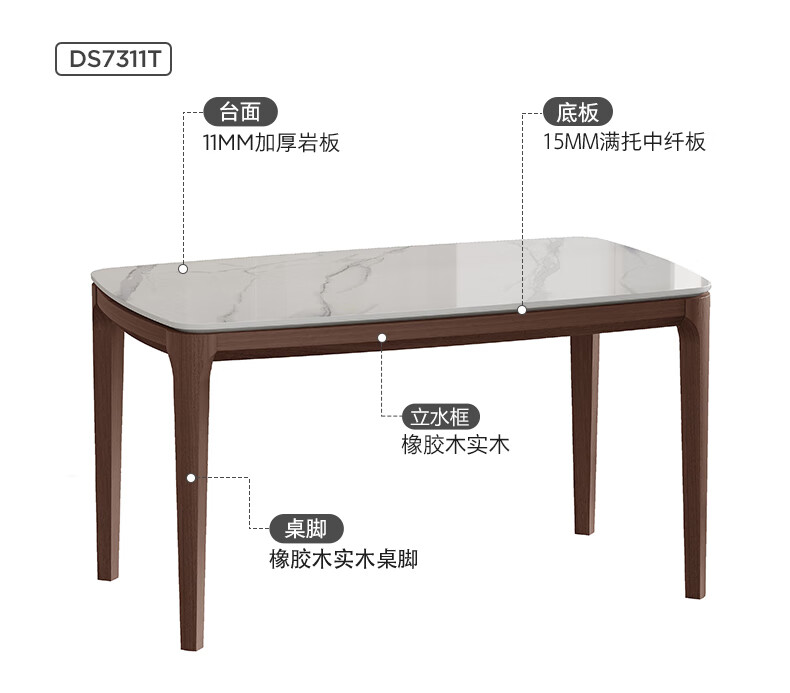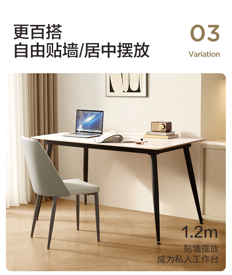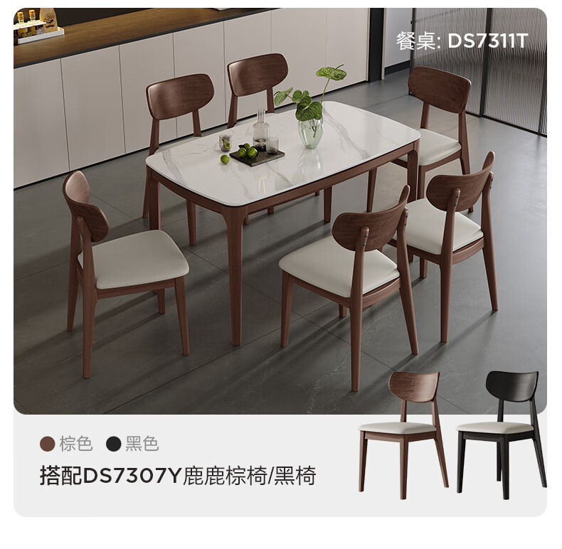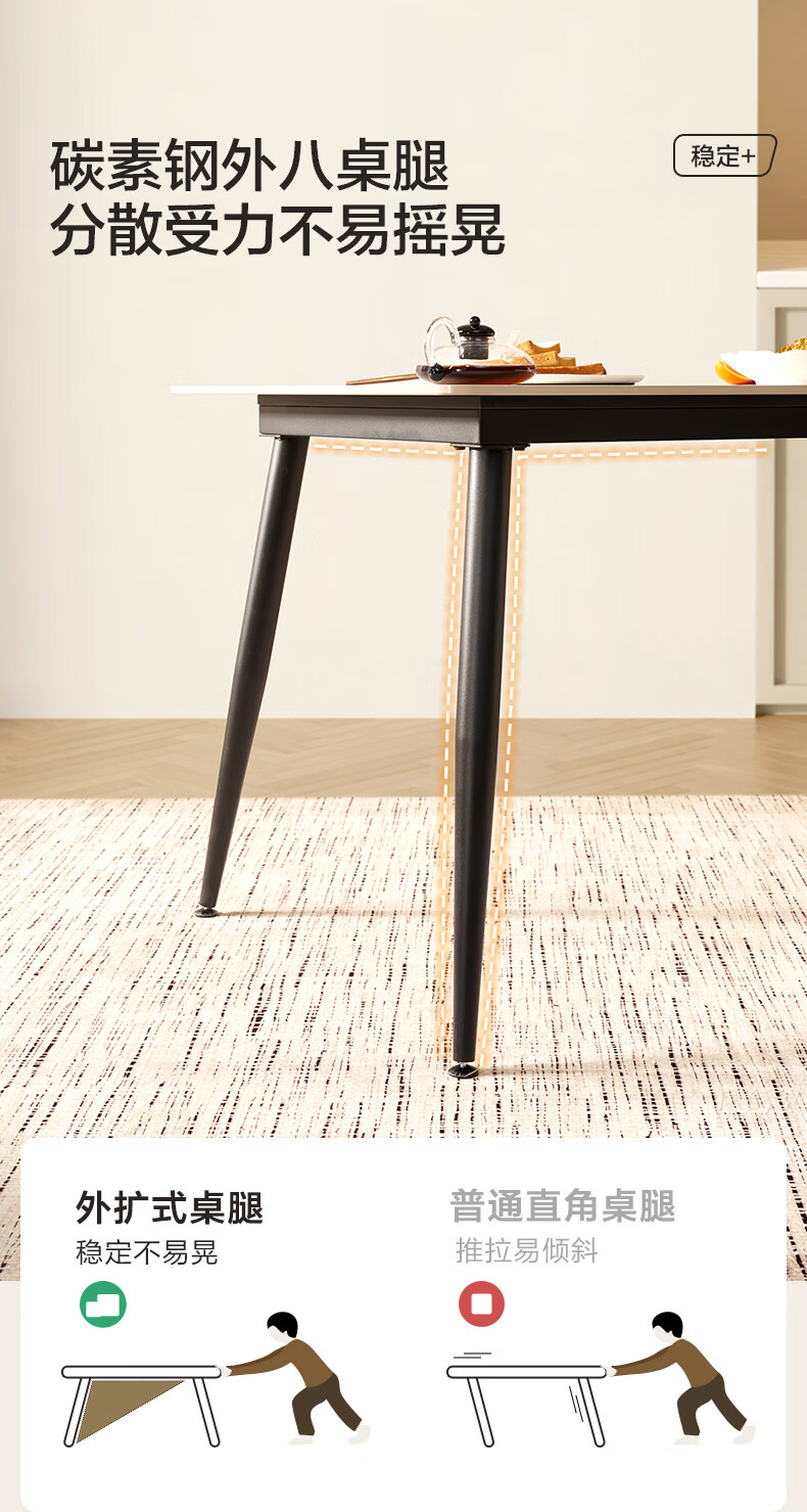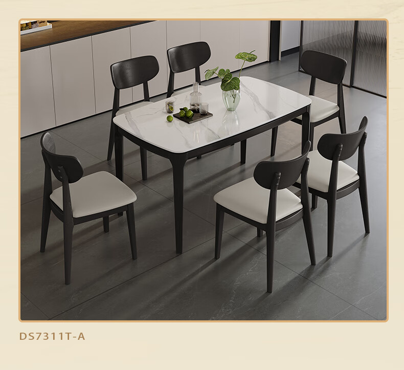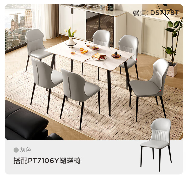 顾家家居(KUKA)现代简约岩板餐桌家用饭桌餐桌椅组合DS7178T 1.4M单桌+折耳灰椅4