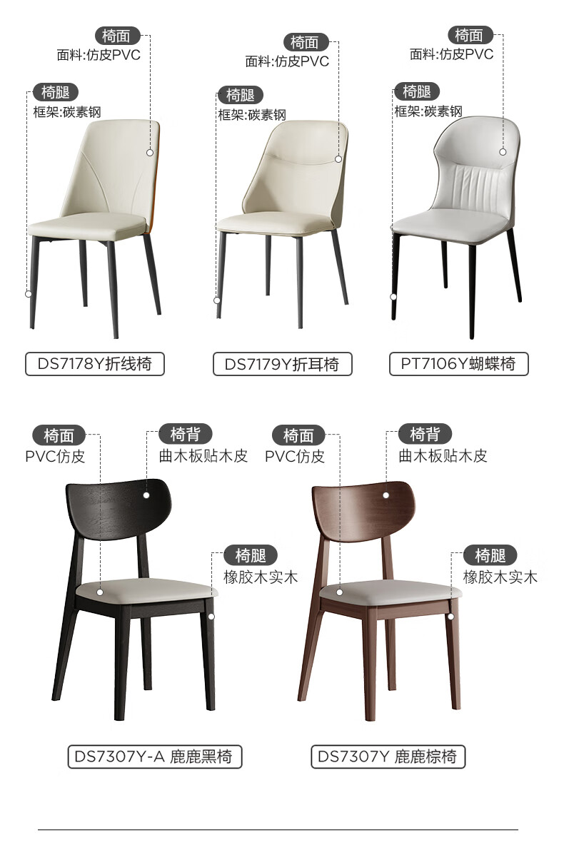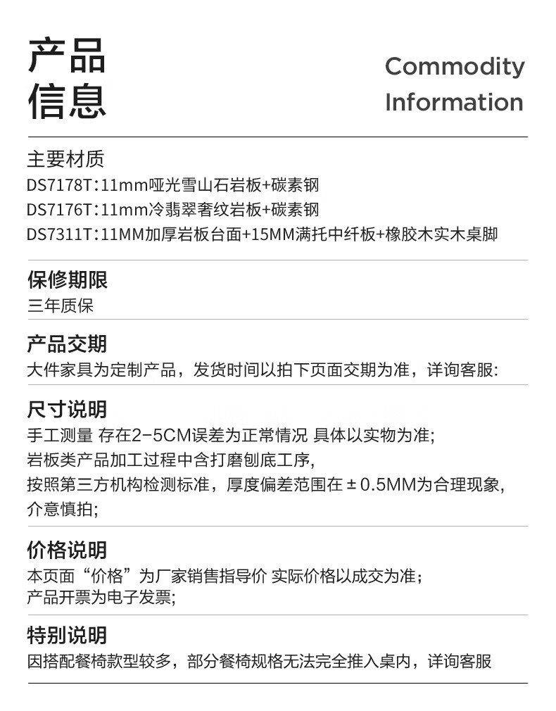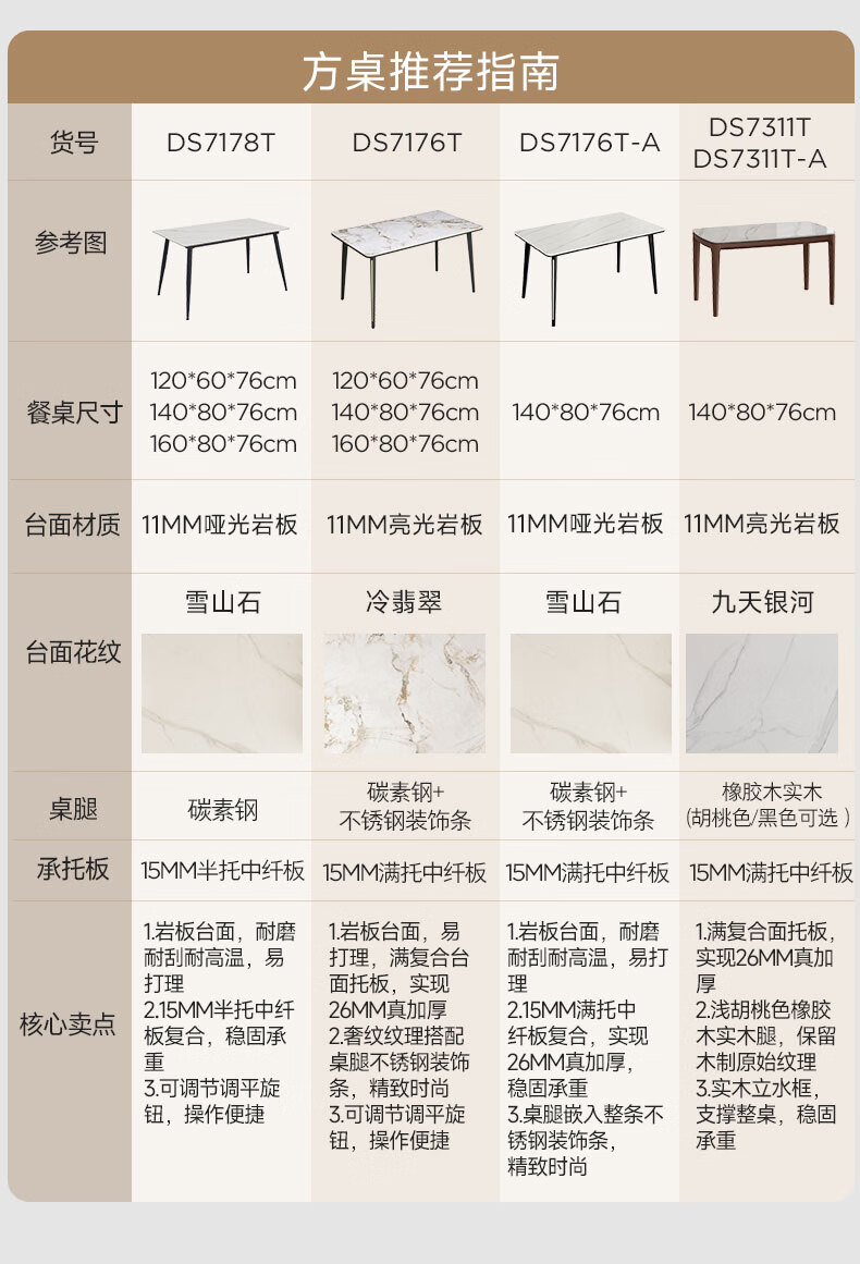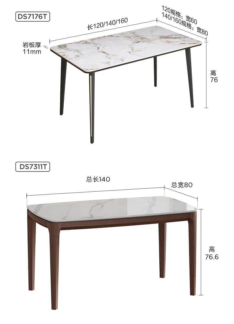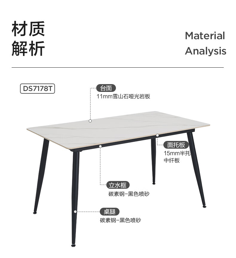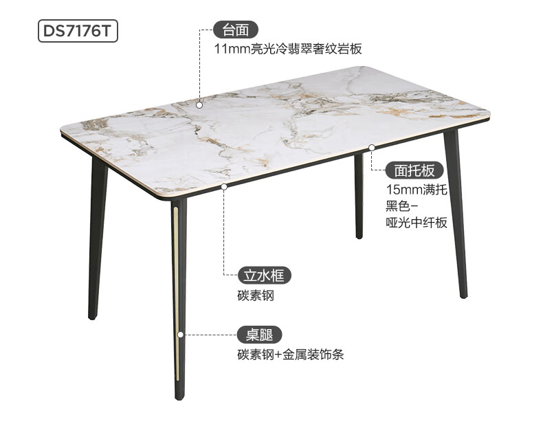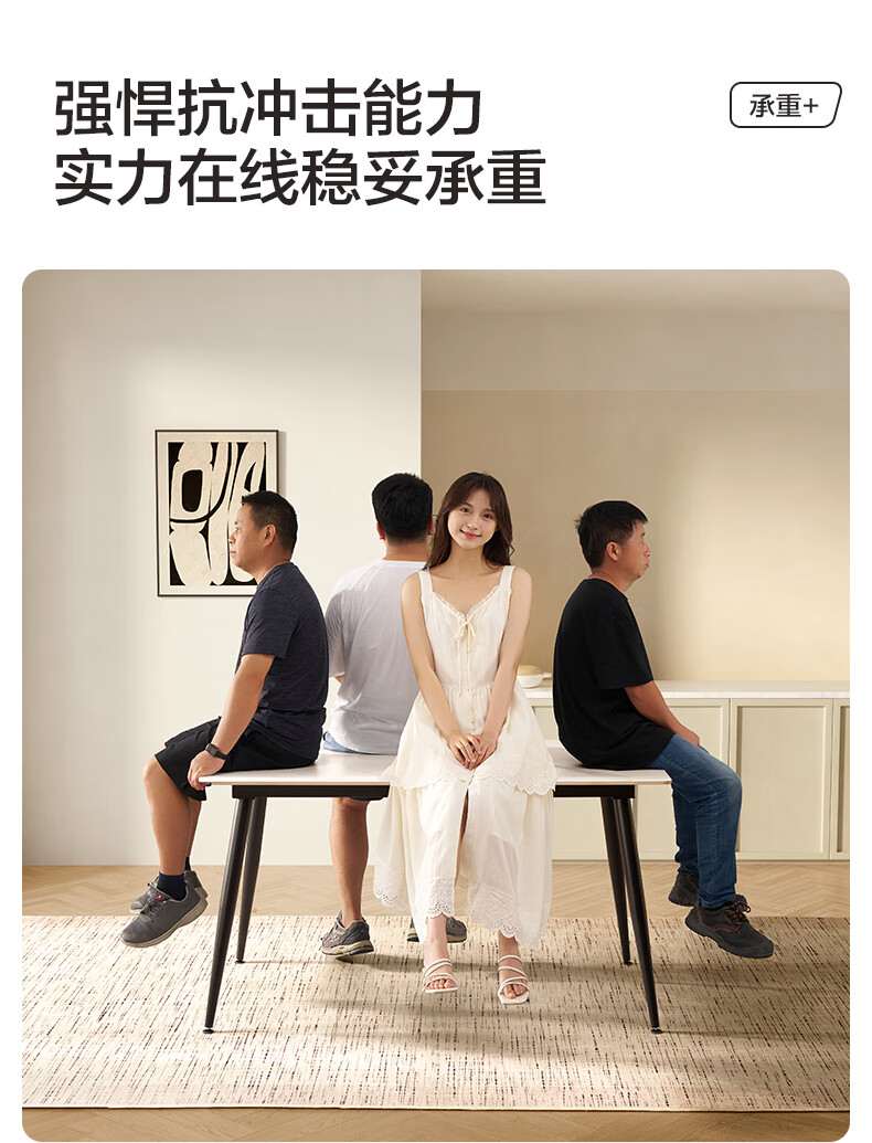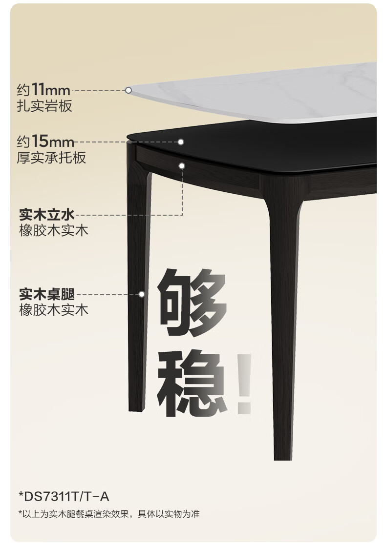 顾家家居(KUKA)现代简约岩板餐桌家用饭桌餐桌椅组合DS7178T 1.4M单桌+折耳灰椅4