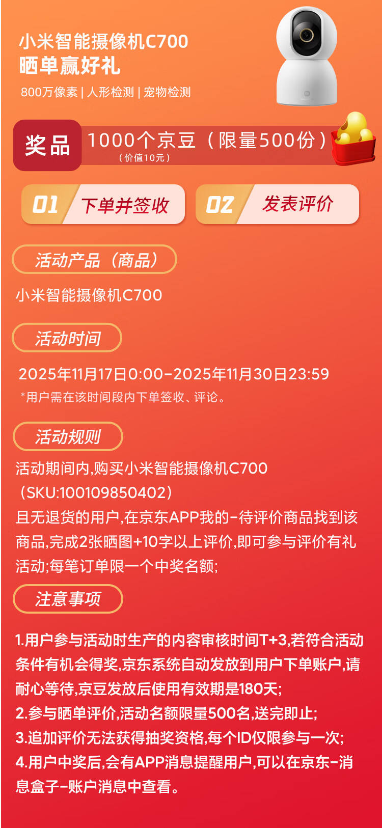 小米智能摄像机C700 800万像素4K超清监控家用摄像头360度全景婴儿监控手机远程监控器宠物高清带夜视