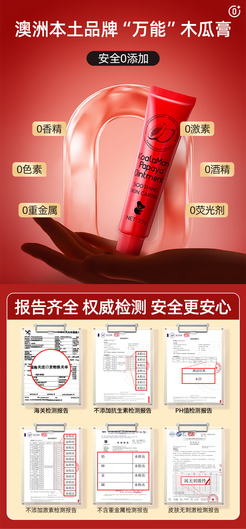 KoalaMan考拉侠澳洲番木瓜膏25g润唇膏护唇膏宝宝护臀保湿淡化唇纹防干裂 【爆款超值推荐】番木瓜膏25g*2支
