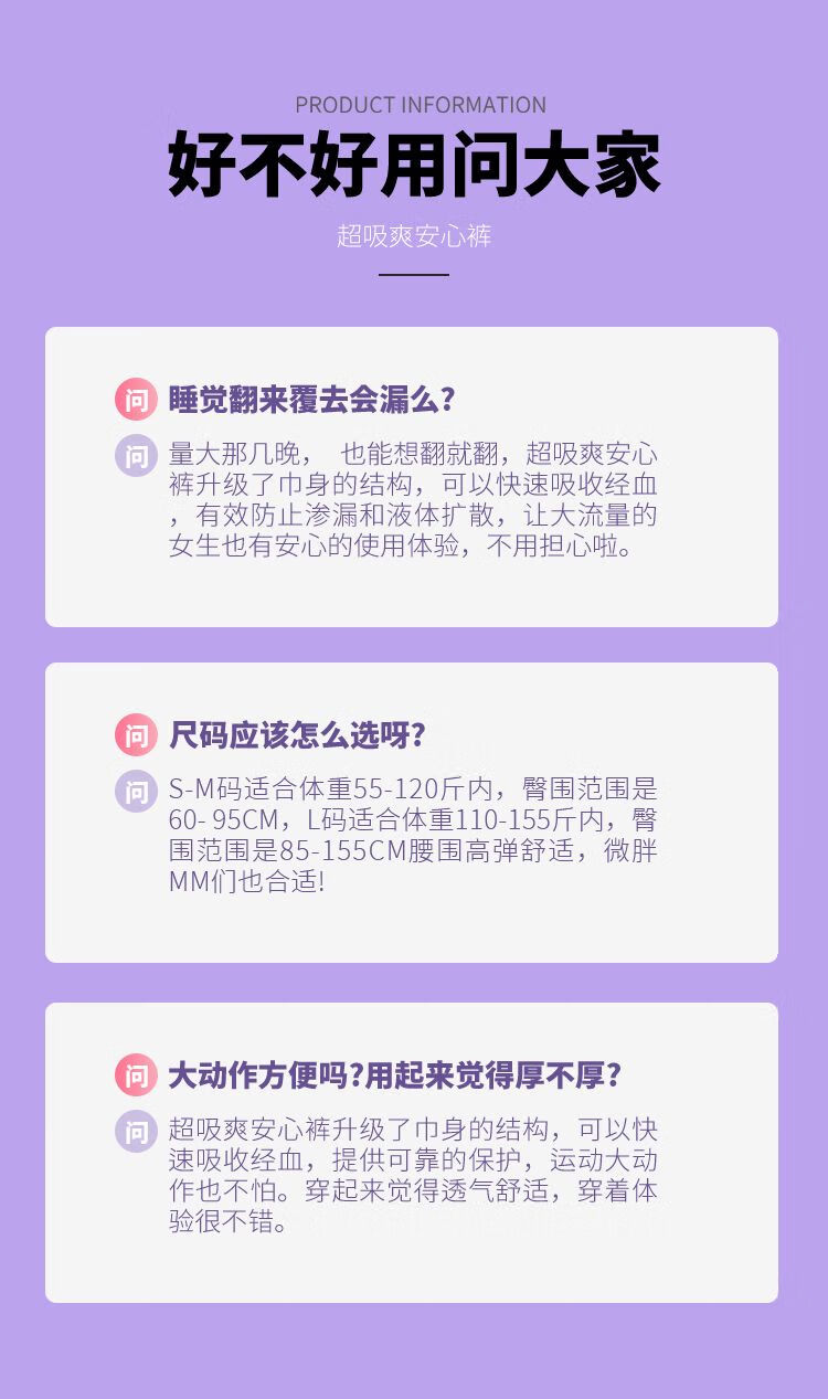 AILUKI安睡裤大码经期夜用少女超薄透气防侧漏一次性姨妈安心裤性卫生巾 M码适合体重(50-125斤) 新款【1包】加量不加价
