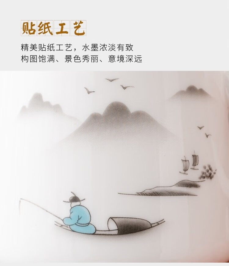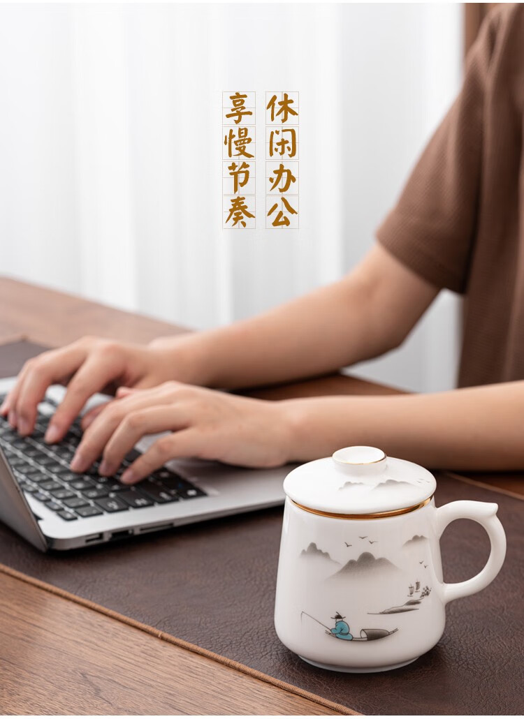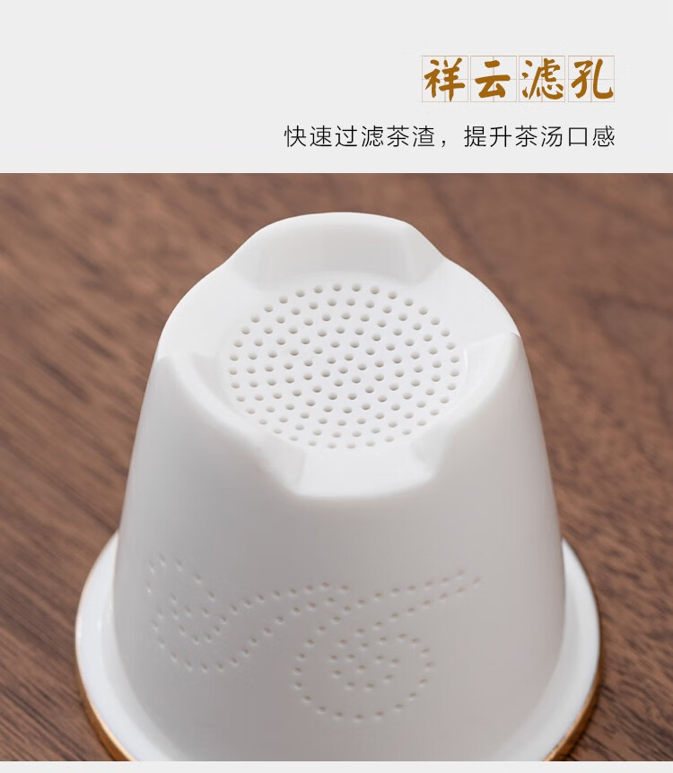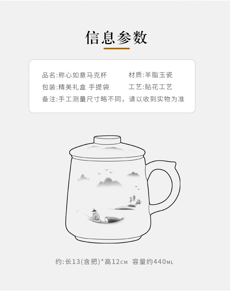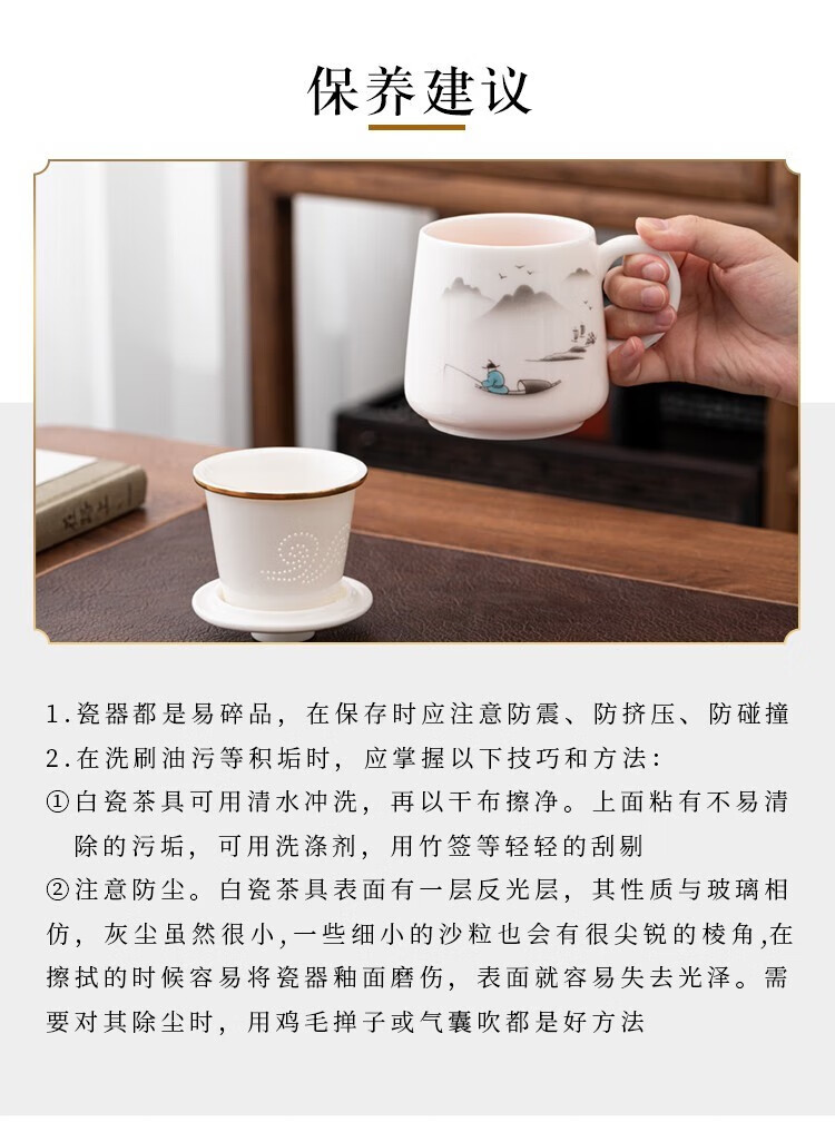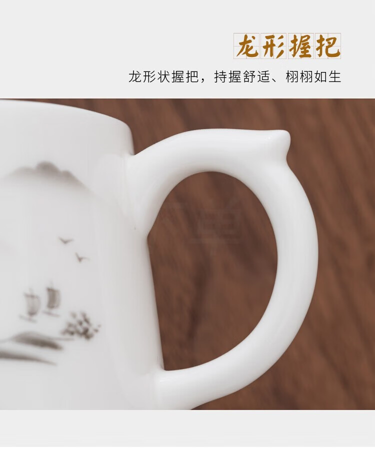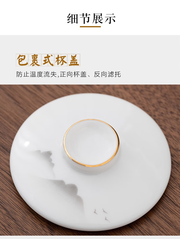 金镶玉茶杯三件套 羊脂玉瓷家用陶瓷白瓷茶水分离马克杯功夫茶具礼盒装 称心如意羊脂玉瓷马克杯升级款