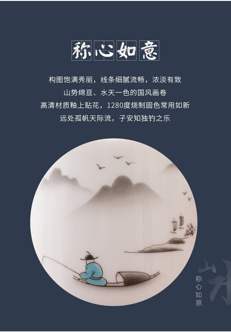 贺川屋陶瓷鱼盘日式釉下彩12英寸蒸鱼盘菜盘子 兰亭序