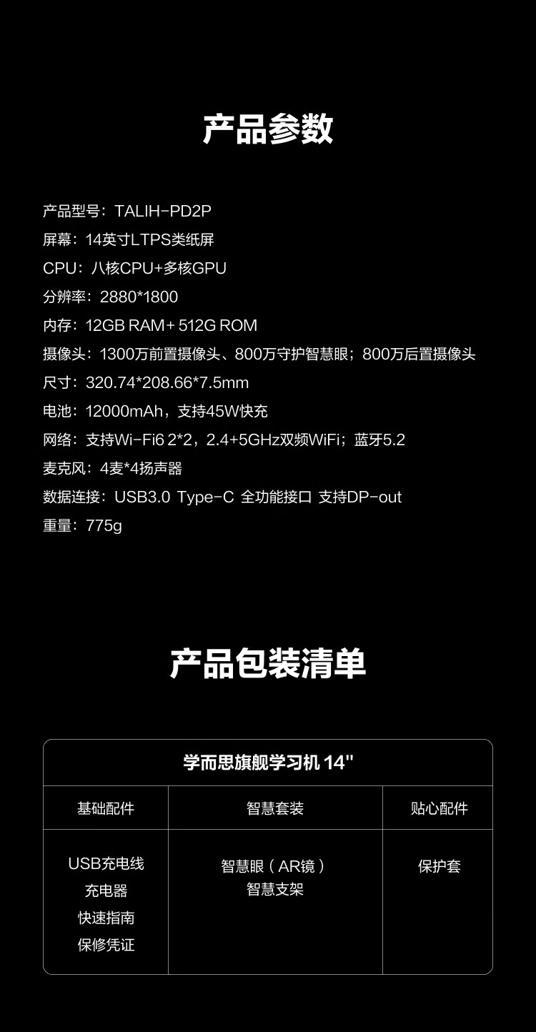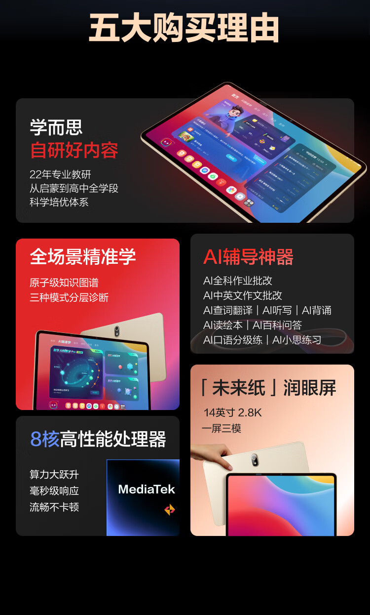 学而思二代旗舰 学习机【支持deepseek】 精准学Pro 九章大模型 中学小学 学生 学习平板 家教机 【超大屏】14英寸(12+512G)
