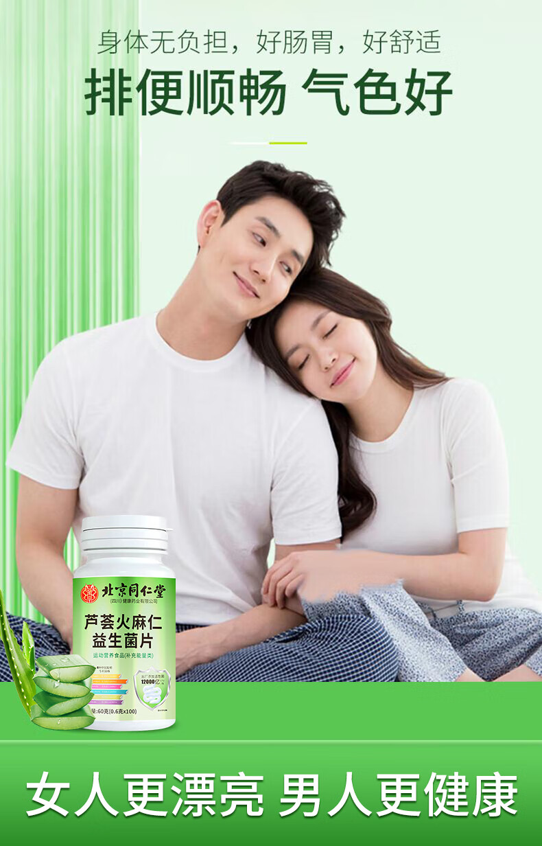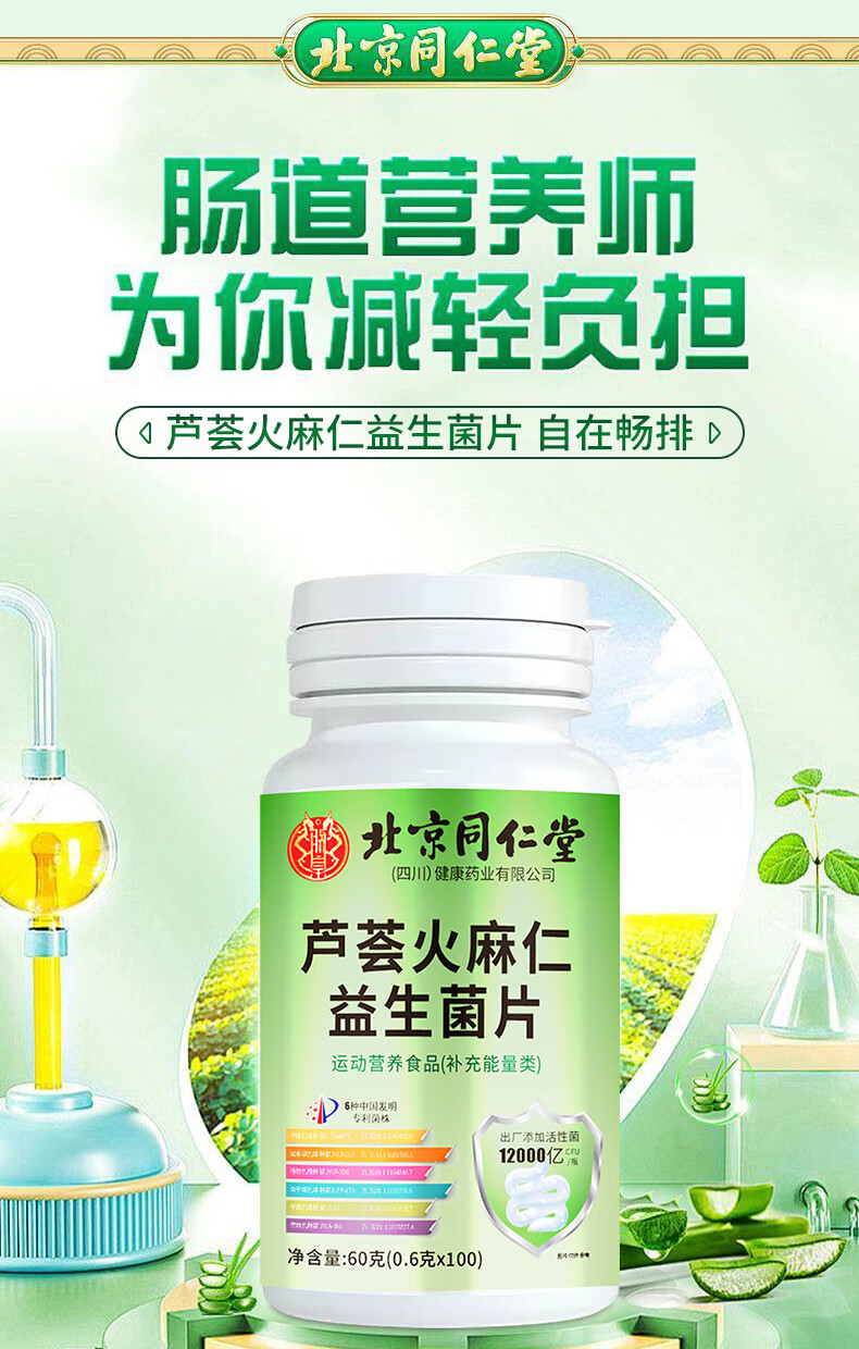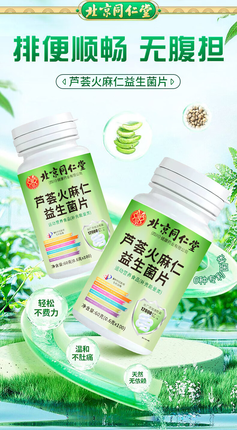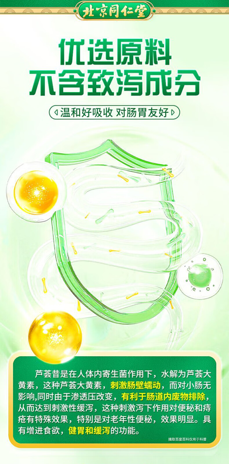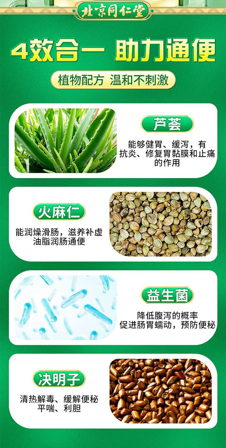 朕皇北京同仁堂芦荟火麻仁便秘清肠排毒通便润肠大便干燥非软胶囊3瓶