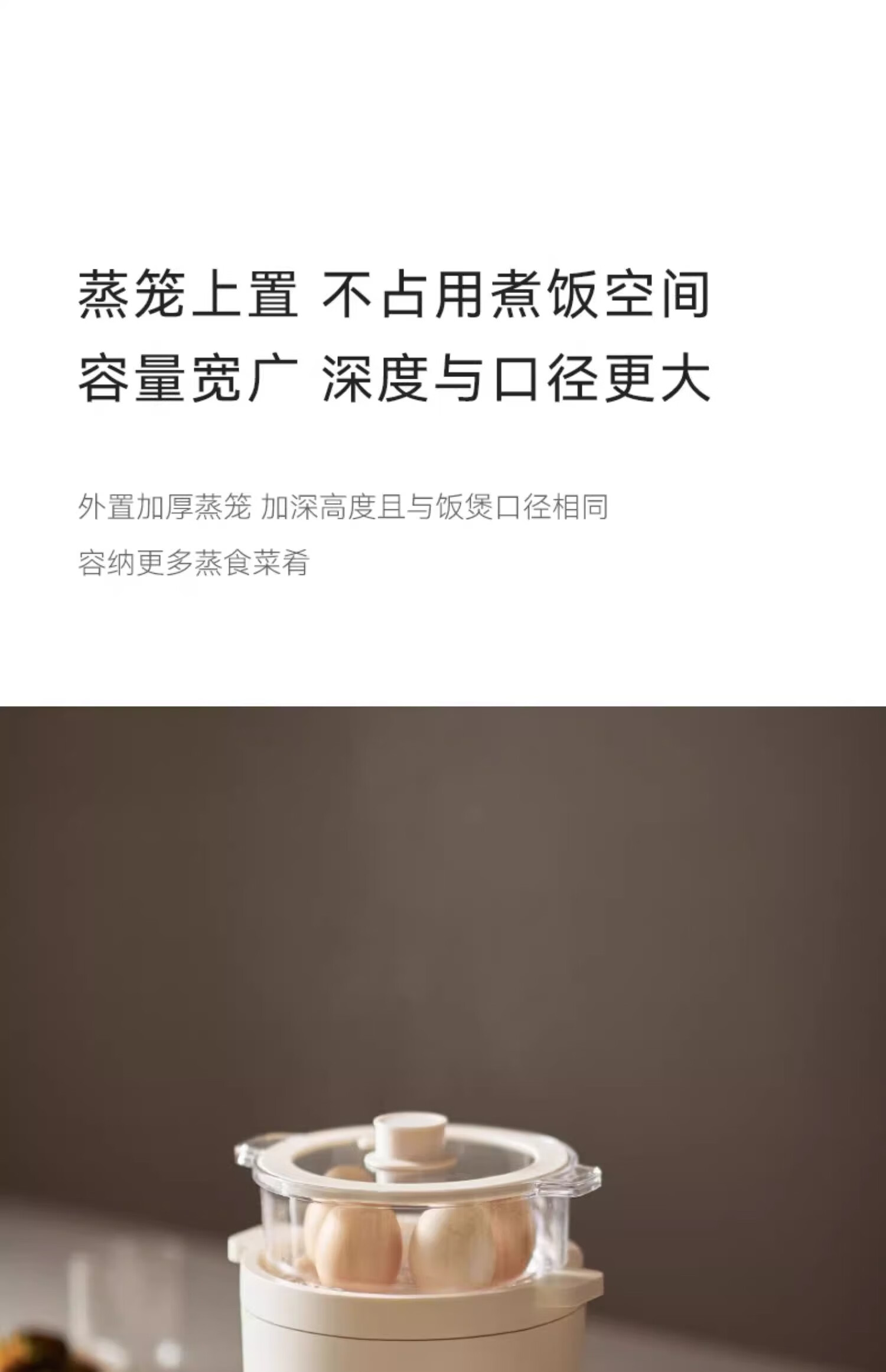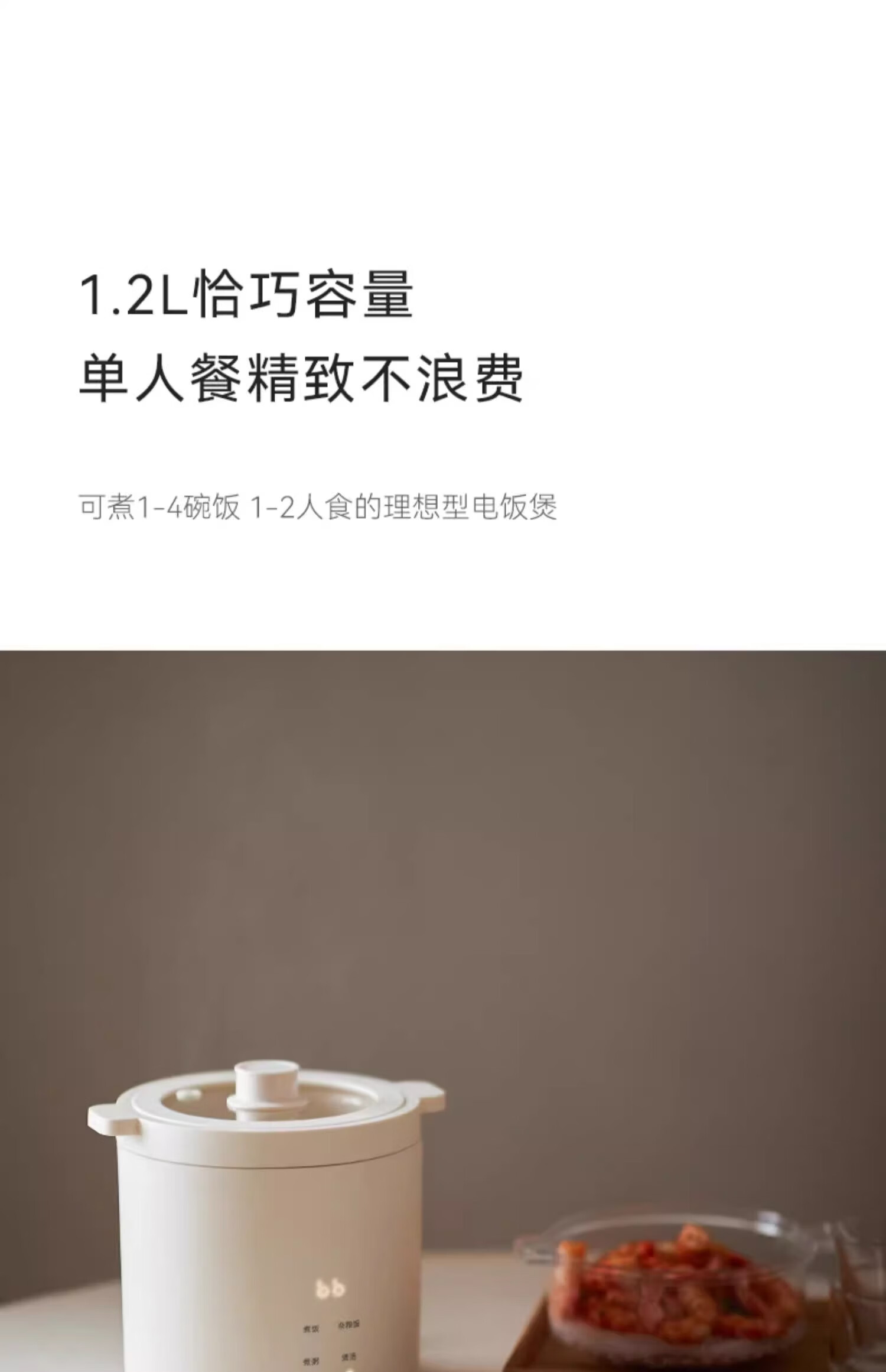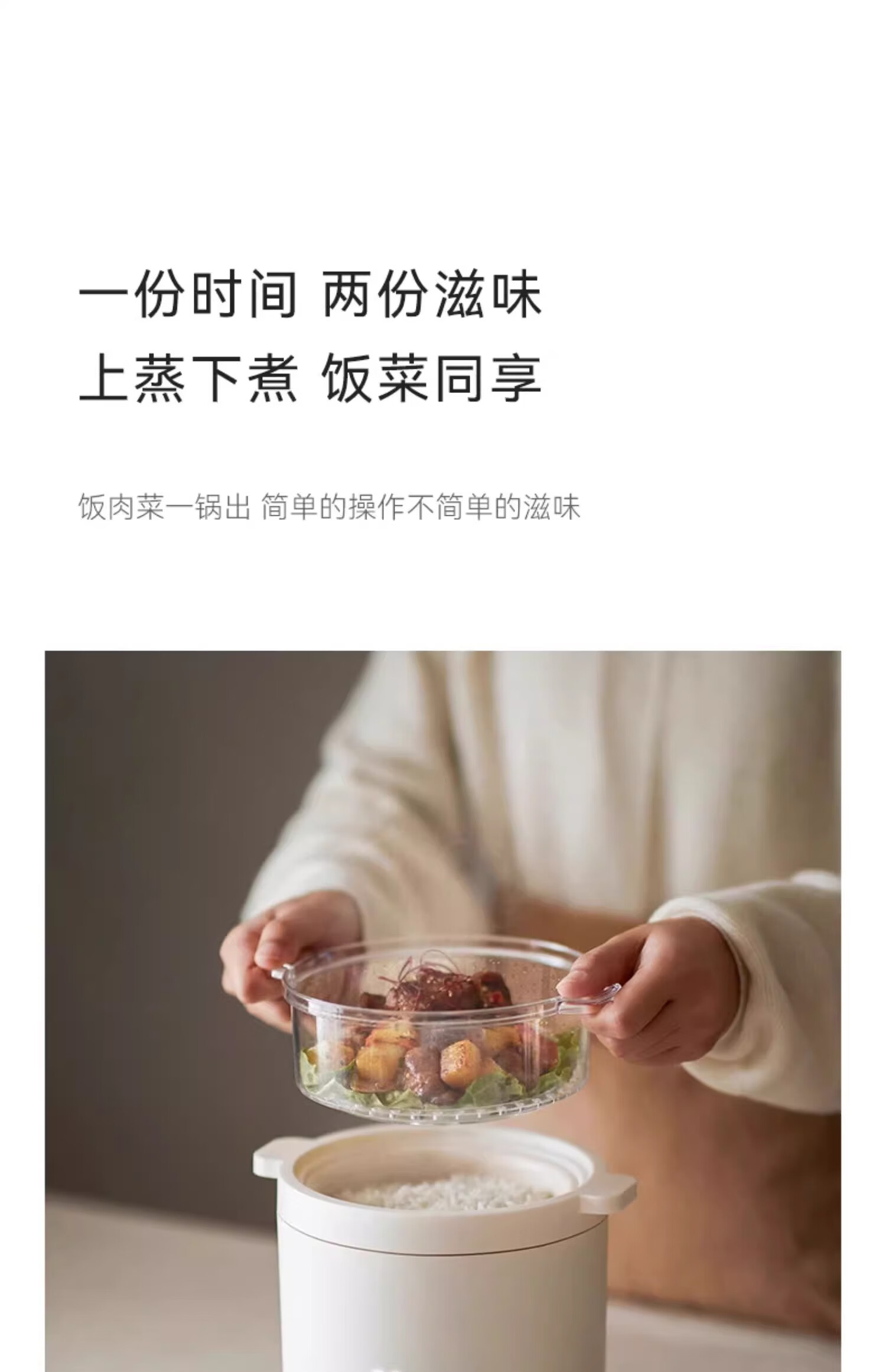 olayks立时电饭煲小迷你电饭锅小型智能多功能防溢米饭锅家用蒸饭锅1人食mini快煮陶瓷釉不粘锅 陶白 1.2L 【陶瓷釉内胆+不锈钢蒸笼】