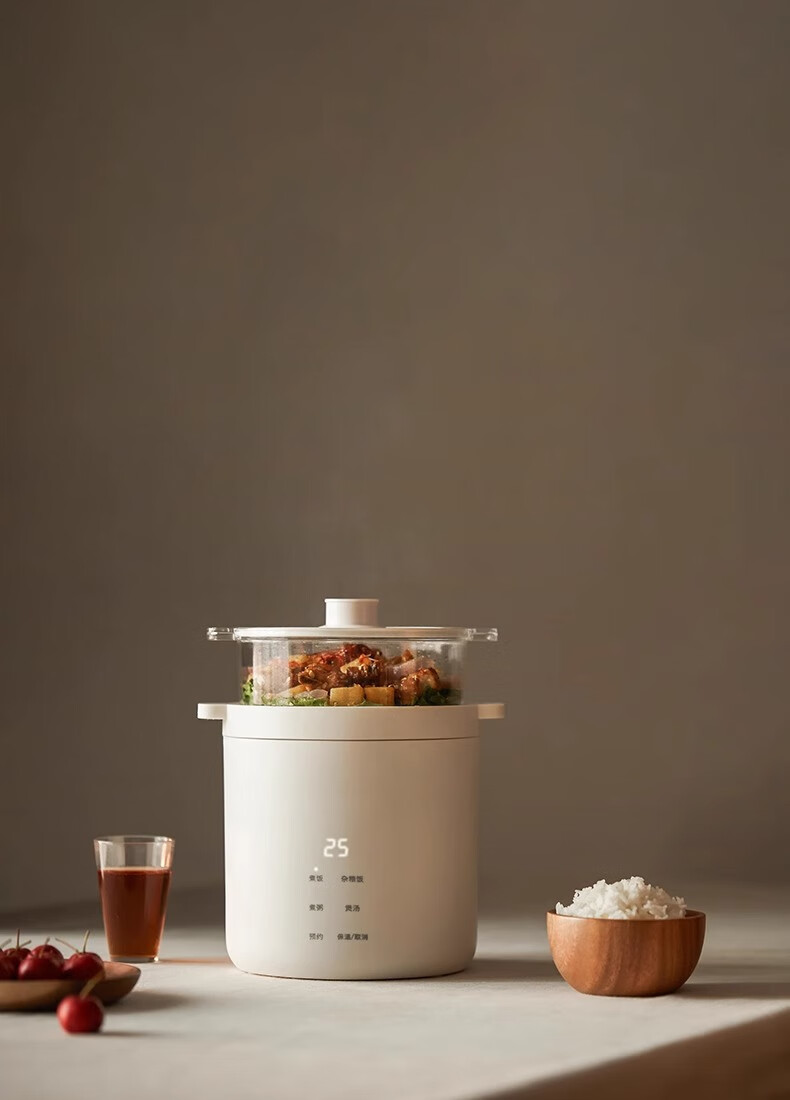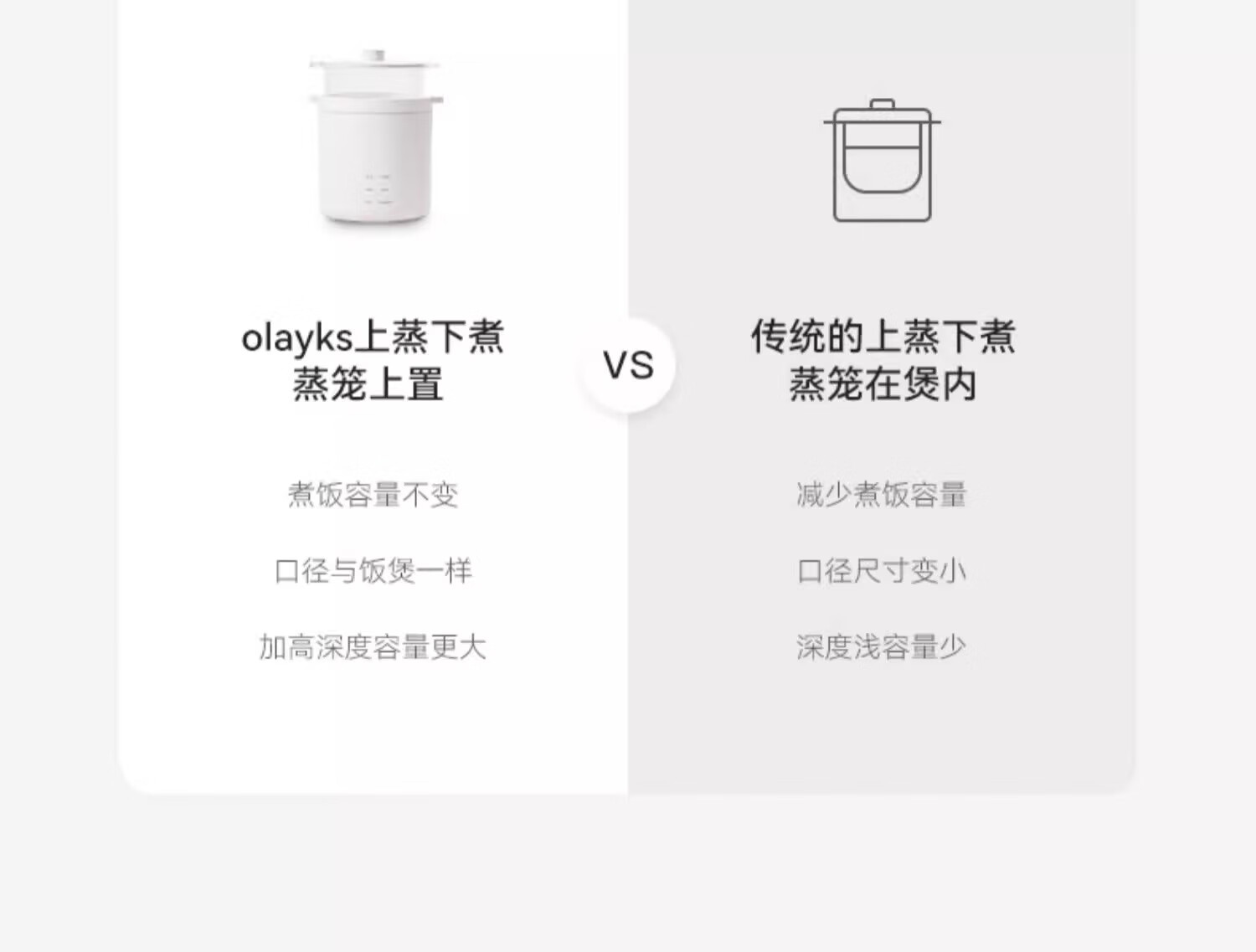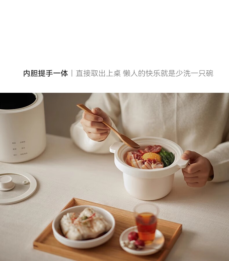 olayks立时电饭煲小迷你电饭锅小型智能多功能防溢米饭锅家用蒸饭锅1人食mini快煮陶瓷釉不粘锅 陶白 1.2L 【陶瓷釉内胆+不锈钢蒸笼】