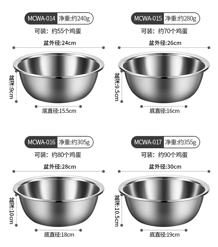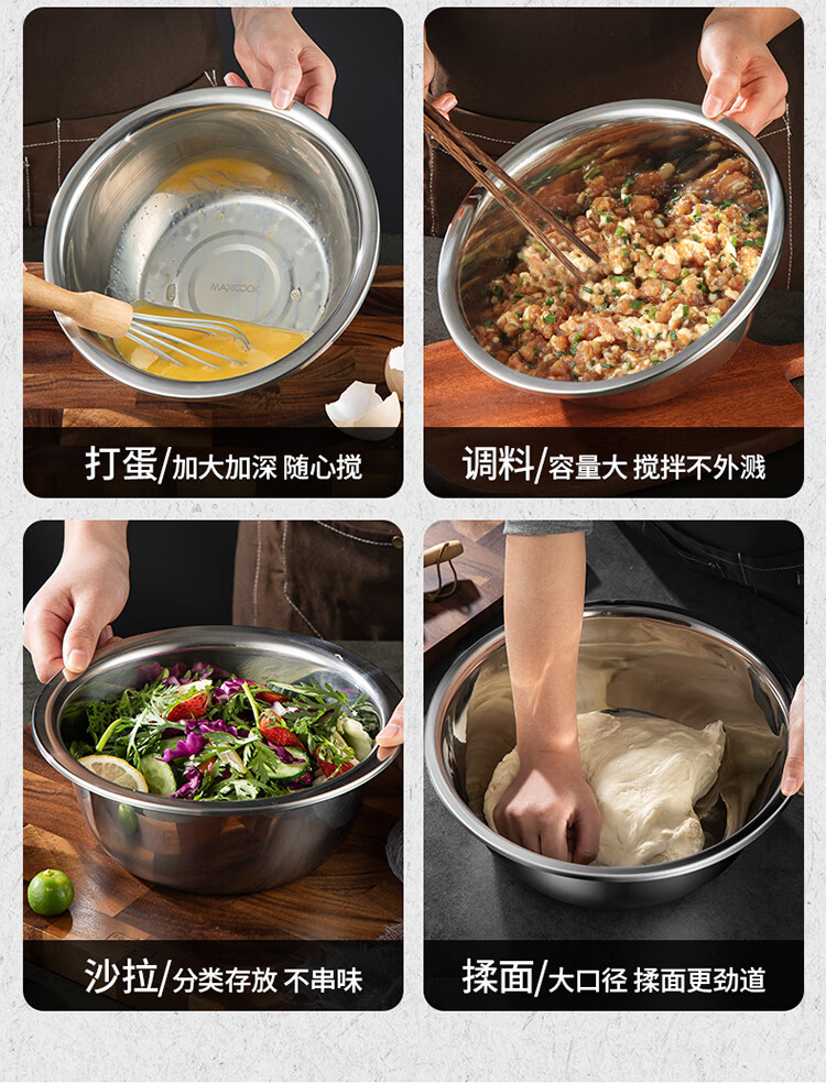 美厨(maxcook)不锈钢盆洗菜盆调料盆和面盆 加大加厚味斗36cm 拌沙拉 个MCWA809