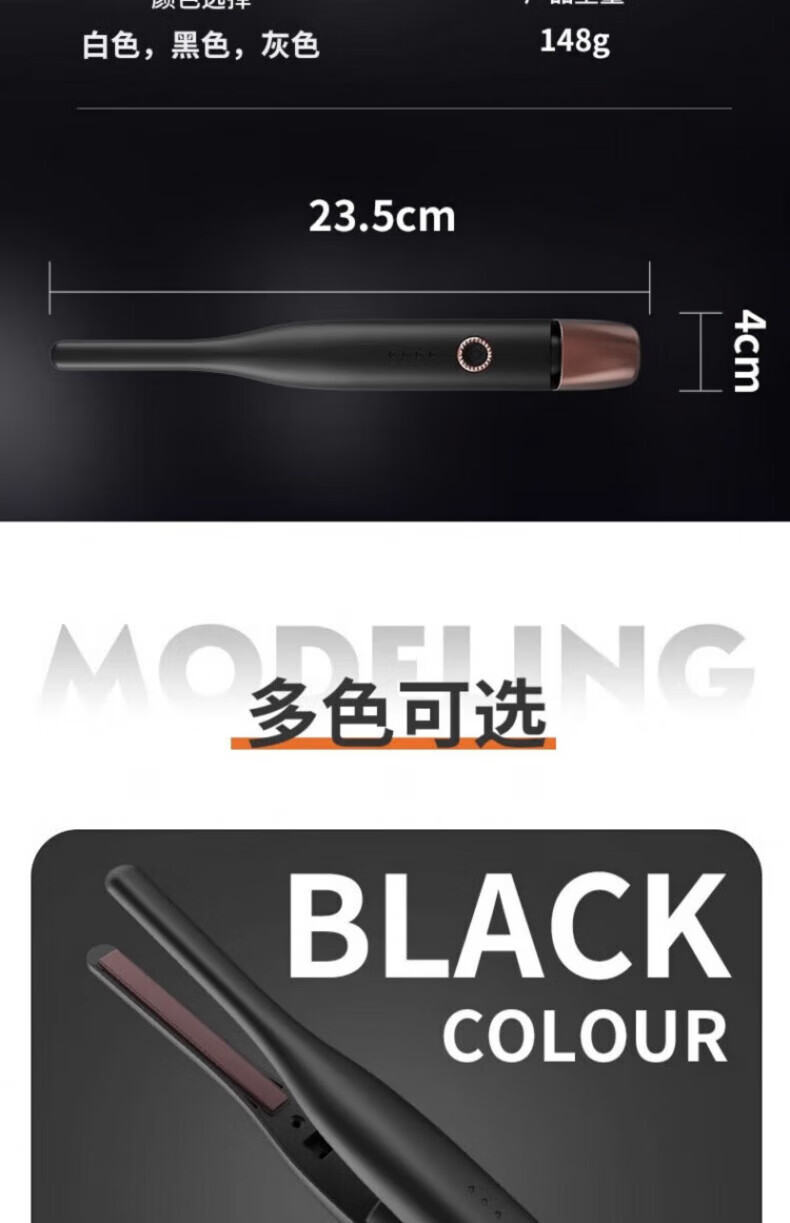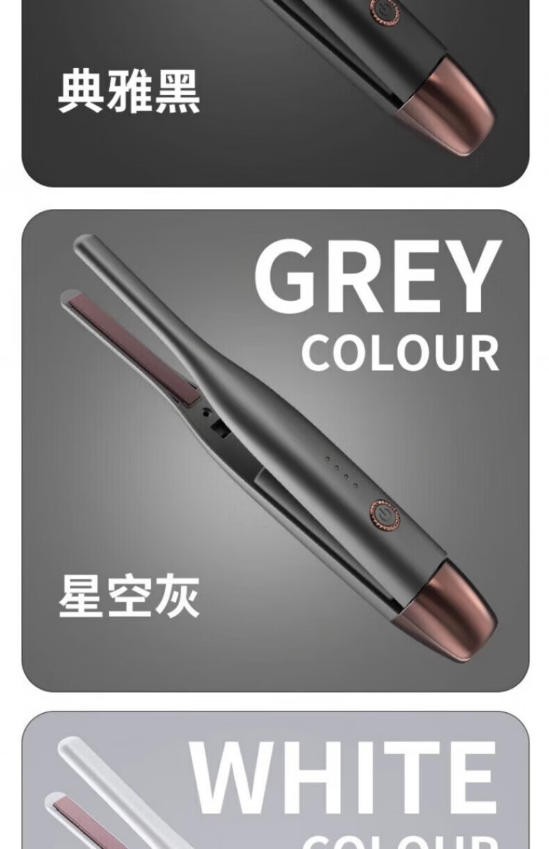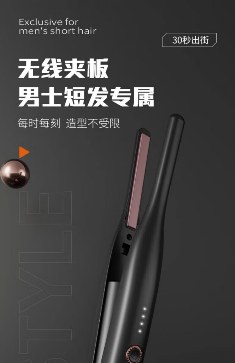 DEATKN德国无线直板夹男士专用卷发棒usb充电夹板迷你便携短发女生宿舍 雅致灰[无线速热/三档温控]