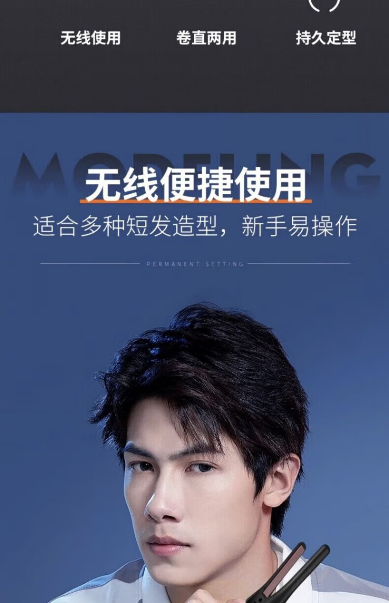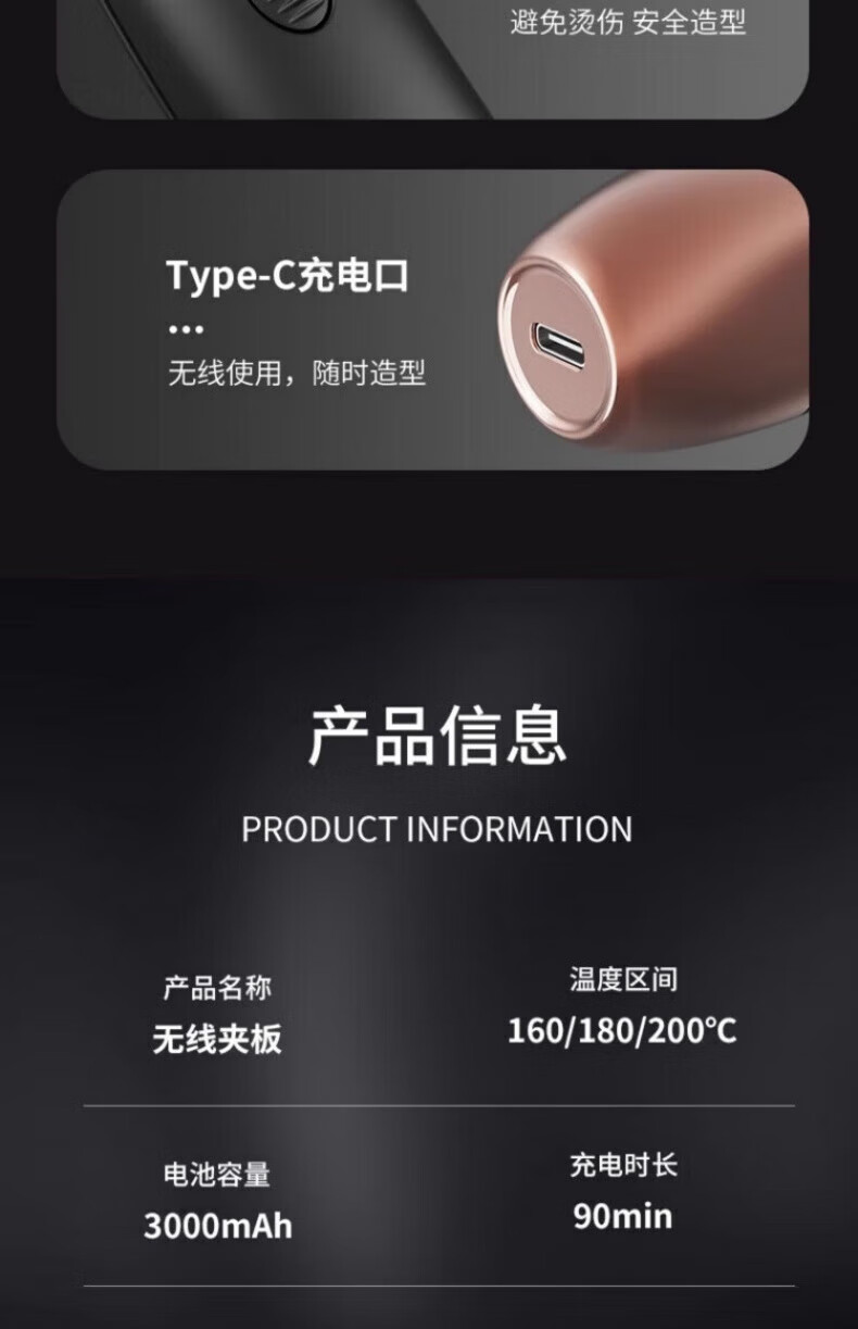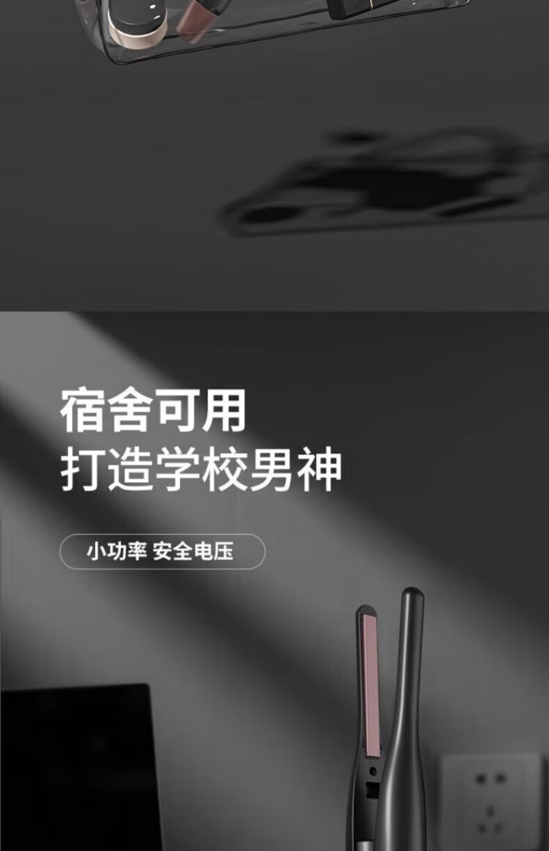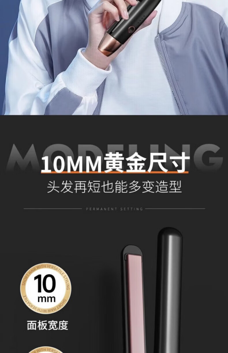 DEATKN德国无线直板夹男士专用卷发棒usb充电夹板迷你便携短发女生宿舍 雅致灰[无线速热/三档温控]