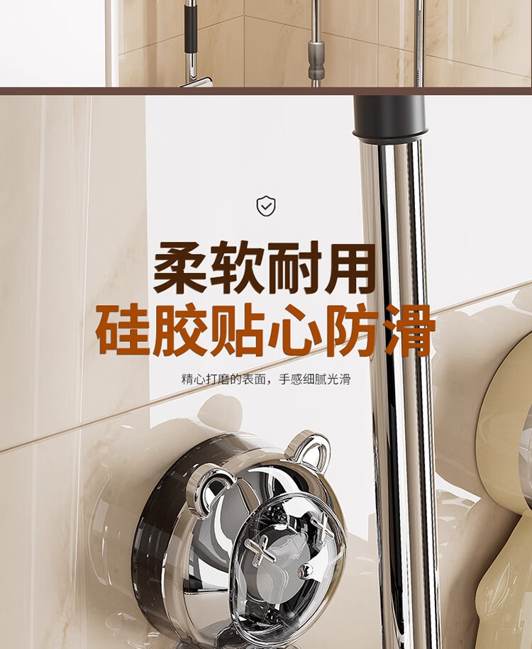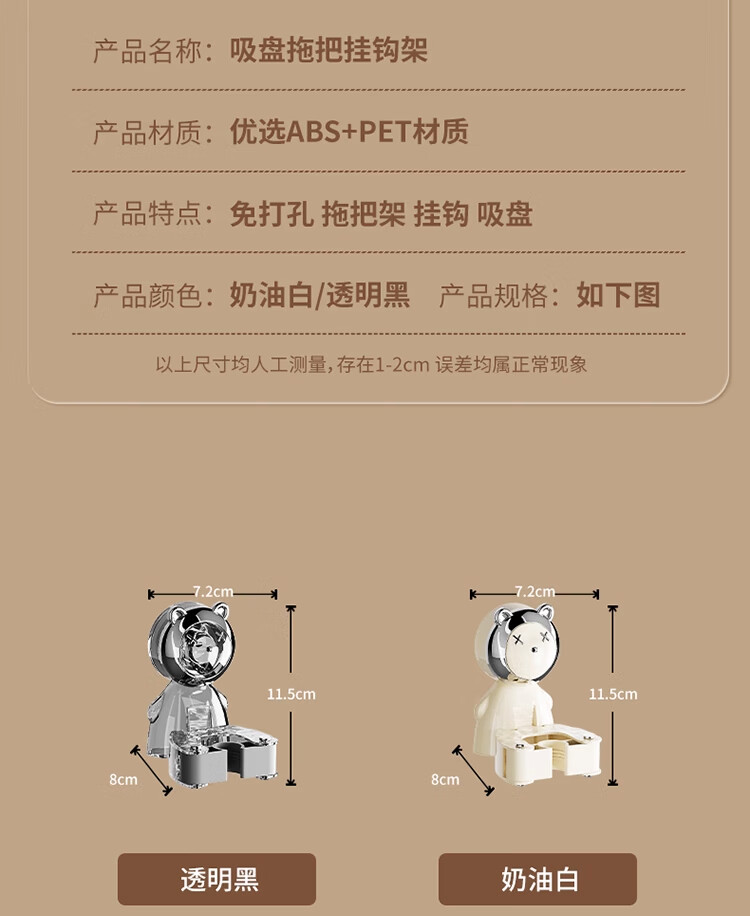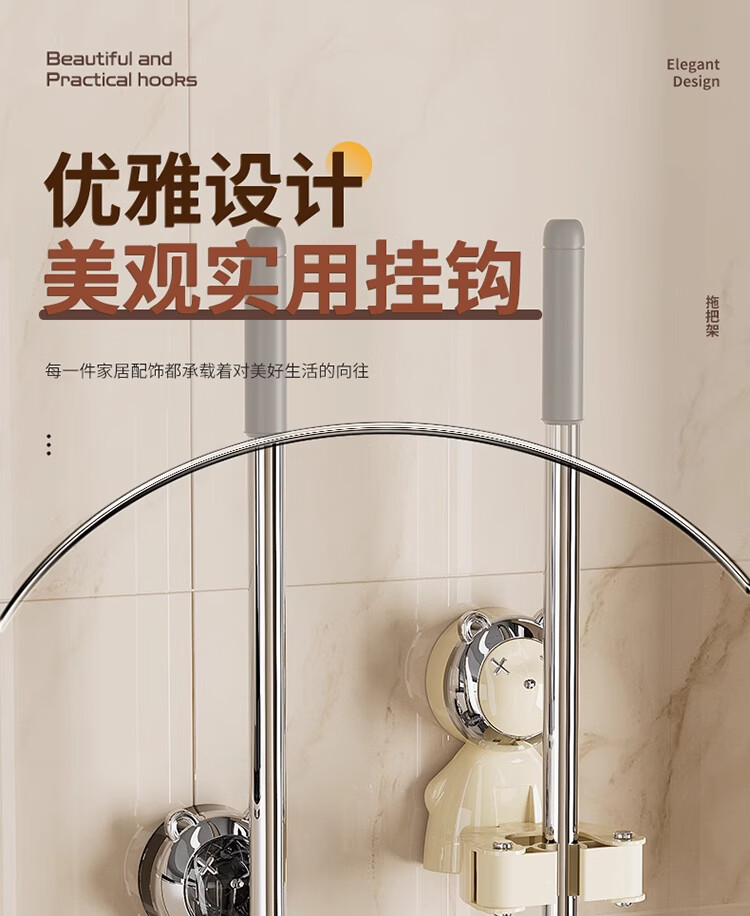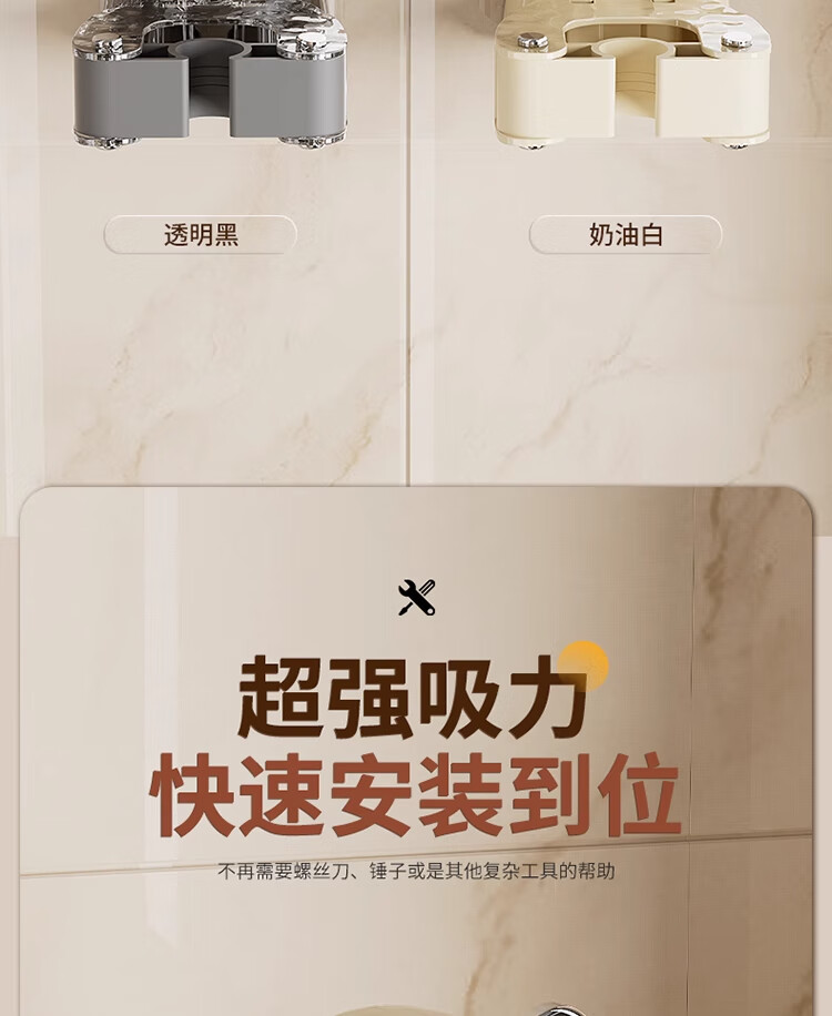 木格格吸盘拖把夹壁挂免打孔拖把挂钩卫生间浴室神器夹挂拖把扫把固定架 奶油白-单夹 1个