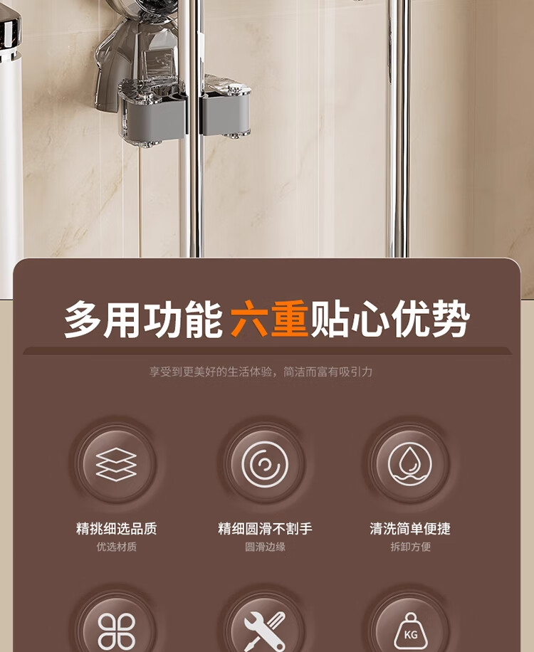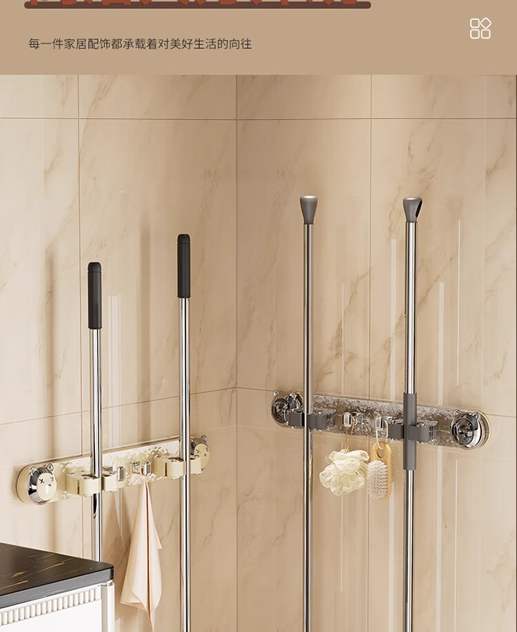 太力免打孔拖把挂架墙上卡扣固定器无痕拖把壁挂夹浴室卫生间收纳神器 灰白色 1个