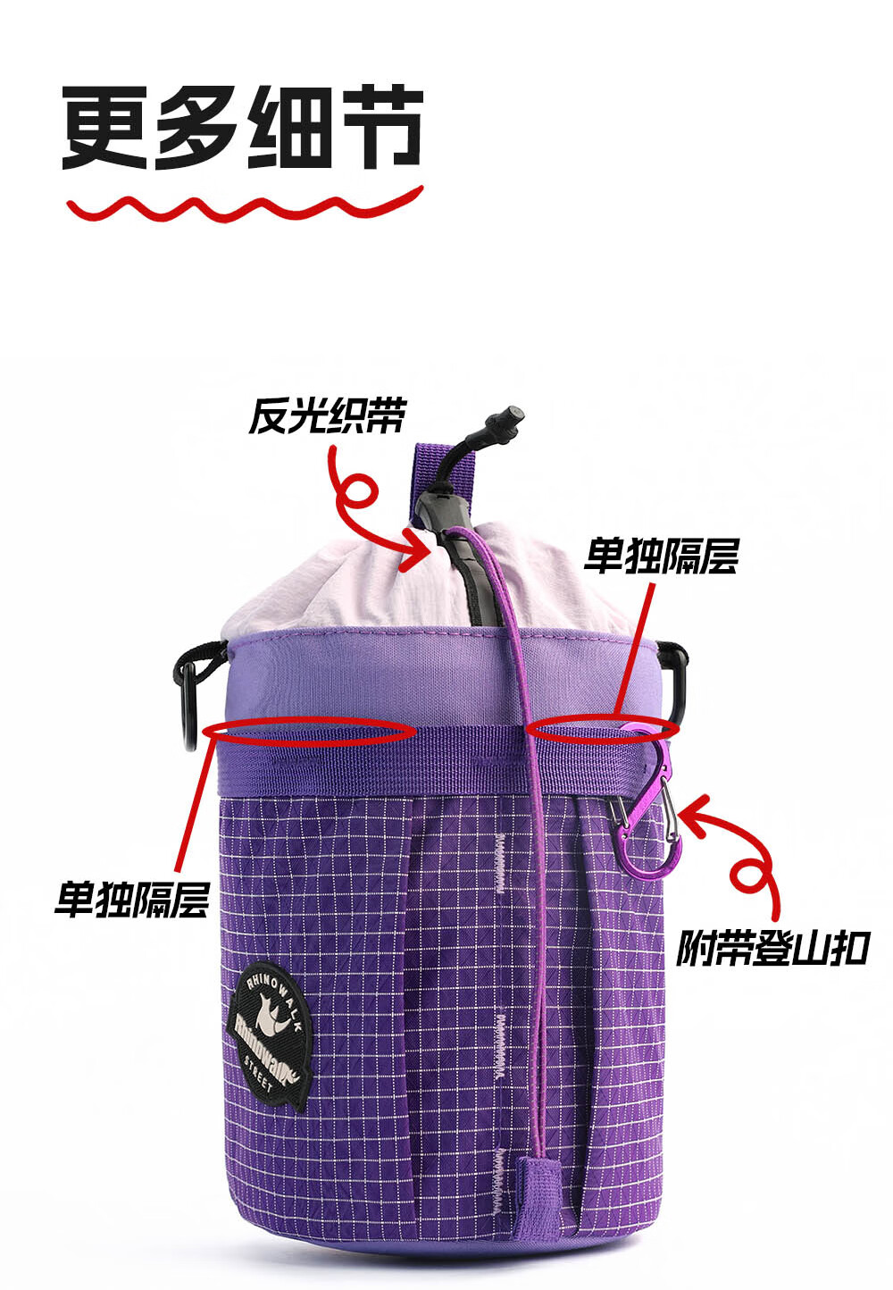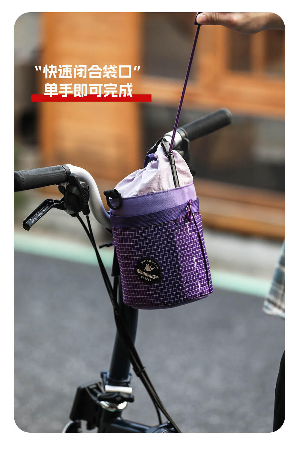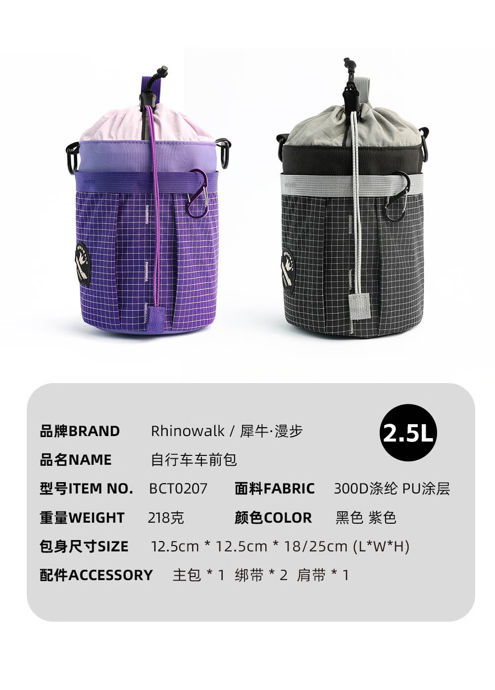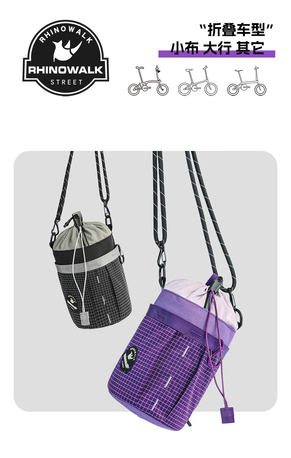 Rhinowalk犀牛自行车包水壶包小布大行折叠车置物车头前置挂包骑行装备收纳 薰草紫 波利斯系列BCT0207小布折叠车前包2.5L