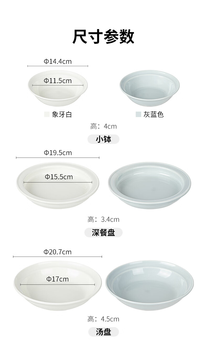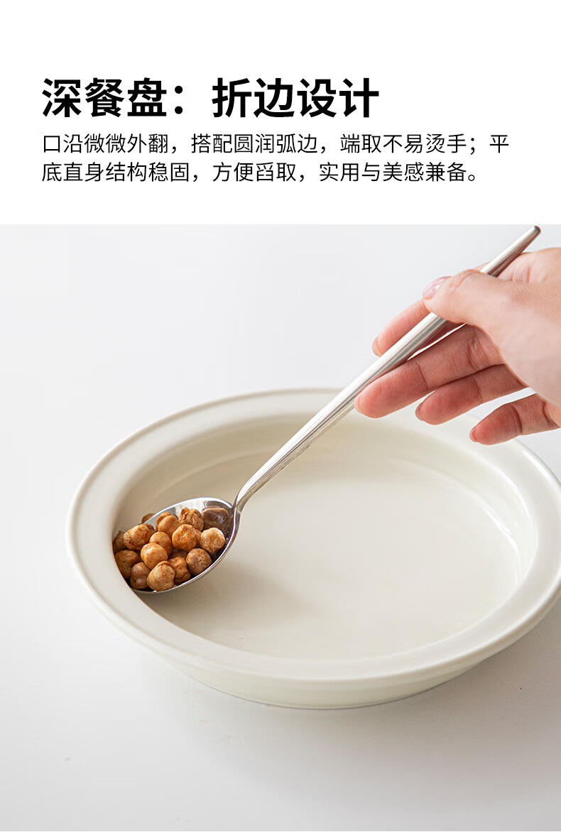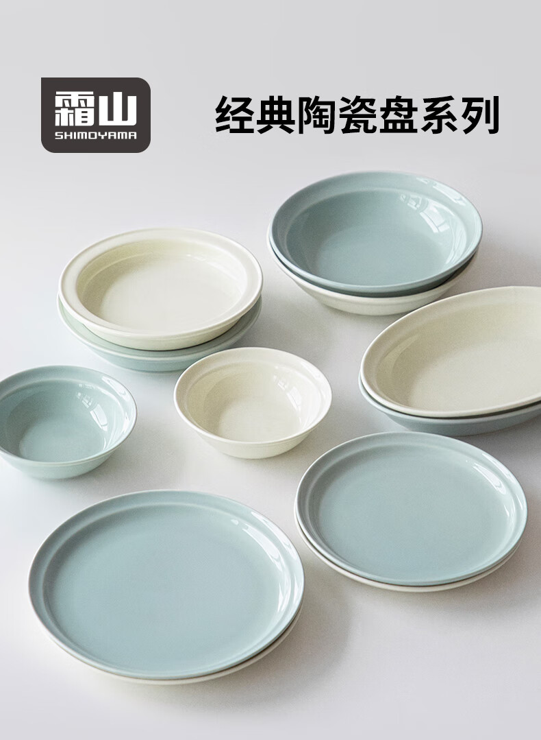 霜山陶瓷餐具系列家用盛菜盘碟餐盘西餐盘咖喱碗奶油风水果沙拉盘 【象牙白】小钵-14.4cm