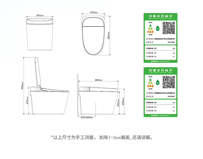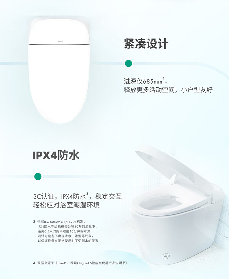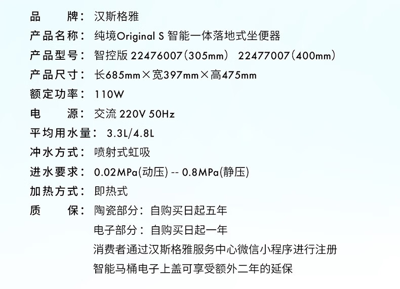 汉斯格雅(Hansgrohe)纯境Original S智能一体落地式坐便器 轻智能马桶 预售40天305坑距 305 305/300mm