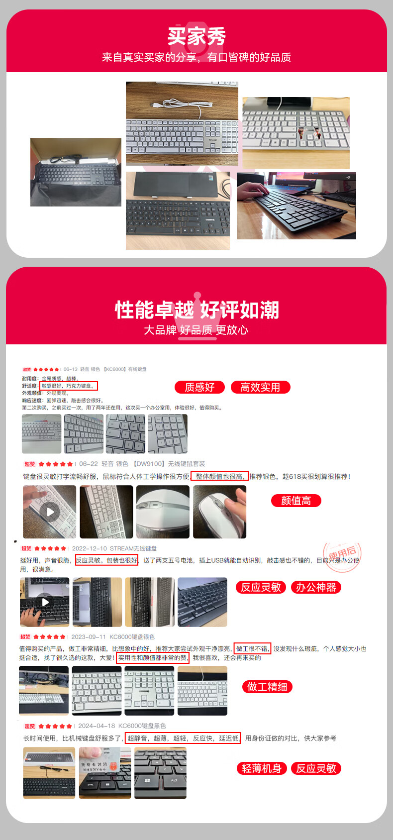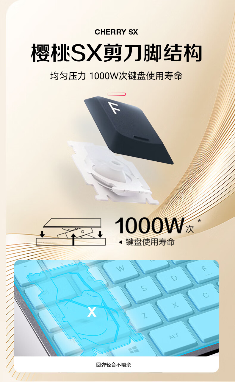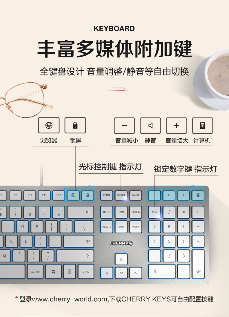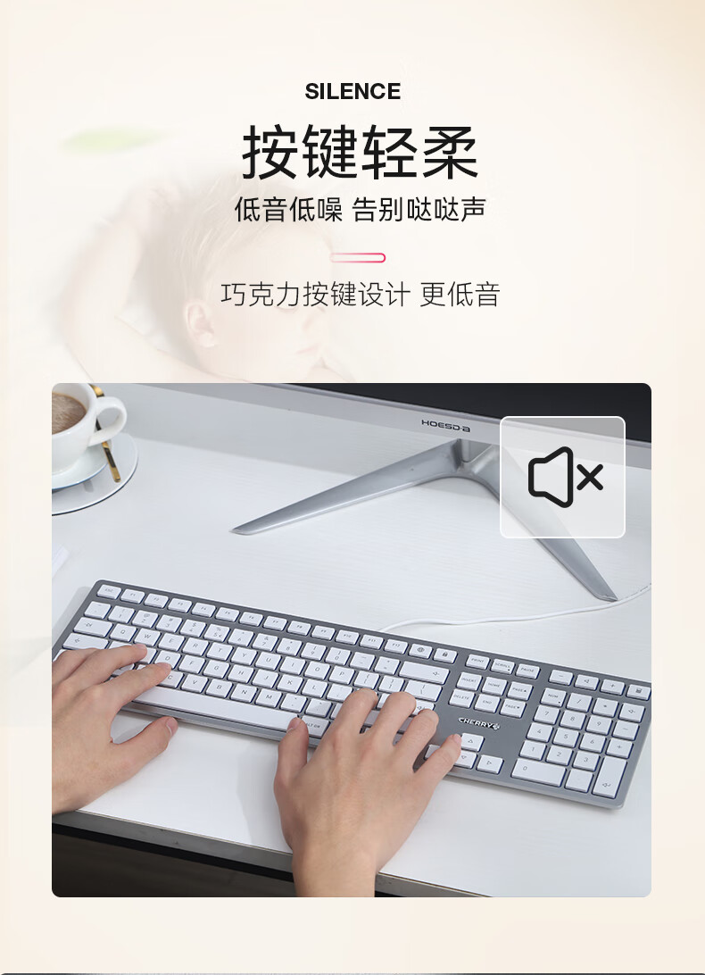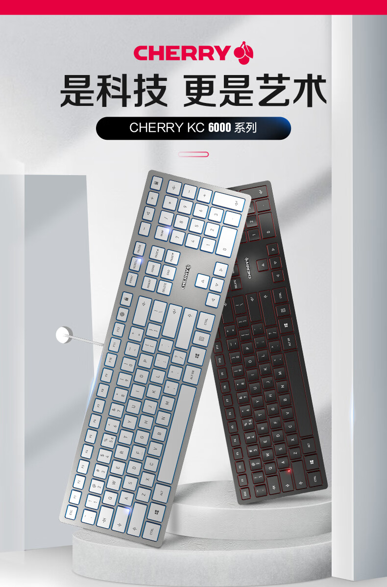 CHERRY樱桃 KC6000有线键盘 电脑薄膜键盘 办公商务家用键盘 超薄SX剪刀脚 轻音全尺寸 黑色