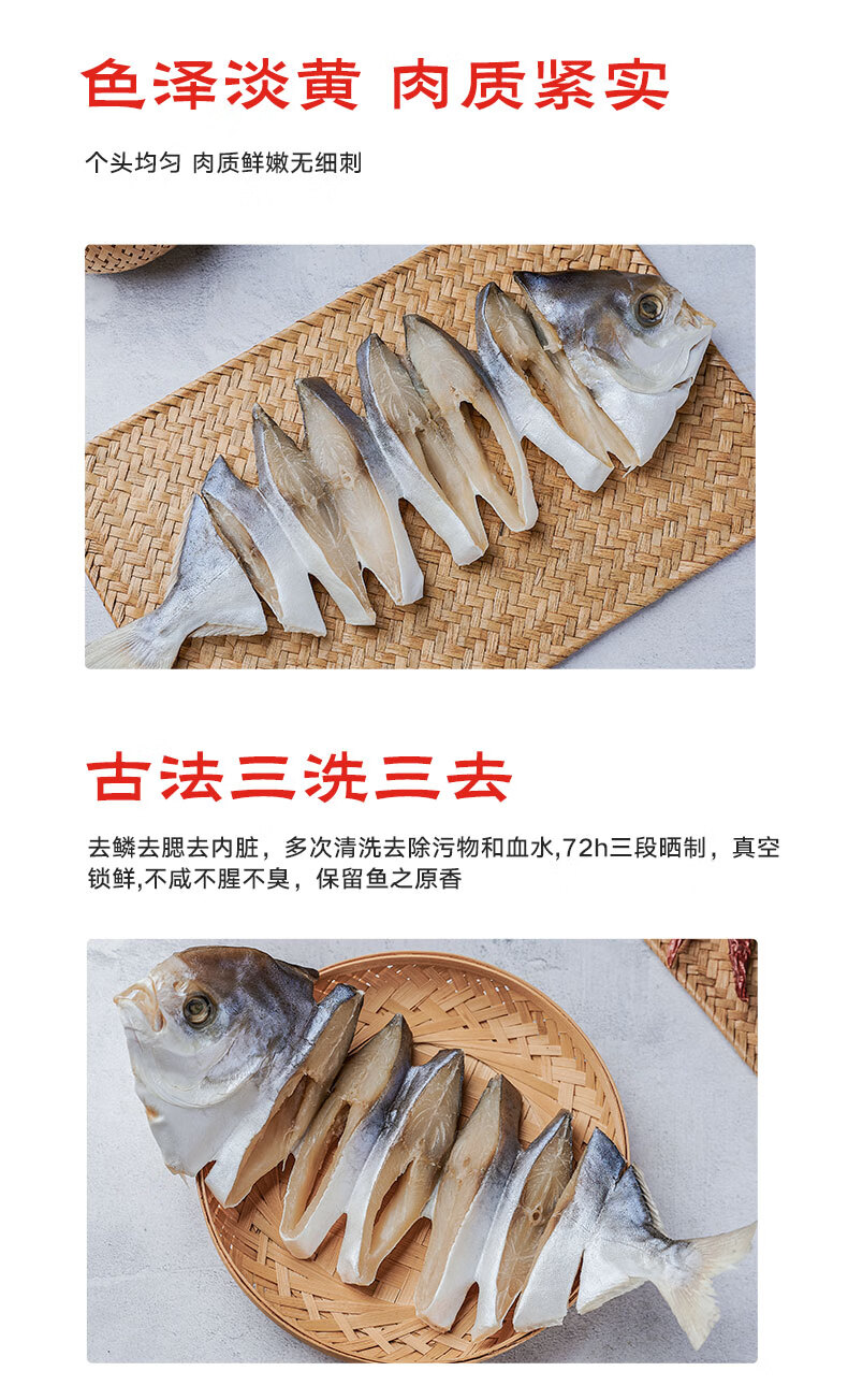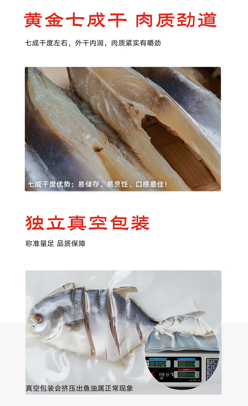 小海故事 金鲳鱼干 净重300-350g/条*2条 自制淡晒深海鱼干 源头直发