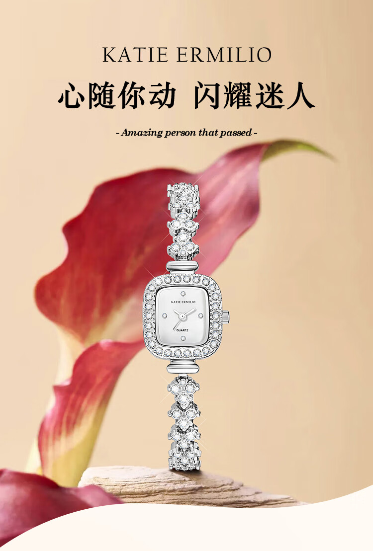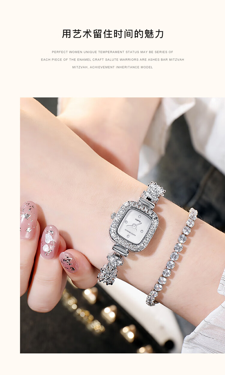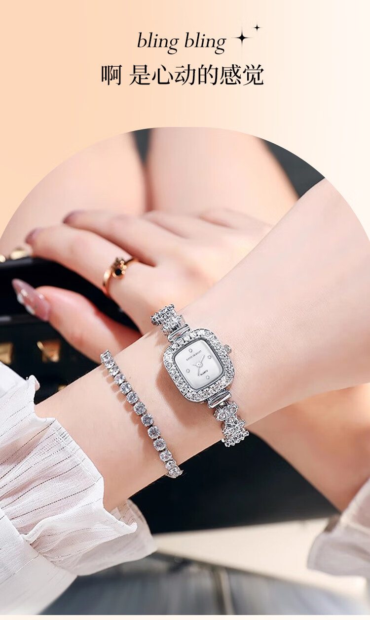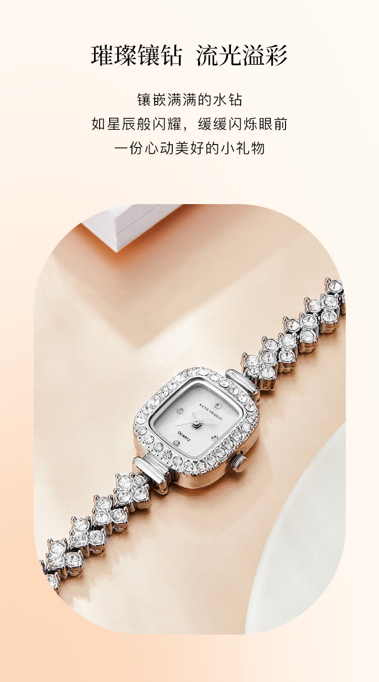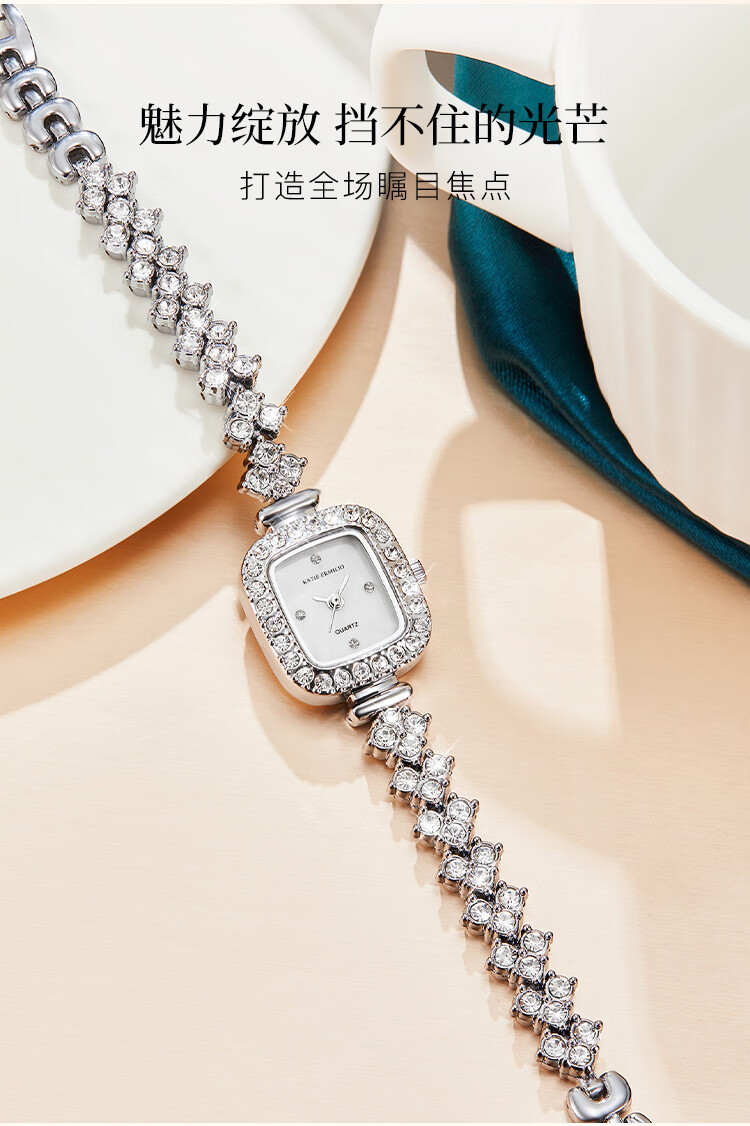 KATIE ERMILIO爆闪小冰糖小表盘腕表气质满钻手链表小方表七夕情人节礼物送女友