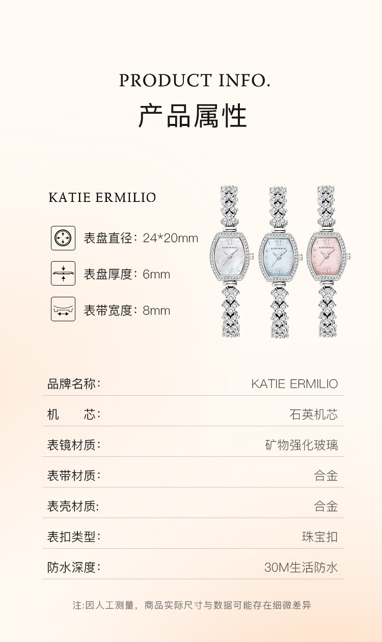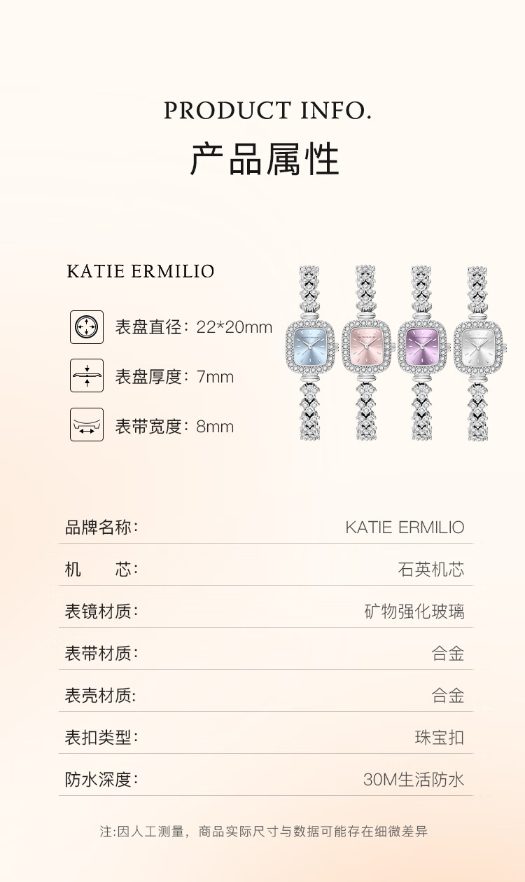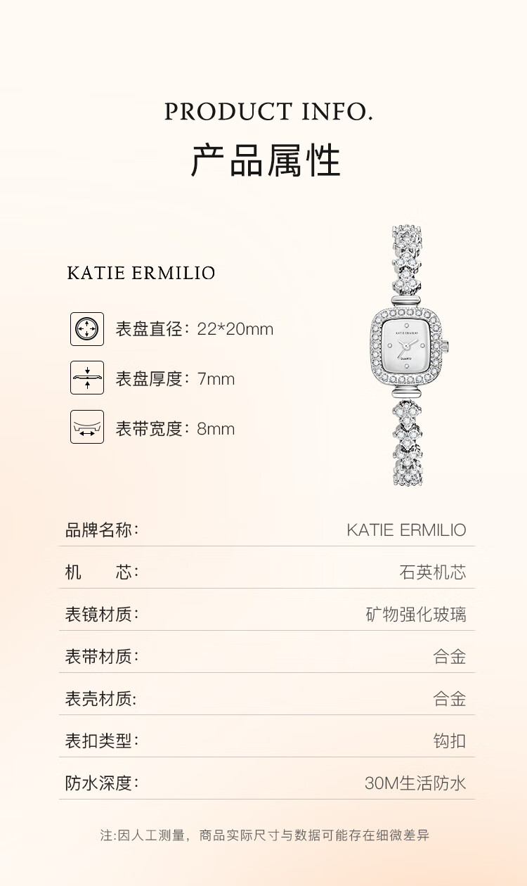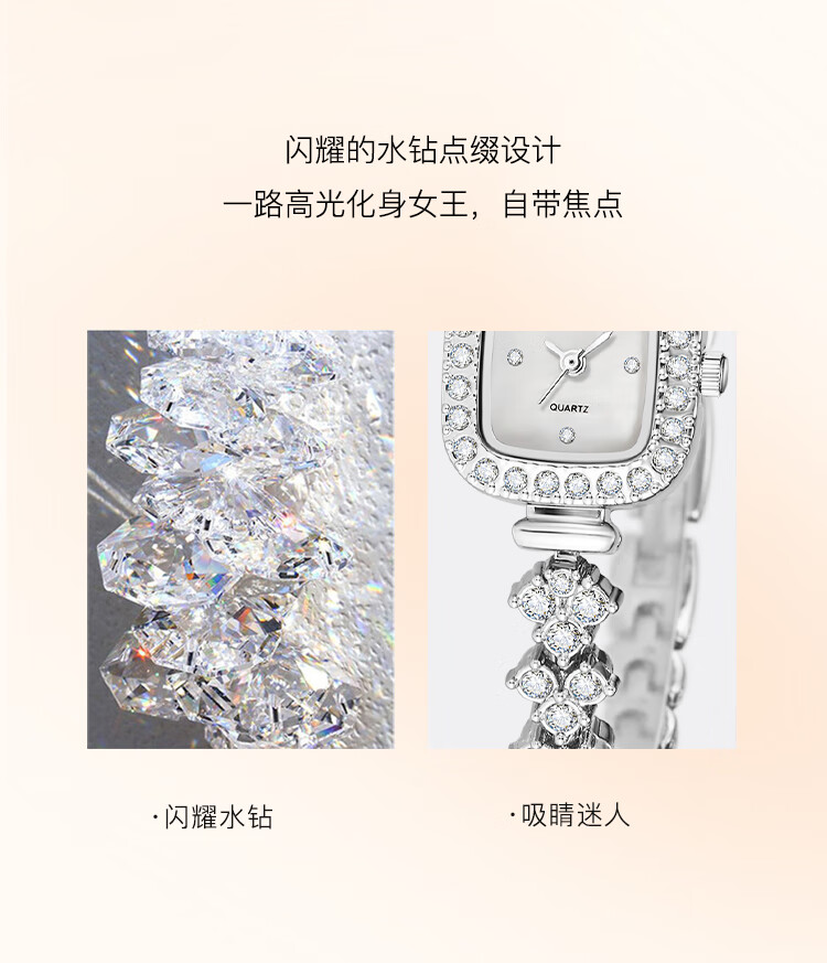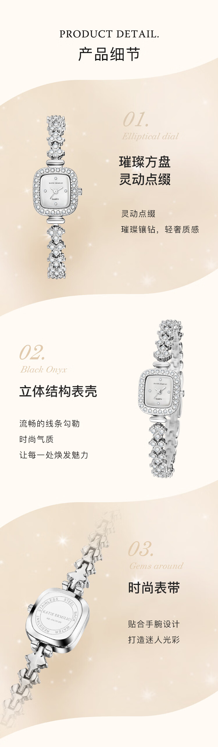 KATIE ERMILIO爆闪小冰糖小表盘腕表气质满钻手链表小方表七夕情人节礼物送女友