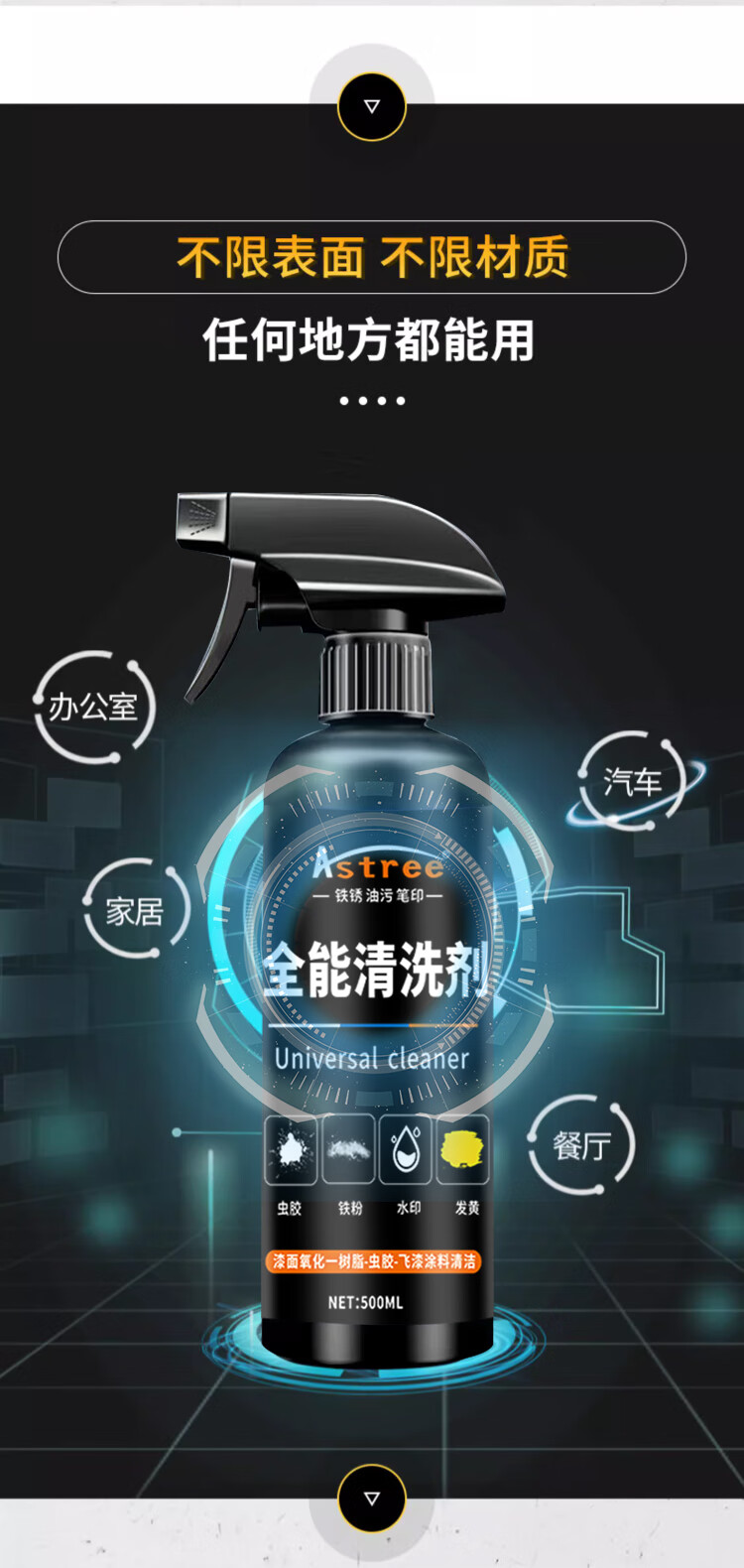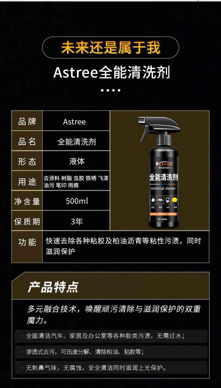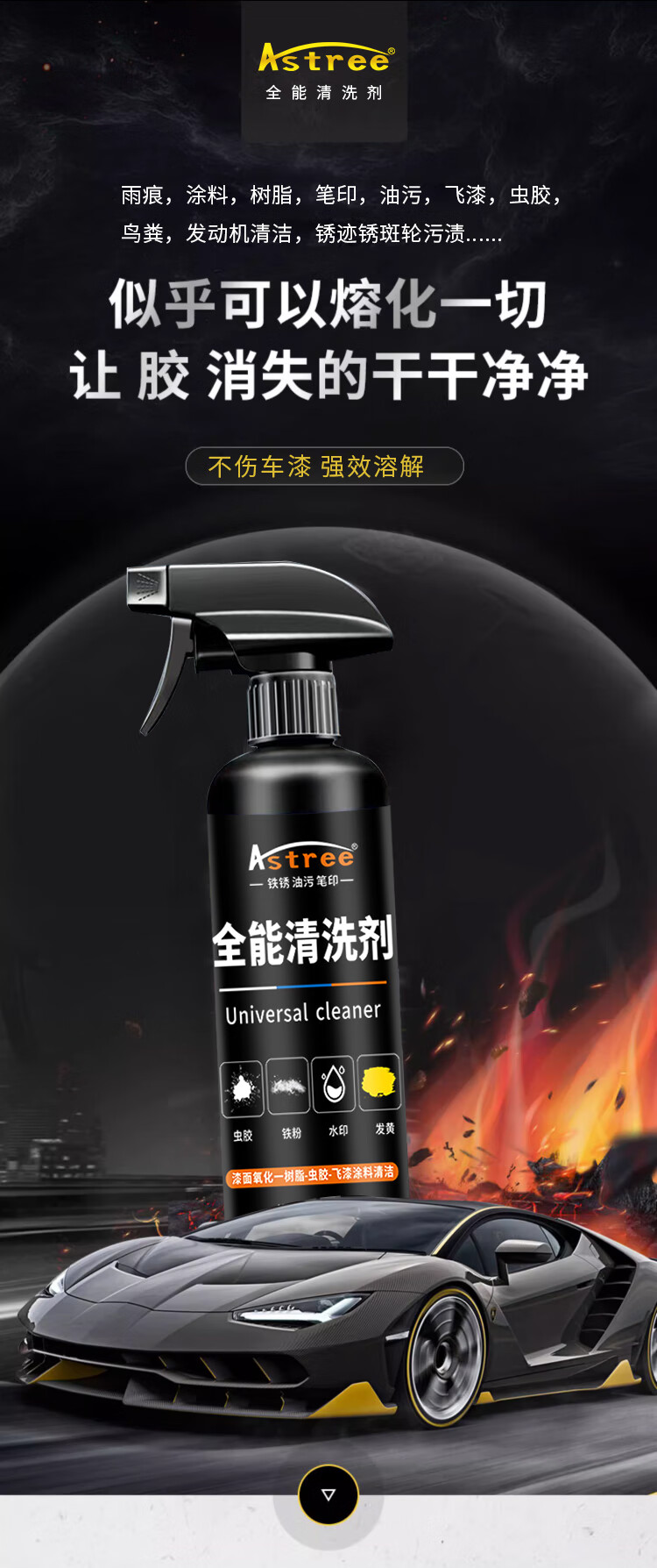 Astree汽车车漆清洗剂 虫胶树胶树脂水迹清洗剂 强力去污漆面发黄清洁剂
