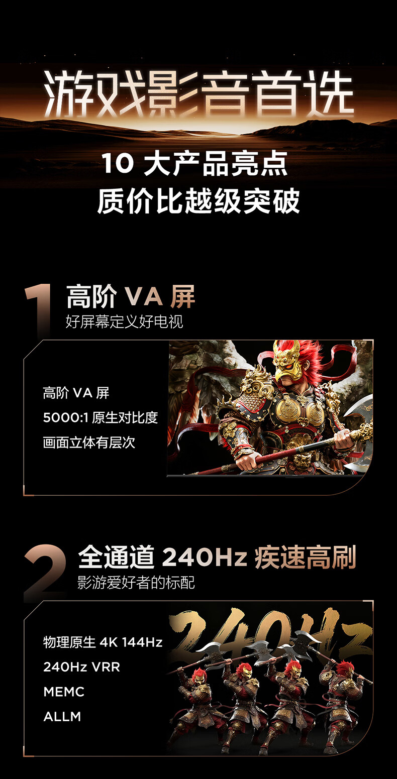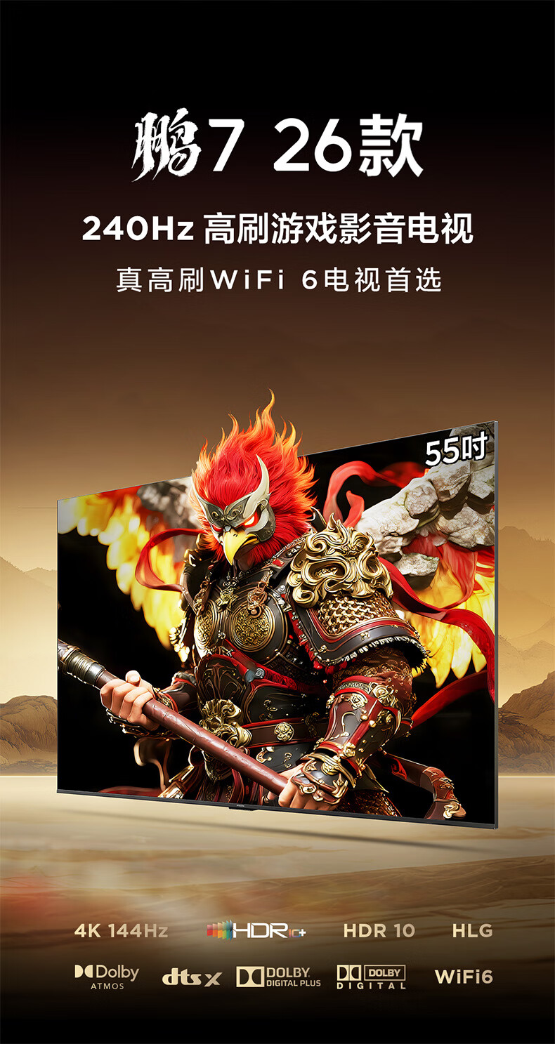 FFALCON雷鸟电视鹏7 26款 55英寸 高阶VA全通道240Hz高刷 满血HDMI2.1 94%P3色域 灵控系统电视机 55S78A