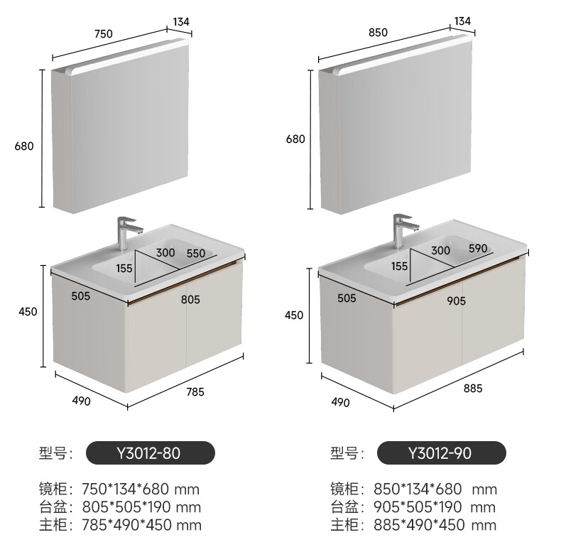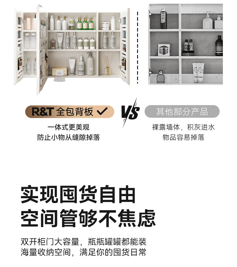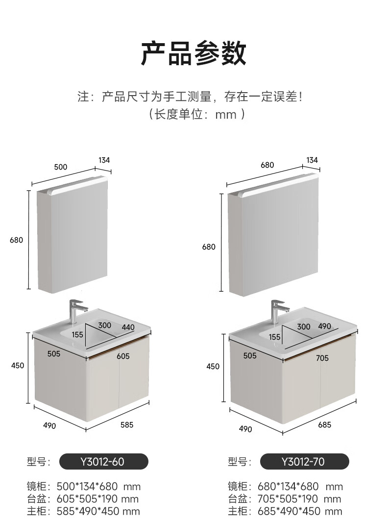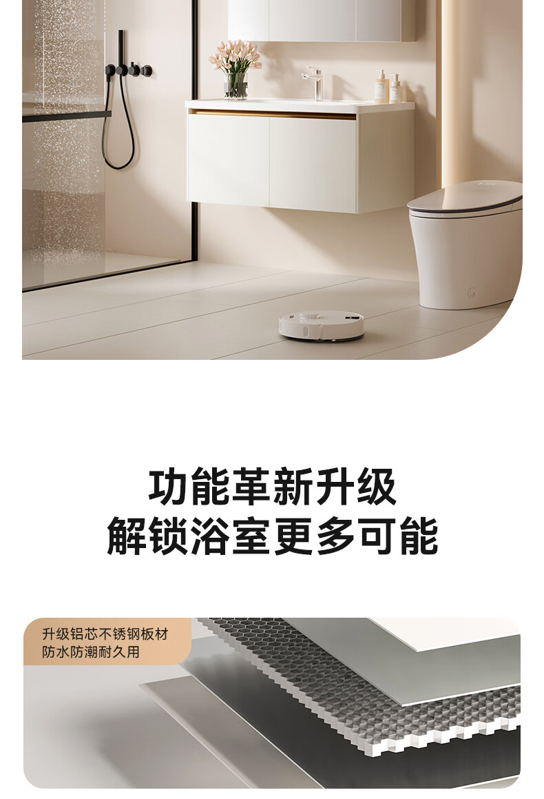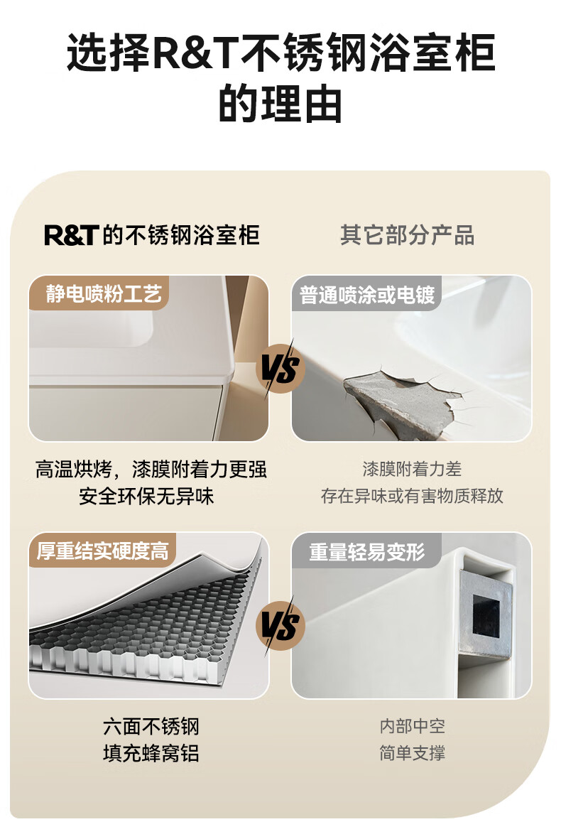 瑞尔特(R&T)2025新款不锈钢浴室柜组合陶瓷一体盆卫生间洗漱台智能美妆镜柜 Y3012-70cm【不锈钢+智能感应镜前灯+多元分区储物】