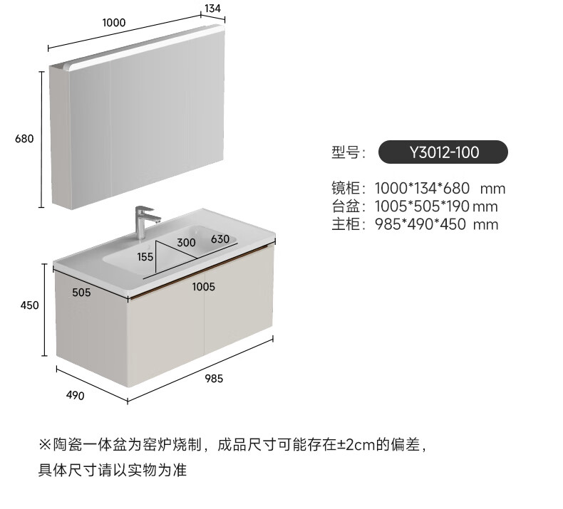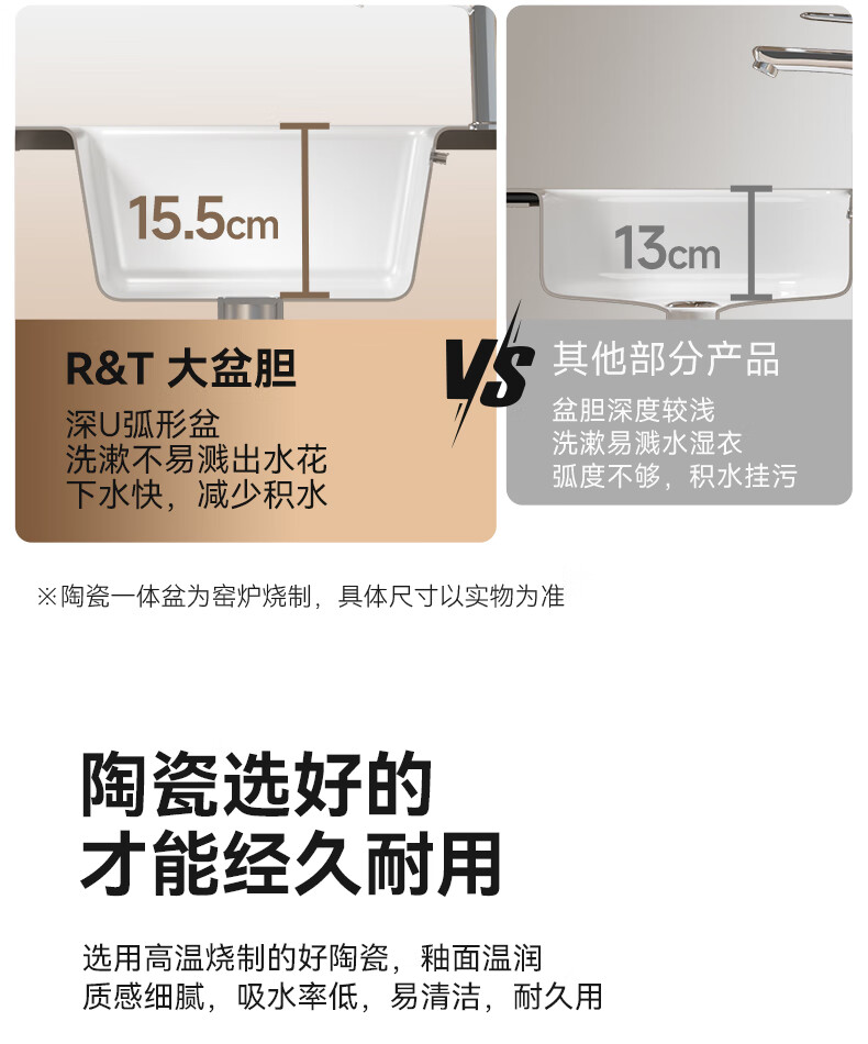 瑞尔特(R&T)2025新款浴室柜组合星曜一体盆ENF级环保卫生间洗脸洗漱台盆柜 ENF级环保多层实木-Y1053 100cm