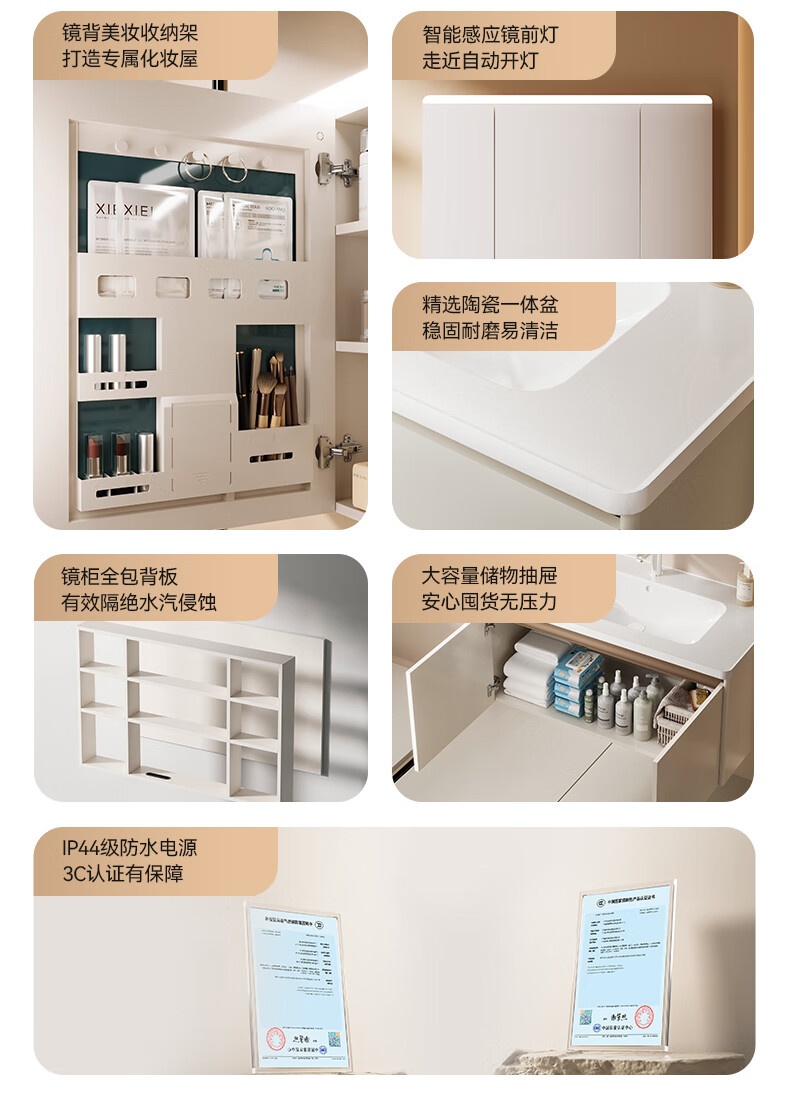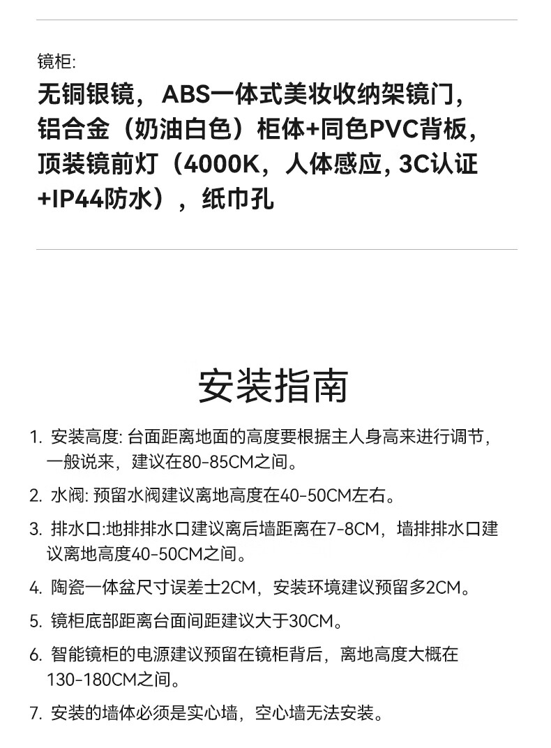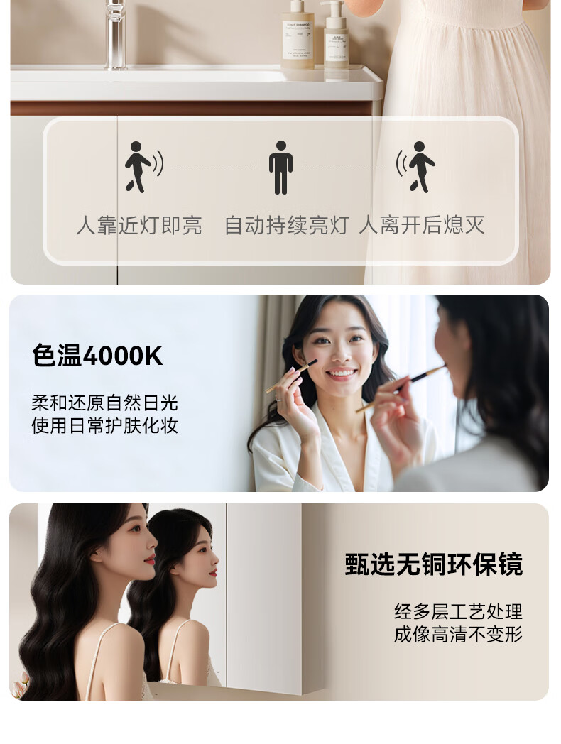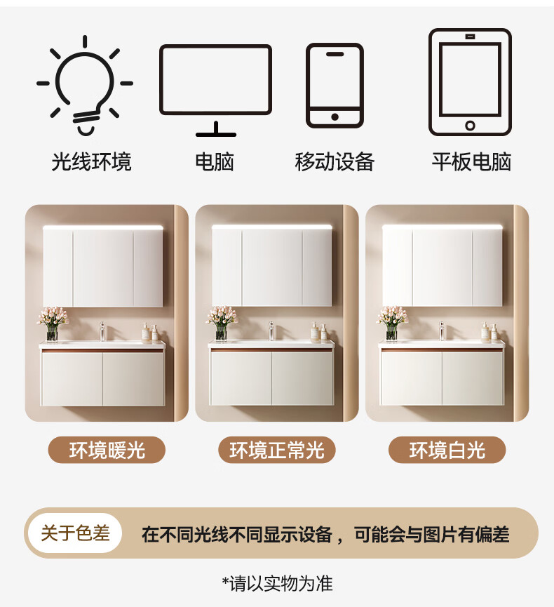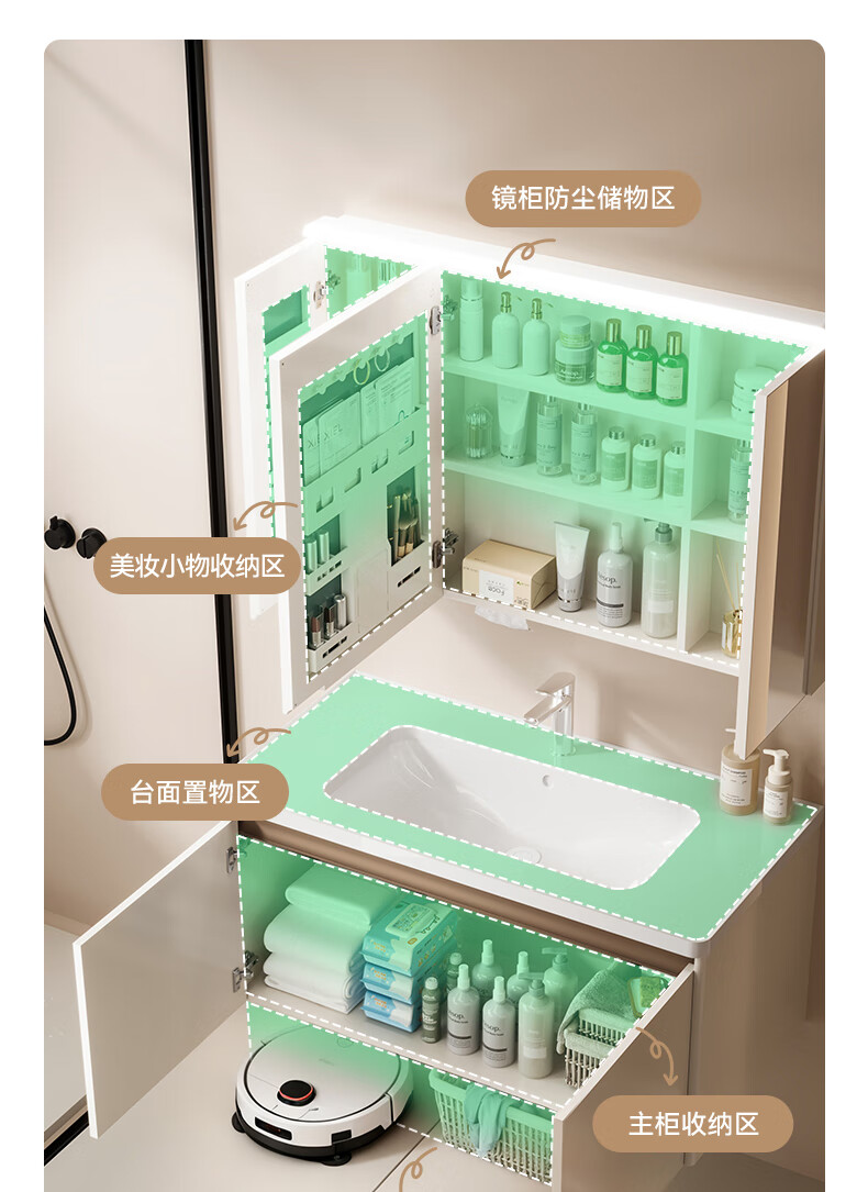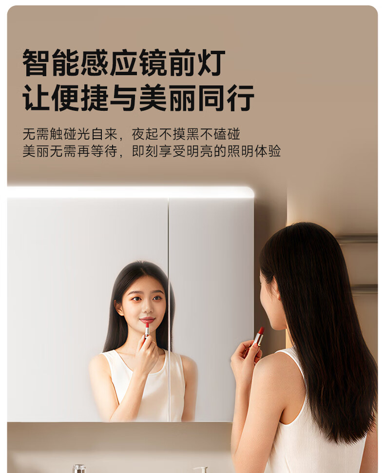 箭牌(ARROW)若曦系列美妆收纳现代智能镜柜洗脸盆洗漱台收纳柜浴室柜组合 智能弧形顶灯80cm,5天发